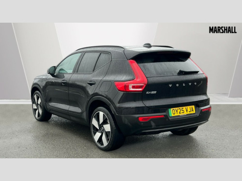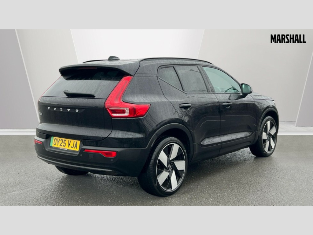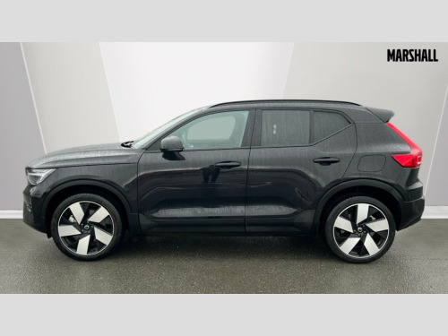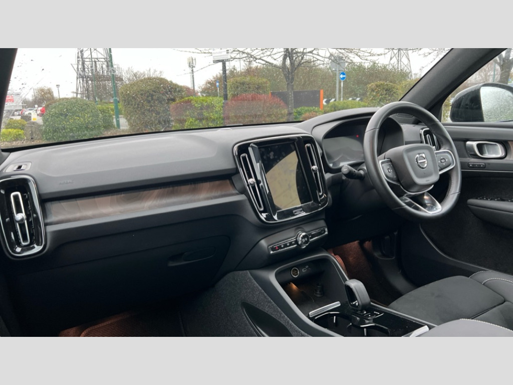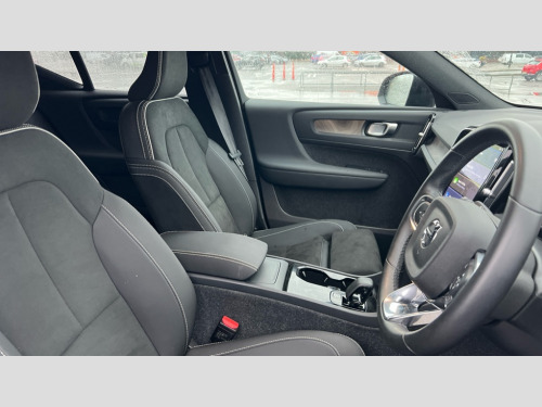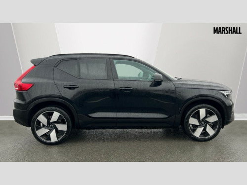 Volvo EX40 185kW Extended Range Plus 78kWh 5dr Auto 12.3" Progressive Driver Display, 9" centre console touch screen, Adjustable steering wheel force, Bluetooth handsfree system, Driver alert control with lane keeping aid, Driver assistance (pilot assist and adaptive cruise control), Driver awareness - Blind spot information system with steer assist, cross traffic alert with autobrake and rear collision warning and mitigation, Emergency services call system, Front park assist, Google automotive services - Enabled entertainment apps, navigation with google maps, voice recognition with google assistant, Handsfree tailgate opening/closing, Intelligent speed assistance, Oncoming Lane Mitigation, Rear park assist sensors, Speed sensitive steering, Volvo cars services with app, Volvo on call with charge station locations and route planning and pre climatisation, Wired Apple CarPlay, Wireless/Inductive Mobile Phone Charging, 11 kW three phase onboard charger, 6m 3 phase 32 amp type 2 / mode 3 charge cable, Electric rear axle drive, Lithium-ion battery, Recharging port located in nearside rear wing, Touring chassis, DAB Digital radio, Low speed exterior sound speaker, Steering wheel remote infotainment controls, Adaptive brake lights with high level LED brake lights, Auto dimming exterior rear view mirror, Auto dimming interior mirror, Automatic headlamp levelling, Automatic LED Headlights + Active high beam incorporating daytime running lights, Black stone A pillars, Black stone autofolding heated power door mirrors, Black stone roof, Black stone roof spoiler, Colour co-ordinated front grille and surround, Dark tinted windows - rear side windows and rear screen, Electric adjustable/heated/auto folding door mirrors, Front and rear electric windows, Front intermittent wipers, Front metal tread plates engraved with EX40, High gloss black front bumper deco, High gloss black rear bumper lower deco, High gloss black rear skid plate, High gloss black window trim, Home safe and approach lighting, Integrated roof rails in high gloss black, LED front fog lamps, Puddle lights, Rain sensor with automatic windscreen wiper activation, Rear side wing doors, Rear wiper, Roof antenna, Roof side cant-rail, Visible VIN plate, 12V socket in front tunnel console, 2 zone electronic climate control with Clean zone air quality system and pollen filter, 3 bench rear seats in 2nd row, 3 Spoke tailored steering wheel with chrome trim, 60/40 versatile split folding rear seat, Ambient front door and instrumental panel lighting, Bright metal luggage scuff plate, Centre console cupholders and storage, Charcoal headlining, Flexible load floor and grocery bag holder, Floor mats, Front and rear courtesy lights, Front and rear reading lights, Front door pocket illumination, Front footwell illumination, Front headrests, Front load compartment (31 litres), Front seat cushion extensions, Front side step illumination (under door), Glovebox bag hook, Heat pump (Enhanced cabin heating and cooling efficiency with optimal vehicle range), Heated front seats, Height adjustable passenger seat, Height/reach adjustable steering column, High gloss black centre tunnel deco, Illuminated glovebox, Illuminated luggage compartment, Illuminated tailgate, Illuminated vanity mirrors + ticket holder, Instrument panel and front door inlay lighting, Integrated waste bin, Load cover, Load protection net, Multi directional lumbar support, One pedal drive mode, Power driver seat with memory + exterior mirrors memory, Rear armrest with cupholder, Rear coat hook, Rear headrests, Single front passenger seat, Sports steering wheel, Underfloor cargo storage, Climate pack - EC40/EX40, 3x3 point rear seatbelts, City safety with steering support with Pedestrian + cyclist + front collision warning with full auto brake and rear auto brake, Driver and passenger airbags, Drivers knee airbag, Electronic parking brake with auto hold, First aid kit, Front and outer rear seatbelt reminder and pretensioners, Front seats SIPS airbags, Hill descent control - Off-road drive mode, Hill start assist, IC (Inflatable Curtains) - Full Length, ISOFIX attachment (Front passenger and Rear outer seats), Passenger airbag cut-off device, Power child locks on rear doors, Road sign information display, Run off Road Mitigation, SIPS (Side Impact Protection System), Slippery road and hazard light alert, Stability and traction control includes spin control and corner traction control, Tyre pressure monitoring system, Vehicle deceleration control with Anti-lock Brake System, Electronic Brake Distribution and Emergency Brake Assist, Warning triangle, WHIPS whiplash protection system - front, 2 x Key integrated remote control central locking including recharging port with deadlocking system and auto open/close power windows, Anti-theft alarm including immobiliser/volume sensor + level sensor, Care key with user defined top speed, Convenient entry and start, Keyless drive with keyless entry and keyless start, Locking wheel nuts, Private locking for tailgate, Remote door locking and unlocking, Origin inlay, Summer tyres, Tyre sealant kit and compressor