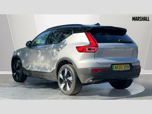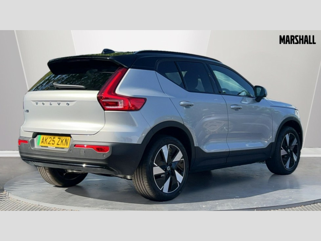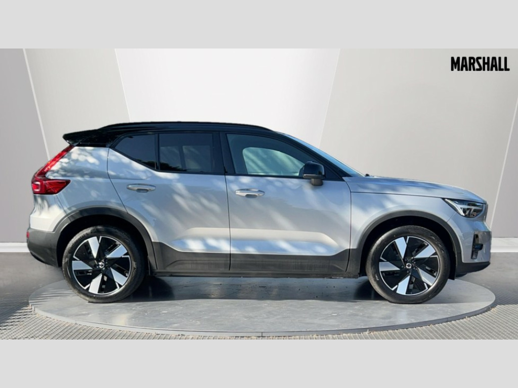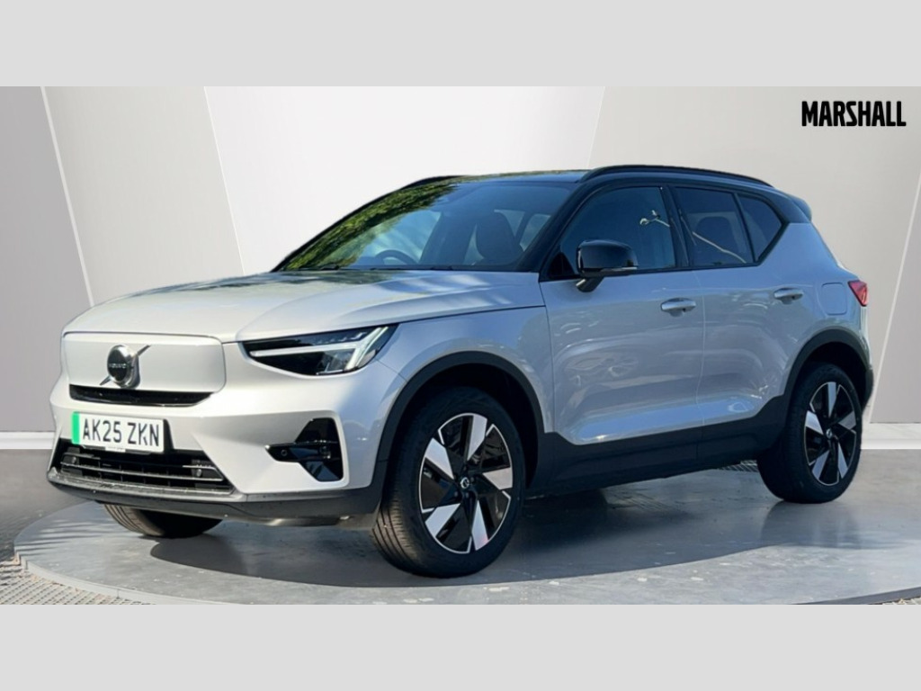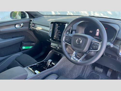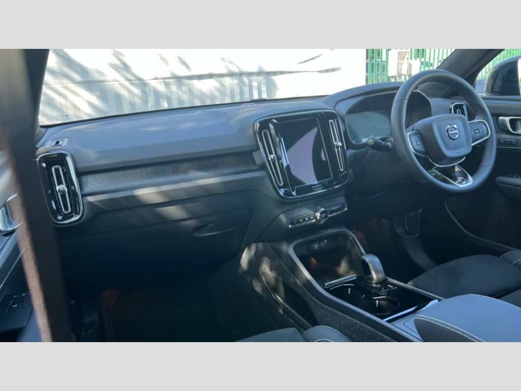 Volvo EX40 185kW Extended Range Plus 78kWh 5dr Auto 12.3" Progressive Driver Display, 9" centre console touch screen, Adjustable steering wheel force, Bluetooth handsfree system, Driver alert control with lane keeping aid, Driver assistance (pilot assist and adaptive cruise control), Driver awareness - Blind spot information system with steer assist, cross traffic alert with autobrake and rear collision warning and mitigation, Emergency services call system, Front park assist, Google automotive services - Enabled entertainment apps, navigation with google maps, voice recognition with google assistant, Handsfree tailgate opening/closing, Intelligent speed assistance, Oncoming Lane Mitigation, Rear park assist sensors, Speed sensitive steering, Volvo cars services with app, Volvo on call with charge station locations and route planning and pre climatisation, Wired Apple CarPlay, Wireless/Inductive Mobile Phone Charging, 11 kW three phase onboard charger, 6m 3 phase 32 amp type 2 / mode 3 charge cable, Electric rear axle drive, Lithium-ion battery, Recharging port located in nearside rear wing, Touring chassis, DAB Digital radio, Low speed exterior sound speaker, Steering wheel remote infotainment controls, Adaptive brake lights with high level LED brake lights, Auto dimming exterior rear view mirror, Auto dimming interior mirror, Automatic headlamp levelling, Automatic LED Headlights + Active high beam incorporating daytime running lights, Black stone A pillars, Black stone autofolding heated power door mirrors, Black stone roof, Black stone roof spoiler, Colour co-ordinated front grille and surround, Dark tinted windows - rear side windows and rear screen, Electric adjustable/heated/auto folding door mirrors, Front and rear electric windows, Front intermittent wipers, Front metal tread plates engraved with EX40, High gloss black front bumper deco, High gloss black rear bumper lower deco, High gloss black rear skid plate, High gloss black window trim, Home safe and approach lighting, Integrated roof rails in high gloss black, LED front fog lamps, Puddle lights, Rain sensor with automatic windscreen wiper activation, Rear side wing doors, Rear wiper, Roof antenna, Roof side cant-rail, Visible VIN plate, 12V socket in front tunnel console, 2 zone electronic climate control with Clean zone air quality system and pollen filter, 3 bench rear seats in 2nd row, 3 Spoke tailored steering wheel with chrome trim, 60/40 versatile split folding rear seat, Ambient front door and instrumental panel lighting, Bright metal luggage scuff plate, Centre console cupholders and storage, Charcoal headlining, Flexible load floor and grocery bag holder, Floor mats, Front and rear courtesy lights, Front and rear reading lights, Front door pocket illumination, Front footwell illumination, Front headrests, Front load compartment (31 litres), Front seat cushion extensions, Front side step illumination (under door), Glovebox bag hook, Heat pump (Enhanced cabin heating and cooling efficiency with optimal vehicle range), Heated front seats, Height adjustable passenger seat, Height/reach adjustable steering column, High gloss black centre tunnel deco, Illuminated glovebox, Illuminated luggage compartment, Illuminated tailgate, Illuminated vanity mirrors + ticket holder, Instrument panel and front door inlay lighting, Integrated waste bin, Load cover, Load protection net, Multi directional lumbar support, One pedal drive mode, Power driver seat with memory + exterior mirrors memory, Rear armrest with cupholder, Rear coat hook, Rear headrests, Single front passenger seat, Sports steering wheel, Underfloor cargo storage, Climate pack - EC40/EX40, 3x3 point rear seatbelts, City safety with steering support with Pedestrian + cyclist + front collision warning with full auto brake and rear auto brake, Driver and passenger airbags, Drivers knee airbag, Electronic parking brake with auto hold, First aid kit, Front and outer rear seatbelt reminder and pretensioners, Front seats SIPS airbags, Hill descent control - Off-road drive mode, Hill start assist, IC (Inflatable Curtains) - Full Length, ISOFIX attachment (Front passenger and Rear outer seats), Passenger airbag cut-off device, Power child locks on rear doors, Road sign information display, Run off Road Mitigation, SIPS (Side Impact Protection System), Slippery road and hazard light alert, Stability and traction control includes spin control and corner traction control, Tyre pressure monitoring system, Vehicle deceleration control with Anti-lock Brake System, Electronic Brake Distribution and Emergency Brake Assist, Warning triangle, WHIPS whiplash protection system - front, 2 x Key integrated remote control central locking including recharging port with deadlocking system and auto open/close power windows, Anti-theft alarm including immobiliser/volume sensor + level sensor, Care key with user defined top speed, Convenient entry and start, Keyless drive with keyless entry and keyless start, Locking wheel nuts, Private locking for tailgate, Remote door locking and unlocking, Origin inlay, Summer tyres, Tyre sealant kit and compressor