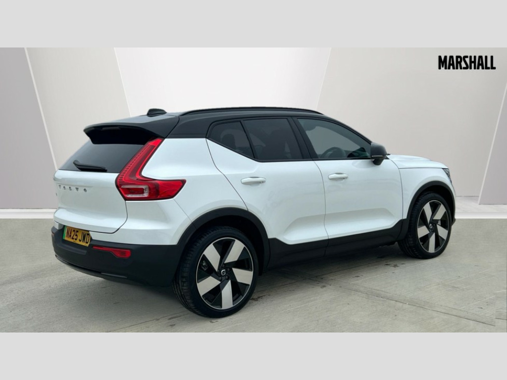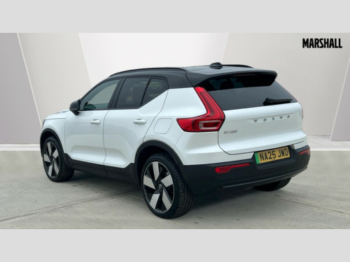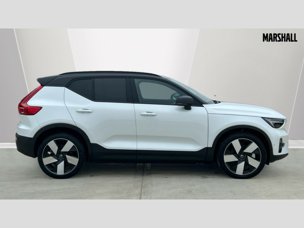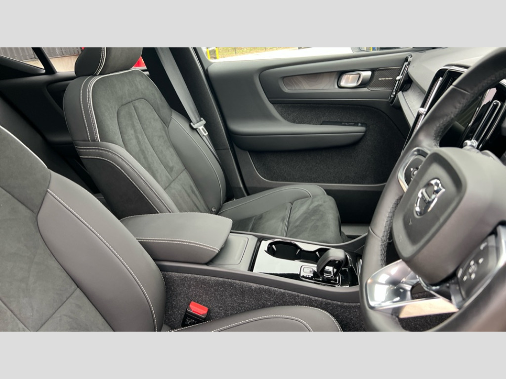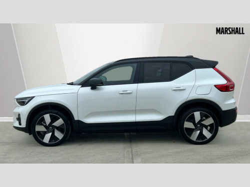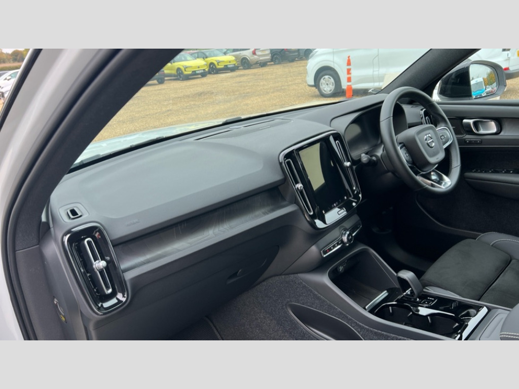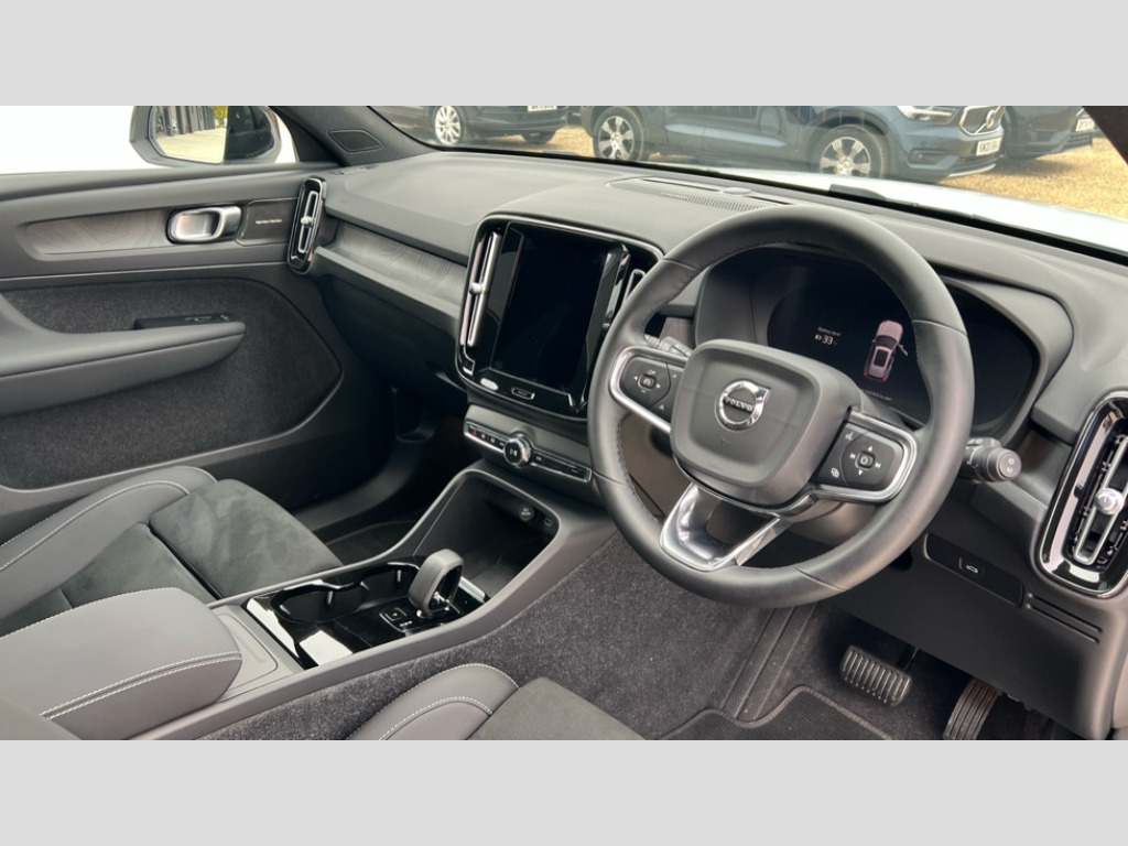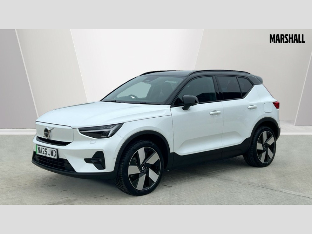 Volvo EX40 185kW Extended Range Ultra 78kWh 5dr Auto 12.3" Progressive Driver Display, 360 degree surround view parking camera with side proximity sensors, 9" centre console touch screen, Adjustable steering wheel force, Bluetooth handsfree system, Driver alert control with lane keeping aid, Driver assistance (pilot assist and adaptive cruise control), Driver awareness - Blind spot information system with steer assist, cross traffic alert with autobrake and rear collision warning and mitigation, Emergency services call system, Front park assist, Google automotive services - Enabled entertainment apps, navigation with google maps, voice recognition with google assistant, Handsfree tailgate opening/closing, Intelligent speed assistance, Oncoming Lane Mitigation, Rear park assist sensors, Speed sensitive steering, Volvo cars services with app, Volvo on call with charge station locations and route planning and pre climatisation, Wired Apple CarPlay, Wireless/Inductive Mobile Phone Charging, 11 kW three phase onboard charger, 6m 3 phase 32 amp type 2 / mode 3 charge cable, Electric rear axle drive, Lithium-ion battery, Recharging port located in nearside rear wing, Touring chassis, DAB Digital radio, Low speed exterior sound speaker, Premium Sound by Harman Kardon, Dolby Pro Logic II Surround Sound, Dirac Unison,12 speakers/600W and subwoofer, Steering wheel remote infotainment controls, Active bending pixel LED headlights with adaptive shadow technology, Adaptive brake lights with high level LED brake lights, Auto dimming exterior rear view mirror, Auto dimming interior mirror, Automatic headlamp levelling, Black stone A pillars, Black stone autofolding heated power door mirrors, Black stone roof, Black stone roof spoiler, Colour co-ordinated front grille and surround, Dark tinted windows - rear side windows and rear screen, Electric adjustable/heated/auto folding door mirrors, Front and rear electric windows, Front intermittent wipers, Front metal tread plates engraved with EX40, Headlight cleaning system, High gloss black front bumper deco, High gloss black rear bumper lower deco, High gloss black rear skid plate, High gloss black window trim, Home safe and approach lighting, Integrated roof rails in high gloss black, LED daytime running lights, LED front fog lamps with cornering function, Power glass tilt and slide panoramic sunroof with sun curtain, Puddle lights, Rain sensor with automatic windscreen wiper activation, Rear side wing doors, Rear wiper, Roof antenna, Roof side cant-rail, Visible VIN plate, 12V socket in front tunnel console, 2 zone electronic climate control with Clean zone air quality system and pollen filter, 3 bench rear seats in 2nd row, 3 Spoke tailored steering wheel with chrome trim, 60/40 versatile split folding rear seat, Ambient front door and instrumental panel lighting, Bright metal luggage scuff plate, Centre console cupholders and storage, Charcoal headlining, Flexible load floor and grocery bag holder, Floor mats, Front and rear courtesy lights, Front and rear reading lights, Front door pocket illumination, Front footwell illumination, Front headrests, Front load compartment (31 litres), Front seat cushion extensions, Front side step illumination (under door), Glovebox bag hook, Heat pump (Enhanced cabin heating and cooling efficiency with optimal vehicle range), Heated front seats, Height/reach adjustable steering column, High gloss black centre tunnel deco, Illuminated glovebox, Illuminated luggage compartment, Illuminated tailgate, Illuminated vanity mirrors + ticket holder, Instrument panel and front door inlay lighting, Integrated waste bin, Load cover, Load protection net, Multi directional lumbar support, One pedal drive mode, Power driver seat with memory + exterior mirrors memory, Power folding rear headrests, Power passenger seat, Rear armrest with cupholder, Rear coat hook, Single front passenger seat, Sports steering wheel, Underfloor cargo storage, Climate pack - EC40/EX40, 3x3 point rear seatbelts, City safety with steering support with Pedestrian + cyclist + front collision warning with full auto brake and rear auto brake, Driver and passenger airbags, Drivers knee airbag, Electronic parking brake with auto hold, First aid kit, Front and outer rear seatbelt reminder and pretensioners, Front seats SIPS airbags, Hill descent control - Off-road drive mode, Hill start assist, IC (Inflatable Curtains) - Full Length, ISOFIX attachment (Front passenger and Rear outer seats), Passenger airbag cut-off device, Power child locks on rear doors, Road sign information display, Run off Road Mitigation, SIPS (Side Impact Protection System), Slippery road and hazard light alert, Stability and traction control includes spin control and corner traction control, Tyre pressure monitoring system, Vehicle deceleration control with Anti-lock Brake System, Electronic Brake Distribution and Emergency Brake Assist, Warning triangle, WHIPS whiplash protection system - front, 2 x Key integrated remote control central locking including recharging port with deadlocking system and auto open/close power windows and sunroof, Anti-theft alarm including immobiliser/volume sensor + level sensor, Care key with user defined top speed, Convenient entry and start, Keyless drive with keyless entry and keyless start, Locking wheel nuts, Private locking for tailgate, Remote door locking and unlocking, Origin inlay, 20" 5 spoke diamond cut black alloy wheels, Summer tyres, Tyre sealant kit and compressor