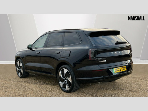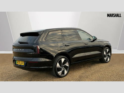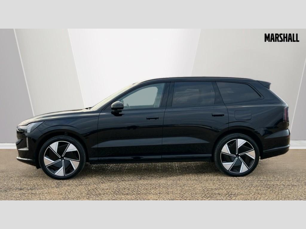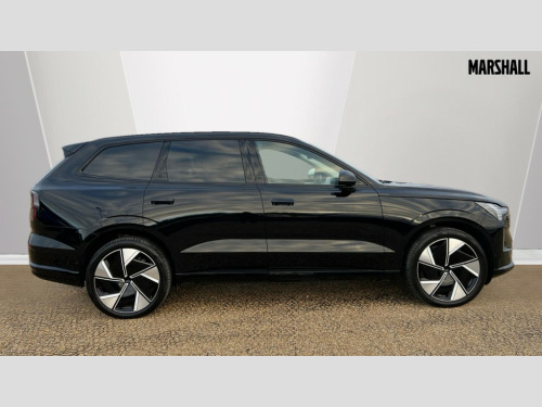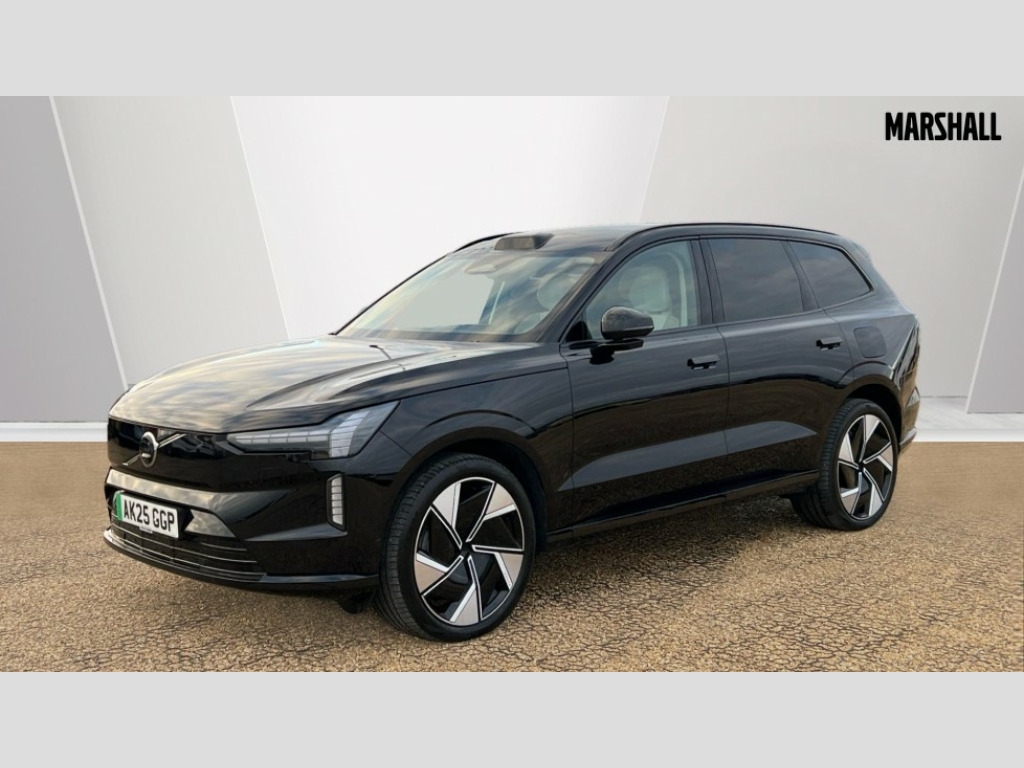 Volvo EX90 380kW Twin Motor Performance Ultra 111kWh 5dr Auto 14.5" centre console portrait touch screen, 360 degree surround view parking camera with 3D view, 8" steering column mounted driver display, Bluetooth handsfree system, Driver awareness - Blind spot information system with steer assist, cross traffic alert with autobrake and rear collision warning and mitigation, Driver understanding system (Eye tracking and hands on steering wheel detection), Emergency services call system, Front and rear park assist, Google automotive services - Enabled entertainment apps, navigation with google maps, voice recognition with google assistant, Handsfree power tailgate opening and closing, Head up display in windscreen includes road sign information, distance alert, set speed and navigation, Intelligent driver information system (IDIS), Intelligent speed assistance, Lane keeping aid, Park pilot assist with automatic steering and forward/reverse, Pilot assist, Power assisted speed sensitive steering, Power release/soft close doors, Roof mounted lidar, long range front racing radar, front and rear corner radars, front facing camera and side camera sensors, Speed limiter, Volvo cars services with app, Wireless apple carplay, Wireless/Inductive Mobile Phone Charging, 3 phase on board charger 11kW (home charging limited to 7.2kW), 6m 3 phase 32 amp type 2 / mode 3 charge cable, Active four-C chassis + four corner adaptive damper with electronic rear air suspension, Lithium-ion battery, Type 2 recharging port located in nearside front wing, 2 x front type C, 2 x 2nd row type C and 2 x 3rd row type C USB, Bowers and Wilkins high fidelity audio system with advanced 3D sound by dolby atmos/25 Speakers/1610W output/front headrest speakers and subwoofer, DAB Radio (Digital Audio Broadcasting), Low speed exterior sound speaker, Auto dimming interior and driver's door mirror, Automatic 1.3 mega pixel high definition headlights with active high beam and cornering function, Automatic headlight levelling system, Black auto folding and heated power door mirrors, Dark tinted windows - rear side windows and rear screen, Fixed panoramic glass sunroof, Front and rear electric windows, Headlight cleaning system, Heated aqua blades, High gloss black lower door, lower front spoiler and rear diffuser mouldings, High gloss black window surround, Integrated roof rails in high gloss black, Laminated side windows, LED 3rd brake light, LED daytime running lights, Metallic paint, Puddle lights, Rain sensor with automatic windscreen wiper activation, Rear side wing doors, Rear wiper, 12V socket in luggage compartment, 2 individual 3rd row seats, 2 x front, 2 x rear and 2 x 3rd row cupholders, 3 individual seats in 2nd row, 3 spoke tailored steering wheel with deco and infotainment/vehicle controls, 3rd row air conditioning, 4 zone electronic climate control with air quality system + pollen filter and air purifier PM2.5, 40/20/40 versatile split folding rear seat, B Pillar ventilation, Centre console cupholders and storage, Charcoal carpets and floor mats, Driver and front passenger seat power height and tilt adjustable with manual cushion extensions, Front headrests, Front load compartment (34 litres), Front massage seats, Heat pump (Enhanced cabin heating and cooling efficiency with optimal vehicle range), Heated front and rear outer 2nd row seats, Heated steering wheel, High level illumination (front cupholder, tunnel storage, luggage plus front and 2nd row footwell, cabin, reading door pocket and side step lights), ISOFIX attachment 2nd row outer seats, Load cover, Load protection net, Multi directional lumbar support, One pedal drive, Power folding 3rd row seats, Power front seat side support, Power height and reach adjustable steering column, Rear headrests, Single front passenger seat, 7 three point seatbelts, Door opening alert, Driver and passenger airbags, First aid kit, Front seat inner airbags, Hill descent control, Hill start assist, IC (Inflatable Curtains) - Full Length, Intersection autobrake, Passenger airbag cut-off switch, Power child locks on rear doors, Power parking brake with auto hold function, Road sign information display, Run off Road Mitigation, Seat occupancy sensor, Seatbelt reminder and pretensioners, SIPS (Side Impact Protection System), Slippery road and hazard light alert, Tyre pressure monitoring system, Warning triangle, WHIPS whiplash protection system - front, 2 x NFC Access cards, Anti-theft alarm including immobiliser/volume sensor + level sensor, Digital key plus with keytag, Keyless entry and start, Locking wheel nuts, Illuminated dashboard, rear backrest and door deco panels, Tailored instrument panel and door tops, 22" 5 spoke aero diamond cut/high gloss black alloy wheels, Tyre sealant kit and compressor