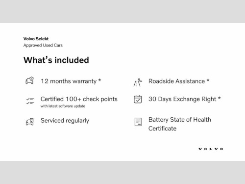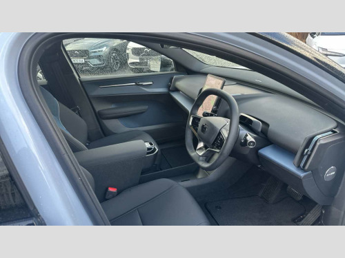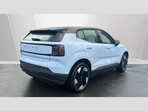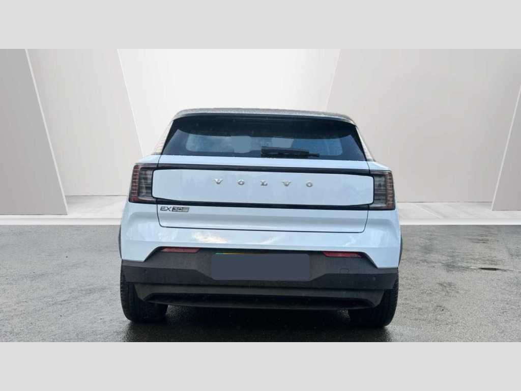 Whiplash injury protection, Inflatable Curtain, Rain sensor, NFC smart card key, Front load compartment, Over-the-air updates (OTA), Pedestrian and cyclist steering avoidance, Volvo EX30 App, Google Assistant. Google Maps and Google Play Store, Flexible load floor, Tailored sports steering wheel, Oncoming Lane Mitigation, Oncoming Mitigation by Braking, Intersection autobrake, Textile interior cabin floor mats, Large door pockets, Front storage, Removable rear storage box, Rear phone storage, Advanced sensing technology, Comfort chassis, Blind Spot Information System (BLIS), Charging station cable. 5m (22kW), 5 seats, Roof spoiler. high-gloss black, Door opening alert, Shift-by-wire single speed transmission, Rear-wheel drive (RWD), LED headlights with active high beam, Heat pump, LED headlights, Rear LED lights, Front and rear USB-C ports, Two-zone climate system, Seat track position sensors. driver and passenger, Air quality system, Air quality measurement and remote cabin air pre-cleaning, Post impact braking, Hill Start Assist, Speed limiter, Hill Descent Control, Manually adjustable driver seat, Manually adjustable passenger seat, Heated front seats, Fixed lumbar support, Textile & Nordico upholstery, Ambience themes, Interior illumination. high level, Temporary mobility kit, Summer tyres, 19? 5-spoke glossy black diamond cut, 5G capability, Battery Coolant Level Indication, Collision avoidance and mitigation, Adaptive cruise control, Auto-dimmed inner and door mirrors, One pedal drive, Driver alert system, Lane Keeping Aid, Intelligent Speed Assist (ISA), Humidity sensor, Digital key plus, Power tailgate, Passenger airbag cut-off switch, Park assist. front and rear, Heated steering wheel, Alarm, Lane Departure Warning, Door mirror covers. high-gloss black, Child safety lock, Park assist camera. rear, Traffic Jam Assist, Double lock, Without reflective vest, Roof top. high-gloss black, Direct occupant sensing, Digital Audio Broadcasting (DAB+), Wireless Apple CarPlay and Android Auto, 12.3-inch centre display, Harman Kardon Premium Sound, Wireless phone charging, Key tag, Power outlet. load compartment, Driver airbag, Side impact protection, Dual-stage airbags. passenger, First-aid kit, Denim decor, Air vent decor. blue, Vanity mirrors, Warning triangle, Fog lamps. rear, LED illumination. load compartment, ISOFIX child seat attachment, Sliding cupholders and storage, Front camera, Lane change assist, Rear Collision Warning, Rear Cross Traffic Alert with Autobrake, 11kw On-Board Charger (OBC), Road Sign Information, Alcohol lock software (not available in the UK), Door mirrors with ground lighting, Pilot Assist, Front Cross Traffic Alert, Run-off Road Mitigation, Flat-folding two-split rear seat, Without Toll Road Transponder, This car comes fully prepared under the Volvo Selekt programme so call us on 01962 881 414 to arrange a viewing or a personalised video walk around to watch from the comfort of your home!