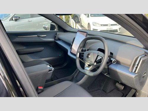 Whiplash injury protection, Inflatable Curtain, Rain sensor, NFC smart card key, Front load compartment, Over-the-air updates (OTA), Pedestrian and cyclist steering avoidance, Volvo EX30 App, Google Assistant. Google Maps and Google Play Store, Flexible load floor, Tailored sports steering wheel, Oncoming Lane Mitigation, Oncoming Mitigation by Braking, Intersection autobrake, Textile interior cabin floor mats, Large door pockets, Front storage, Removable rear storage box, Rear phone storage, Advanced sensing technology, Comfort chassis, Blind Spot Information System (BLIS), Charging station cable. 5m (22kW), 5 seats, Roof spoiler. high-gloss black, Door opening alert, Shift-by-wire single speed transmission, Rear-wheel drive (RWD), LED headlights with active high beam, Heat pump, LED headlights, Rear LED lights, Front and rear USB-C ports, Two-zone climate system, Seat track position sensors. driver and passenger, Air quality system, Air quality measurement and remote cabin air pre-cleaning, Post impact braking, Hill Start Assist, Speed limiter, Hill Descent Control, Manually adjustable driver seat, Manually adjustable passenger seat, Heated front seats, Fixed lumbar support, Textile & Nordico upholstery, Ambience themes, Interior illumination. high level, Temporary mobility kit, Summer tyres, 19? 5-spoke glossy black diamond cut, 5G capability, Collision avoidance and mitigation, Adaptive cruise control, Auto-dimmed inner and door mirrors, One pedal drive, Driver alert system, Lane Keeping Aid, Intelligent Speed Assist (ISA), Humidity sensor, Digital key plus, Power tailgate, Passenger airbag cut-off switch, Park assist. front and rear, Heated steering wheel, Alarm, Lane Departure Warning, Door mirror covers. high-gloss black, Child safety lock, Park assist camera. rear, Traffic Jam Assist, Double lock, Direct occupant sensing, Digital Audio Broadcasting (DAB+), Wireless Apple CarPlay and Android Auto, 12.3-inch centre display, Harman Kardon Premium Sound, Wireless phone charging, Key tag, Power outlet. load compartment, Driver airbag, Side impact protection, Dual-stage airbags. passenger, First-aid kit, Denim decor, Air vent decor. blue, Vanity mirrors, Warning triangle, Fog lamps. rear, LED illumination. load compartment, ISOFIX child seat attachment, Sliding cupholders and storage, Lane change assist, Rear Collision Warning, Rear Cross Traffic Alert with Autobrake, 11kw On-Board Charger (OBC), Road Sign Information, Alcohol lock software (not available in the UK), Door mirrors with ground lighting, Pilot Assist, Front Cross Traffic Alert, Run-off Road Mitigation, Flat-folding two-split rear seat, This car comes fully prepared under the Volvo Selekt programme so call us on 01962 881 414 to arrange a viewing or a personalised video walk around to watch from the comfort of your home!