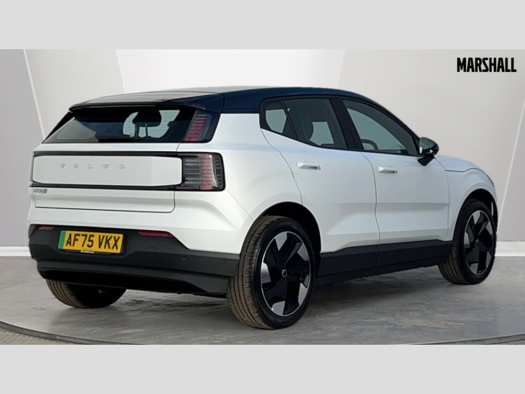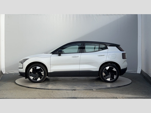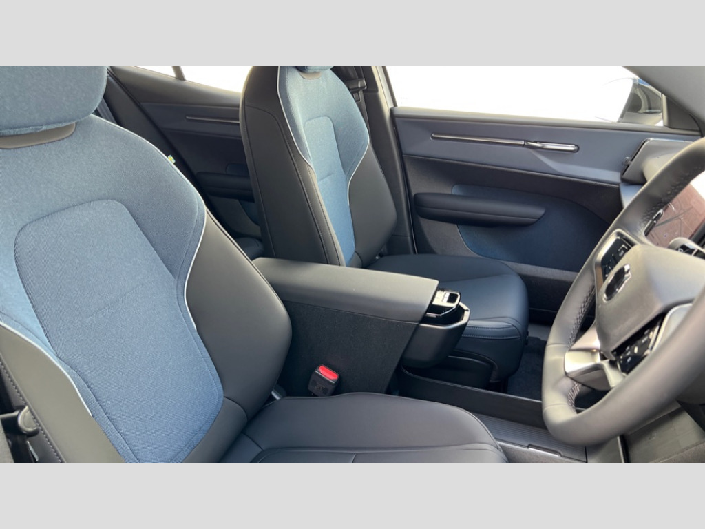 Volvo EX30 200kW SM Extended Range Plus 69kWh 5dr Auto 12.3" centre console portrait touch screen, 3 x Front and 2 x rear radars plus front vision camera, Adaptive cruise control, Android auto wireless, Blind spot information system with steer assist (BLIS), Bluetooth handsfree system, Collision avoidance at intersection, Cross traffic alert with brake support (Front and Rear), Driver alert control with lane keeping aid, Driver understanding system, Emergency call service, Forward collision warning, Front and rear park assist, Google automotive services - Enabled entertainment apps, navigation with google maps, voice recognition with google assistant, Intelligent speed assist, PAS, Pilot assist, Power operated tailgate, Rear park assist camera, Speed limiter, Volvo cars services with app, Wireless apple carplay, Wireless/Inductive Mobile Phone Charging, 11kW 3-Phase On Board Charger, 5m 3 phase 32 amp type 2 / mode 3 charge cable, Comfort chassis, Plug and charge, Recharging port located in nearside rear wing, DAB Digital radio, Dirac unison, External couple subwoofer and load compartment subwoofer, Harman Kardon Premium 5.1 Surround Sound 1040W - (2xC type USB Front & rear Sockets,Dashboard Soundbar with 7 Speakers), Low speed exterior sound speaker, Quantum logic, Vehicle noise compensation, Auto dimming interior and driver's door mirror, Auto folding heated frameless power door mirrors, Automatic LED Headlights + Active high beam incorporating daytime running lights, Dual tone roof and mirror caps, LED 3rd brake light, Metallic paint, Puddle lights, Rain sensor with automatic windscreen wiper activation, Rear side wing doors, Rear wiper, Variable intermittent wiper, 12V socket in luggage compartment, 2 zone electronic climate control with air purifier PM2.5, 3 seat bench in 2nd row, Central glovebox and storage, Fixed lumbar support, Flexible load floor, Floor mats, Front cupholders and storage, Front head restraints, Front load compartment (19 litres), Heat pump (Enhanced cabin heating and cooling efficiency with optimal vehicle range), Height/reach adjustable steering column, High level illumination (choise of 5 colour themes,central tunel,luggage,puddle,cabin,reading and front door panel pocket lights,instrument panel ), ISOFIX attachment on outer rear seats, Multifunction steering wheel, One pedal drive, Removable rear headrests, Single front passenger seat, Vehicle 2 load capability, Versatile split folding rear seat - 60/40, Climate pack - EX30, 3 point rear seatbelts, Child locks on rear doors, Collision avoidance and mitigation by braking and steering, Door opening alert, Driver and passenger airbags, First aid kit, Hill descent control, Hill start assist, IC (Inflatable Curtains) - Full Length, Inner driver seat side airbag, Passenger airbag cut-off switch, Post-impact Braking, Rear collision warning and mitigation (RCWM), Road sign information display, Run off Road Mitigation, Seatbelt pretensioners and load limiters (Front and Outer Rear Seats), SIPS (Side Impact Protection System), Tyre pressure monitoring system, Warning triangle, WHIPS whiplash protection system - front, 2 x NFC Access cards, Anti-theft alarm including immobiliser/volume sensor + level sensor, Digital key plus with keytag, Locking wheel nuts, Remote door locking and unlocking, Tyre sealant kit and compressor