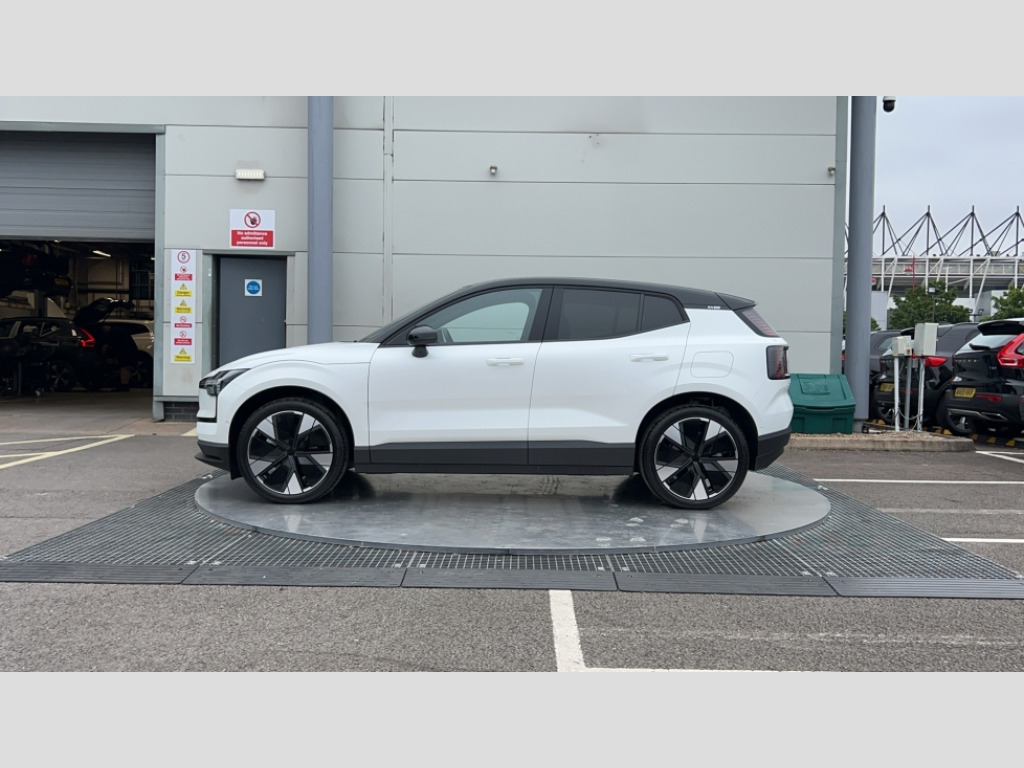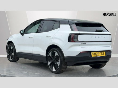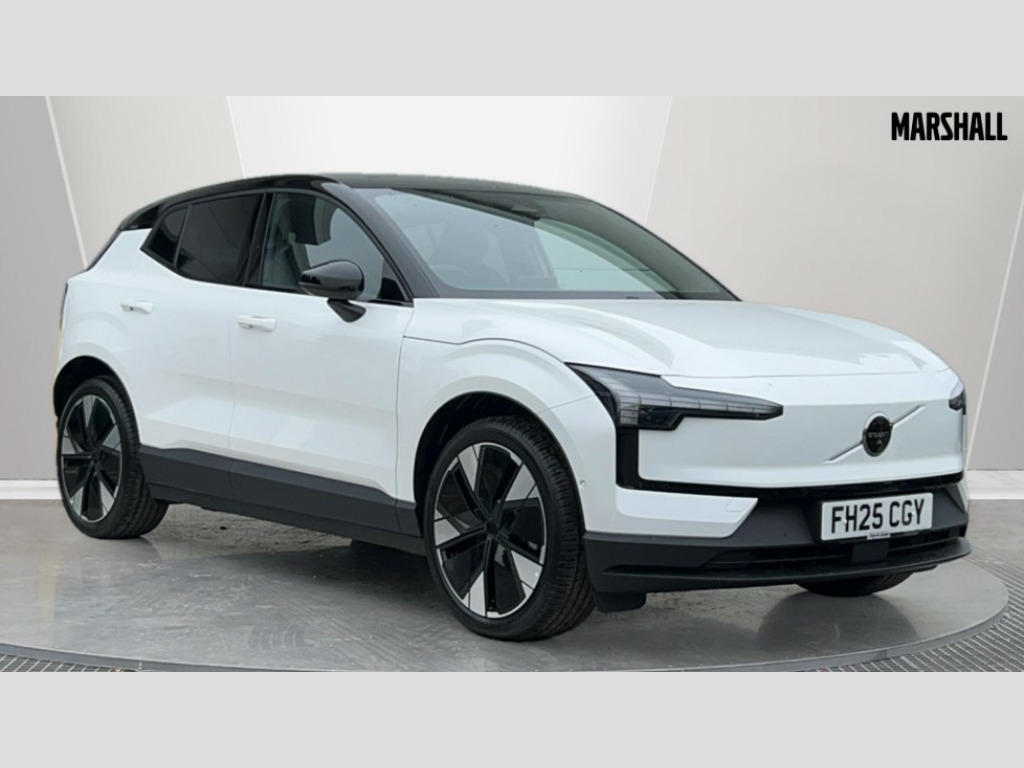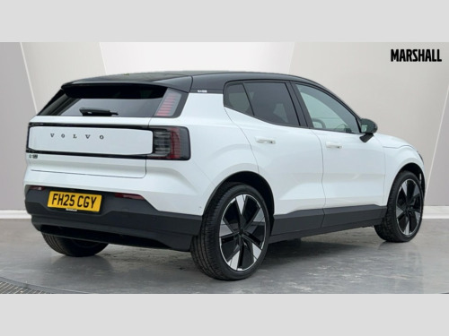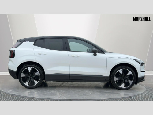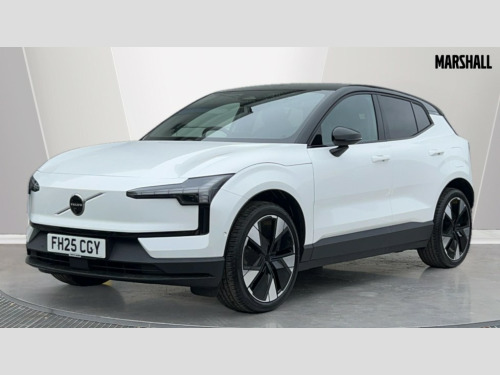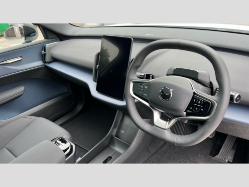 Volvo EX30 200kW SM Extended Range Ultra 69kWh 5dr Auto 12.3" centre console portrait touch screen, 3 x Front and 2 x rear radars plus front vision camera, 360 Degree camera with virtual 3D view, Adaptive cruise control, Android auto wireless, Blind spot information system with steer assist (BLIS), Bluetooth handsfree system, Collision avoidance at intersection, Cross traffic alert with brake support (Front and Rear), Driver alert control with lane keeping aid, Driver understanding system, Emergency call service, Forward collision warning, Front and rear park assist, Google automotive services - Enabled entertainment apps, navigation with google maps, voice recognition with google assistant, Intelligent speed assist, Park pilot assist, PAS, Power operated tailgate, Speed limiter, Volvo cars services with app, Wireless apple carplay, Wireless/Inductive Mobile Phone Charging, 3-Phase On Board Charger - 22kW, 5m 3 phase 32 amp type 2 / mode 3 charge cable, Comfort chassis, Plug and charge, Recharging port located in nearside rear wing, DAB Digital radio, Dirac unison, External couple subwoofer and load compartment subwoofer, Harman Kardon Premium 5.1 Surround Sound 1040W - (2xC type USB Front & rear Sockets,Dashboard Soundbar with 7 Speakers), Low speed exterior sound speaker, Quantum logic, Vehicle noise compensation, Auto dimming interior and driver's door mirror, Auto folding heated frameless power door mirrors, Automatic LED Headlights + Active high beam incorporating daytime running lights, Dark tinted windows - rear side windows and rear screen, Dual tone roof and mirror caps, Fixed panoramic glass sunroof, LED 3rd brake light, Metallic paint, Puddle lights, Rain sensor with automatic windscreen wiper activation, Rear side wing doors, Rear wiper, Variable intermittent wiper, 12V socket in luggage compartment, 2 zone electronic climate control with air purifier PM2.5, 3 seat bench in 2nd row, Central glovebox and storage, Fixed lumbar support, Flexible load floor, Floor mats, Front cupholders and storage, Front head restraints, Front load compartment (19 litres), Heat pump (Enhanced cabin heating and cooling efficiency with optimal vehicle range), Height/reach adjustable steering column, High level illumination (choise of 5 colour themes,central tunel,luggage,puddle,cabin,reading and front door panel pocket lights,instrument panel ), ISOFIX attachment on outer rear seats, Multifunction steering wheel, One pedal drive, Removable rear headrests, Single front passenger seat, Vehicle 2 load capability, Versatile split folding rear seat - 60/40, Climate pack - EX30, Power seat pack - EX30, 3 point rear seatbelts, Child locks on rear doors, Collision avoidance and mitigation by braking and steering, Door opening alert, Driver and passenger airbags, First aid kit, Hill descent control, Hill start assist, IC (Inflatable Curtains) - Full Length, Inner driver seat side airbag, Passenger airbag cut-off switch, Post-impact Braking, Rear collision warning and mitigation (RCWM), Road sign information display, Run off Road Mitigation, Seatbelt pretensioners and load limiters (Front and Outer Rear Seats), SIPS (Side Impact Protection System), Tyre pressure monitoring system, Warning triangle, WHIPS whiplash protection system - front, 2 x NFC Access cards, Anti-theft alarm including immobiliser/volume sensor + level sensor, Digital key plus with keytag, Locking wheel nuts, Remote door locking and unlocking, Tyre sealant kit and compressor