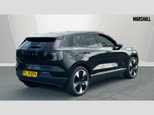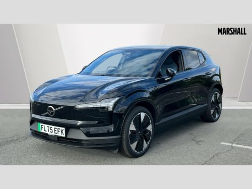 Volvo EX30 200kW SM Extended Range Ultra 69kWh 5dr Auto 12.3" centre console portrait touch screen, 3 x Front and 2 x rear radars plus front vision camera, 360 Degree camera with virtual 3D view, Adaptive cruise control, Android auto wireless, Blind spot information system with steer assist (BLIS), Bluetooth handsfree system, Collision avoidance at intersection, Cross traffic alert with brake support (Front and Rear), Driver alert control with lane keeping aid, Driver understanding system, Emergency call service, Forward collision warning, Front and rear park assist, Google automotive services - Enabled entertainment apps, navigation with google maps, voice recognition with google assistant, Intelligent speed assist, Park pilot assist, PAS, Power operated tailgate, Speed limiter, Volvo cars services with app, Wireless apple carplay, Wireless/Inductive Mobile Phone Charging, 3-Phase On Board Charger - 22kW, 5m 3 phase 32 amp type 2 / mode 3 charge cable, Comfort chassis, Plug and charge, Recharging port located in nearside rear wing, DAB Digital radio, Dirac unison, External couple subwoofer and load compartment subwoofer, Harman Kardon Premium 5.1 Surround Sound 1040W - (2xC type USB Front & rear Sockets,Dashboard Soundbar with 7 Speakers), Low speed exterior sound speaker, Quantum logic, Vehicle noise compensation, Auto dimming interior and driver's door mirror, Auto folding heated frameless power door mirrors, Automatic LED Headlights + Active high beam incorporating daytime running lights, Dark tinted windows - rear side windows and rear screen, Dual tone roof and mirror caps, Fixed panoramic glass sunroof, LED 3rd brake light, Metallic paint, Puddle lights, Rain sensor with automatic windscreen wiper activation, Rear side wing doors, Rear wiper, Variable intermittent wiper, 12V socket in luggage compartment, 2 zone electronic climate control with air purifier PM2.5, 3 seat bench in 2nd row, Central glovebox and storage, Fixed lumbar support, Flexible load floor, Floor mats, Front cupholders and storage, Front head restraints, Front load compartment (19 litres), Heat pump (Enhanced cabin heating and cooling efficiency with optimal vehicle range), Height/reach adjustable steering column, High level illumination (choise of 5 colour themes,central tunel,luggage,puddle,cabin,reading and front door panel pocket lights,instrument panel ), ISOFIX attachment on outer rear seats, Multifunction steering wheel, One pedal drive, Removable rear headrests, Single front passenger seat, Vehicle 2 load capability, Versatile split folding rear seat - 60/40, Climate pack - EX30, Power seat pack - EX30, 3 point rear seatbelts, Child locks on rear doors, Collision avoidance and mitigation by braking and steering, Door opening alert, Driver and passenger airbags, First aid kit, Hill descent control, Hill start assist, IC (Inflatable Curtains) - Full Length, Inner driver seat side airbag, Passenger airbag cut-off switch, Post-impact Braking, Rear collision warning and mitigation (RCWM), Road sign information display, Run off Road Mitigation, Seatbelt pretensioners and load limiters (Front and Outer Rear Seats), SIPS (Side Impact Protection System), Tyre pressure monitoring system, Warning triangle, WHIPS whiplash protection system - front, 2 x NFC Access cards, Anti-theft alarm including immobiliser/volume sensor + level sensor, Digital key plus with keytag, Locking wheel nuts, Remote door locking and unlocking, Tyre sealant kit and compressor