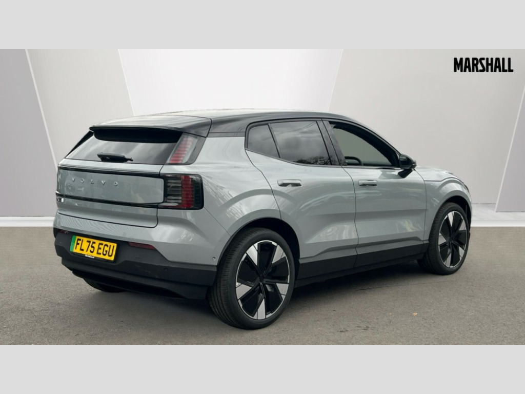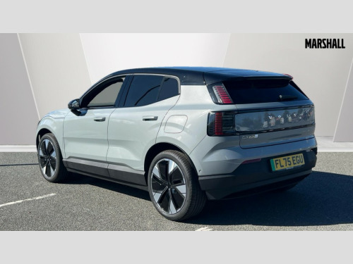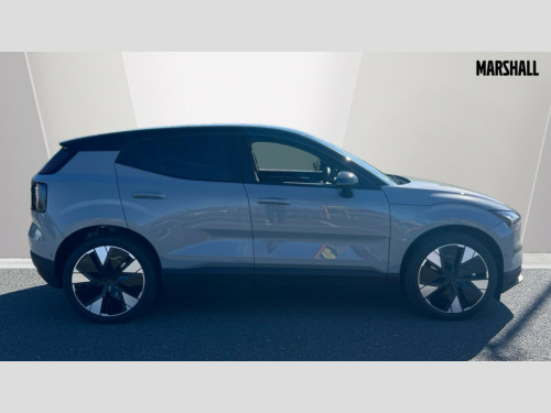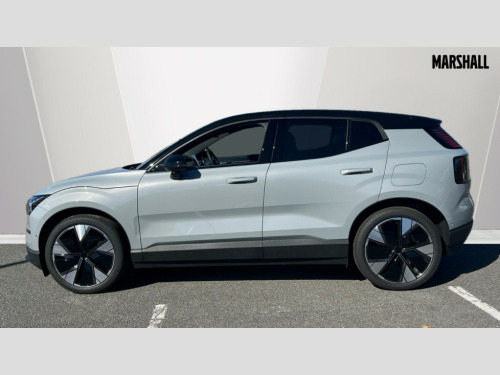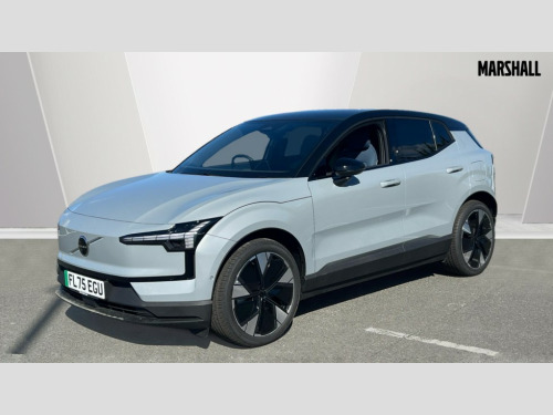 Volvo EX30 315kW Twin Motor Performance Ultra 69kWh 5dr Auto 12.3" centre console portrait touch screen, 3 x Front and 2 x rear radars plus front vision camera, 360 Degree camera with virtual 3D view, Adaptive cruise control, Android auto wireless, Blind spot information system with steer assist (BLIS), Bluetooth handsfree system, Collision avoidance at intersection, Cross traffic alert with brake support (Front and Rear), Driver alert control with lane keeping aid, Driver understanding system, Emergency call service, Forward collision warning, Front and rear park assist, Google automotive services - Enabled entertainment apps, navigation with google maps, voice recognition with google assistant, Intelligent speed assist, Park pilot assist, PAS, Power operated tailgate, Speed limiter, Volvo cars services with app, Wireless apple carplay, Wireless/Inductive Mobile Phone Charging, 3-Phase On Board Charger - 22kW, 5m 3 phase 32 amp type 2 / mode 3 charge cable, Comfort chassis, Plug and charge, Recharging port located in nearside rear wing, DAB Digital radio, Dirac unison, External couple subwoofer and load compartment subwoofer, Harman Kardon Premium 5.1 Surround Sound 1040W - (2xC type USB Front & rear Sockets,Dashboard Soundbar with 7 Speakers), Low speed exterior sound speaker, Quantum logic, Vehicle noise compensation, Auto dimming interior and driver's door mirror, Auto folding heated frameless power door mirrors, Automatic LED Headlights + Active high beam incorporating daytime running lights, Dark tinted windows - rear side windows and rear screen, Dual tone roof and mirror caps, Fixed panoramic glass sunroof, LED 3rd brake light, Metallic paint, Puddle lights, Rain sensor with automatic windscreen wiper activation, Rear side wing doors, Rear wiper, Variable intermittent wiper, 12V socket in luggage compartment, 2 zone electronic climate control with air purifier PM2.5, 3 seat bench in 2nd row, Central glovebox and storage, Fixed lumbar support, Flexible load floor, Floor mats, Front cupholders and storage, Front head restraints, Front load compartment (19 litres), Heat pump (Enhanced cabin heating and cooling efficiency with optimal vehicle range), Height/reach adjustable steering column, High level illumination (choise of 5 colour themes,central tunel,luggage,puddle,cabin,reading and front door panel pocket lights,instrument panel ), ISOFIX attachment on outer rear seats, Multifunction steering wheel, One pedal drive, Removable rear headrests, Single front passenger seat, Vehicle 2 load capability, Versatile split folding rear seat - 60/40, Climate pack - EX30, Power seat pack - EX30, 3 point rear seatbelts, Child locks on rear doors, Collision avoidance and mitigation by braking and steering, Door opening alert, Driver and passenger airbags, First aid kit, Hill descent control, Hill start assist, IC (Inflatable Curtains) - Full Length, Inner driver seat side airbag, Passenger airbag cut-off switch, Post-impact Braking, Rear collision warning and mitigation (RCWM), Road sign information display, Run off Road Mitigation, Seatbelt pretensioners and load limiters (Front and Outer Rear Seats), SIPS (Side Impact Protection System), Tyre pressure monitoring system, Warning triangle, WHIPS whiplash protection system - front, 2 x NFC Access cards, Anti-theft alarm including immobiliser/volume sensor + level sensor, Digital key plus with keytag, Locking wheel nuts, Remote door locking and unlocking, Tyre sealant kit and compressor