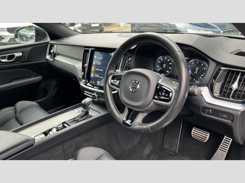 Volvo S60 2.0 T5 R DESIGN Plus 4dr Auto 12.3" Active TFT crystal driver's information display, 9" centre console touch screen, Adjustable steering wheel force, Bluetooth handsfree system, Drive mode settings, Driver alert control with lane keeping aid, Front and rear park assist, Hands free boot opening, Oncoming Lane Mitigation, Sensus navigation with European mapping and traffic information, Service interval indicator, Speed limiter, Speed sensitive steering, Trip computer, Voice activated control for key functions, Volvo on call, 8 speed automatic transmission with start/stop + manual change functions, Auxiliary input socket, DAB Radio (Digital Audio Broadcasting), Active high beam, Adaptive brake lights with high level LED brake lights, Auto dimming interior mirror, Automatic active bending LED headlights with adaptive shadow technology incorporating day running lights, Automatic headlight levelling system, Body colour bumpers, Colour coordinated auto folding and heated power door mirrors, Dual integrated exhaust pipes with high gloss black surround, Front and rear power windows, Front LED fog lights with cornering function, Headlight cleaning system, High gloss black door mirrors and window surround, High gloss black mesh front grille with silk metal surround, Home safe and approach lighting, Puddle lights, R Design tread plates, Rain sensor with automatic windscreen wiper activation, Rear diffuser, Roof antenna, Roof spoiler, Visible VIN plate, 2 zone electronic climate control with Clean zone air quality system + pollen filter, A-pillar parking ticket holder, B Pillar ventilation, Black headlining, Centre console cupholders, Contour sports seats with nappa leather/textile upholstery, Driver and front passenger seat cushion extension, Fixed rear seat and headrests, Front and rear footwell and side step illumination, Front and rear reading lights and centre armrest Storage Illumination, Front head restraints, Front/rear door pockets and front cupholder illumination, Glovebox compartment with illumination, Heated front seats, Height/reach adjustable steering column, High gloss black steering wheel remote infotainment controls, Illuminated vanity mirrors + ticket holder, ISOFIX attachment on outer rear seats, Leather sports steering wheel with gearshift paddles, Lockable glovebox, Luggage compartment illumination, Luggage compartment load hooks, Luggage compartment net pocket, Multicolour theatre lighting, Power driver seat with multi directional lumbar support and memory for seat and exterior mirrors, Rear armrest with storage + cupholders, Rear head restraints, Sports floor mats, Sports leather gear knob, Sports pedals, Tailgate illumination and ambient door lighting, Underfloor cargo storage, 5 x 3 point seatbelts, City safety with steering support with Pedestrian + cyclist + large animal detection + front collision warning with full auto brake, Dual stage driver/passenger airbags, First aid kit, Front passenger airbag cut off switch, Front seats SIPS airbags, Hill start assist, IC (Inflatable Curtains) - Full Length, Mechanical child locks on rear doors, Power parking brake with auto hold function, Road sign information display, Run off Road Mitigation, Run off Road Protection, Seatbelt reminder and pretensioners for all seats, SIPS (Side Impact Protection System), Slippery road and hazard light alert, Stability and Traction Control with Spin control, Engine Drag Control and Corner Traction Control, Tyre pressure monitoring system, Vehicle deceleration control with Anti-lock Brake System, Electronic Brake Distribution and Emergency Brake Assist, Warning triangle, WHIPS whiplash protection system - front, Anti-theft alarm including immobiliser/volume sensor + level sensor, Keyless drive (includes keyless entry and keyless start) with remote tag, Locking wheel nuts, Nappa leather key integrated remote control central locking including fuel flap with deadlocking system and auto open/close power windows, Private locking for bootlid, Metal mesh inlays