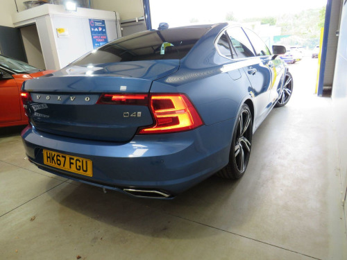 This 2018 Volvo S90 D4 R Design offers a full dealership service history, ensuring excellent provenance for this stylish saloon. With only two previous owners and a 12 month MOT provided on purchase, this Euro 6 compliant 2.0L diesel model is ready for its next chapter. Keyless Drive with Keyless Entry and Front Park Assist, including front sensors, add to the convenience, while the R Design trim boasts striking 20in 5 Double Spoke Diamond Cut Matt Black alloy wheels and dark tinted rear windows for a sophisticated look. Smartphone integration with two USB ports keeps you connected on the go. This Volvo S90 D4 R Design stands out with its low CO2 emissions, making it an economical choice. Its low insurance group rating further enhances its appeal as a cost effective vehicle to own and run. Youll also appreciate the generous boot space, perfect for luggage or shopping. Combined with a 3 month warranty for your peace of mind, this S90 presents a compelling package of style, practicality, and value.