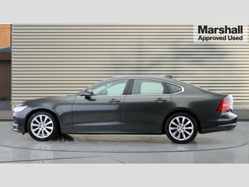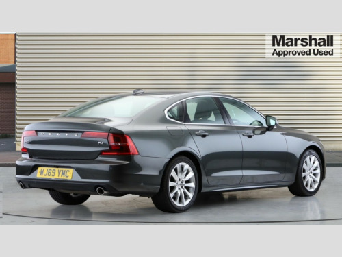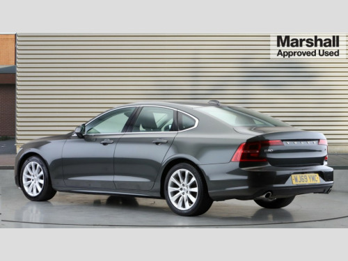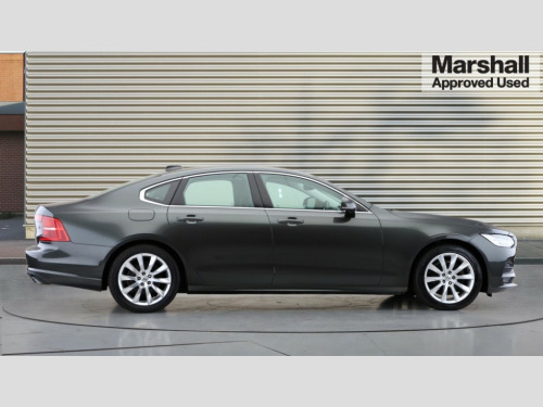 Volvo S90 2.0 T4 Momentum Plus 4dr Geartronic 12.3" Active TFT crystal driver's instrument display, 9" centre console touch screen, Adjustable steering wheel force, Bluetooth handsfree system, Drive mode selector, Intellisafe Assist (Pilot Assist and Adaptive Cruise Control), Lane keep assist with driver alert control, Oncoming Lane Mitigation, Opening/closing handsfree bootlid, Service interval indicator, Speed limiter, Speed sensitive steering, Voice activated control for key functions, Volvo on call app, 8 speed automatic transmission with start/stop + manual change functions, Dynamic chassis, DAB Digital radio, Steering wheel remote infotainment controls, Adaptive brake lights with high level LED brake lights, Auto dimming interior + exterior mirrors, Automatic headlight levelling system, Body colour bumpers, Chrome window surround, Colour coordinated auto folding and heated power door mirrors, Electrically adjustable door mirrors, Front and rear power windows, Home safe and approach lighting, LED front fog lights, LED Headlights + Active high beam incorporating daytime running lights, Piano black front grille with chrome surround, Puddle lights, Rain sensor with automatic windscreen wiper activation, Roof antenna, Twin chrome exhaust tailpipes, Visible VIN plate, 12V socket in front + rear tunnel console and boot, 2 zone electronic climate control with Clean zone air quality system + pollen filter, 3 spoke leather steering wheel with chrome trim, A-pillar parking ticket holder, B Pillar ventilation, Centre armrest with storage box, Centre console cupholder and storage, Door step illumination, Driver's side lower dashboard storage compartment, Extended front seat cushions, Floor mats, Front and rear aluminium tread plates, Front footwell and side step illumination, Front head restraints, Front tunnel net pocket, Front/rear reading lights, Heated front seats, Height/reach adjustable steering column, Illuminated gear knob, Illuminated glovebox with lock, Illuminated luggage compartment, Illuminated vanity mirrors + ticket holder, Isofix system on outer rear seats, Leather upholstery, Multi function steering wheel, Net pocket cargo area, Passenger seat with power height adjustment and multi-directional lumbar support, Power driver seat with multi-directional lumbar support and memory for seat and exterior mirrors, Power Folding Rear Seat Backrests and Headrests, Rear armrest with storage + cupholders, Ski hatch in rear seat backrest, Theatre dimming interior lights, Versatile split folding rear seat - 60/40, 3x3 point rear seatbelts, Active bonnet, City safety with steering support with Pedestrian + cyclist + large animal detection + front collision warning with full auto brake, Drivers knee airbag, Dual stage driver/passenger airbags, First aid kit, Front and rear curtain airbags, Front seats SIPS airbags, Hill start assist, IC (Inflatable Curtains) - Full Length, Passenger airbag cut-off device, Power parking brake with auto hold function, Road sign information display, Run off Road Mitigation, Run off Road Protection, Seatbelt reminder and pretensioners for all seats, SIPS (Side Impact Protection System), Slippery road and hazard light alert, Stability and Traction Control with Spin control, Engine Drag Control and Corner Traction Control, Tyre pressure monitoring system, Vehicle deceleration control with Anti-lock Brake System, Electronic Brake Distribution and Emergency Brake Assist, Warning triangle, WHIPS whiplash protection system - front, Anti-theft alarm including immobiliser/volume sensor + level sensor, Deadlocking system, Key integrated remote control central locking + fuel flap with deadlocking system and auto open/close power windows, Keyless drive with remote tag, Keyless Start, Locking wheel nuts, Private locking for boot area
