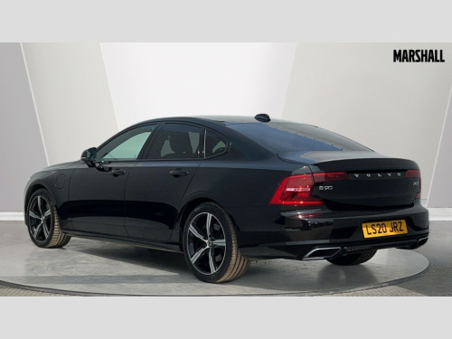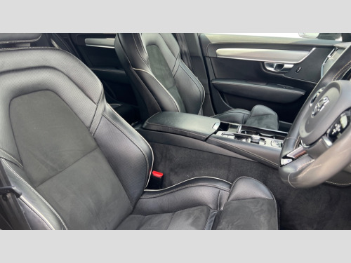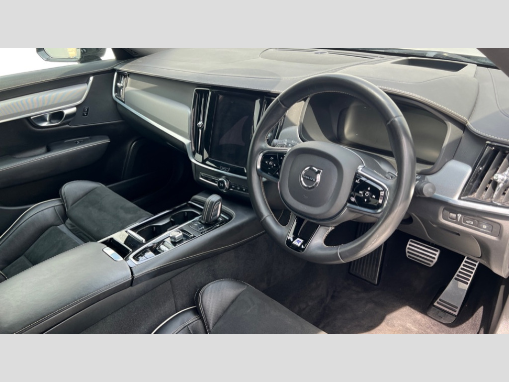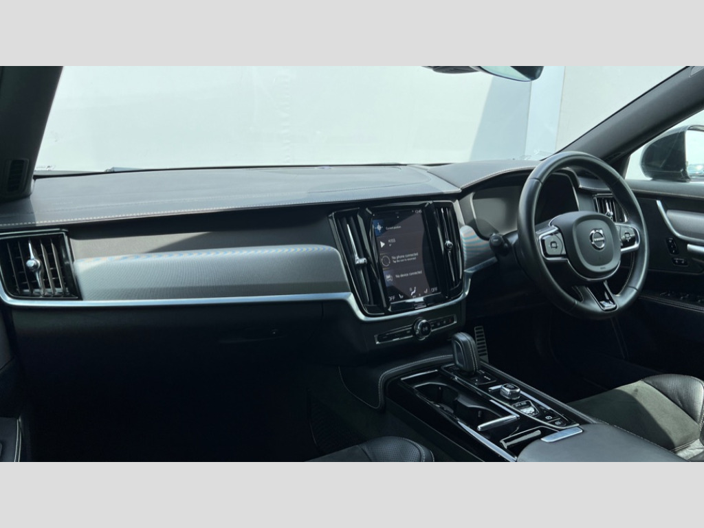 Volvo S90 2.0 T8 [390] Hybrid R DESIGN Plus 4dr AWD Gtron 12.3" Active TFT crystal driver's instrument display, 9" centre console touch screen, Adjustable steering wheel force, Bluetooth handsfree system, Drive mode selector, Intellisafe Assist (Pilot Assist and Adaptive Cruise Control), Lane keep assist with driver alert control, Oncoming Lane Mitigation, Opening/closing handsfree bootlid, Service interval indicator, Speed limiter, Speed sensitive steering, Voice activated control for key functions, Volvo on call app, 8 speed automatic transmission with start/stop + manual change functions, Electric rear axle drive, Lowered sport chassis, Recharging port located in nearside front wing, DAB Digital radio, Steering wheel remote infotainment controls, Active bending headlights with adaptive shadow technology, Adaptive brake lights with high level LED brake lights, Auto dimming interior + exterior mirrors, Automatic headlight levelling system, Body colour bumpers, Colour coordinated auto folding and heated power door mirrors, Dark tinted windows for rear side windows and backlight, Dual integrated exhaust pipes with high gloss black surround, Electrically adjustable door mirrors, Front and rear power windows, High gloss black Deco lower front bumper, High gloss black door mirrors and window surround, High gloss black mesh front grille with silk metal surround, Home safe and approach lighting, Laminated rear and side windows, LED Headlights + Active high beam incorporating daytime running lights, Puddle lights, Rain sensor with automatic windscreen wiper activation, Roof antenna, Silk metal grille surround, Visible VIN plate, 12V socket in front + rear tunnel console and boot, 2 zone electronic climate control with Clean zone air quality system + pollen filter, 3 spoke leather steering wheel with chrome trim, A-pillar parking ticket holder, Ambient door and instrument panel lighting, Auxiliary fuel fired heater with pre conditioning functions, B Pillar ventilation, Black headlining, Boot lid Illumination, Centre armrest storage illumination, Centre console cupholder and storage, Charcoal nappa leather key Integrated Remote, Charge cable bag, Door step illumination, Driver's side lower dashboard storage compartment, Extended front seat cushions, Front and rear aluminium tread plates, Front and rear door pocket and front cupholder illumination, Front footwell and side step illumination, Front head restraints, Front tunnel net pocket, Front/rear reading lights, Heated front seats, Height/reach adjustable steering column, Illuminated front and rear tread plates, Illuminated gear knob, Illuminated glovebox with lock, Illuminated luggage compartment, Illuminated vanity mirrors + ticket holder, Integrated sun curtains in rear doors, Isofix system on outer rear seats, Multi function steering wheel, Multicolour theatre lights, Net pocket cargo area, Power driver seat with multi-directional lumbar support and memory for seat and exterior mirrors, Power Folding Rear Seat Backrests and Headrests, Rear armrest with storage + cupholders, Rear footwell and side step illumination, Ski hatch in rear seat backrest, Sport pedals, Sports floor mats, Sports gearknob, Sports steering wheel with gear shift paddles, Versatile split folding rear seat - 60/40, 3x3 point rear seatbelts, Active bonnet, City safety with steering support with Pedestrian + cyclist + large animal detection + front collision warning with full auto brake, Drivers knee airbag, Dual stage driver/passenger airbags, First aid kit, Front and rear curtain airbags, Front seats SIPS airbags, Hill start assist, IC (Inflatable Curtains) - Full Length, Passenger airbag cut-off device, Power parking brake with auto hold function, Road sign information display, Run off Road Mitigation, Run off Road Protection, Seatbelt reminder and pretensioners for all seats, SIPS (Side Impact Protection System), Slippery road and hazard light alert, Stability and Traction Control with Spin control, Engine Drag Control and Corner Traction Control, Tyre pressure monitoring system, Vehicle deceleration control with Anti-lock Brake System, Electronic Brake Distribution and Emergency Brake Assist, Warning triangle, WHIPS whiplash protection system - front, Anti-theft alarm including immobiliser/volume sensor + level sensor, Deadlocking system, Key integrated remote control central locking + fuel flap with deadlocking system and auto open/close power windows, Keyless drive with remote tag, Keyless Start, Locking wheel nuts, Private locking for boot area, Tailored Instrument Panel and Door Tops with Contrast Stitching, 19'' 5 spoke diamond cut matt black alloy wheels, Tyre sealant kit and compressor