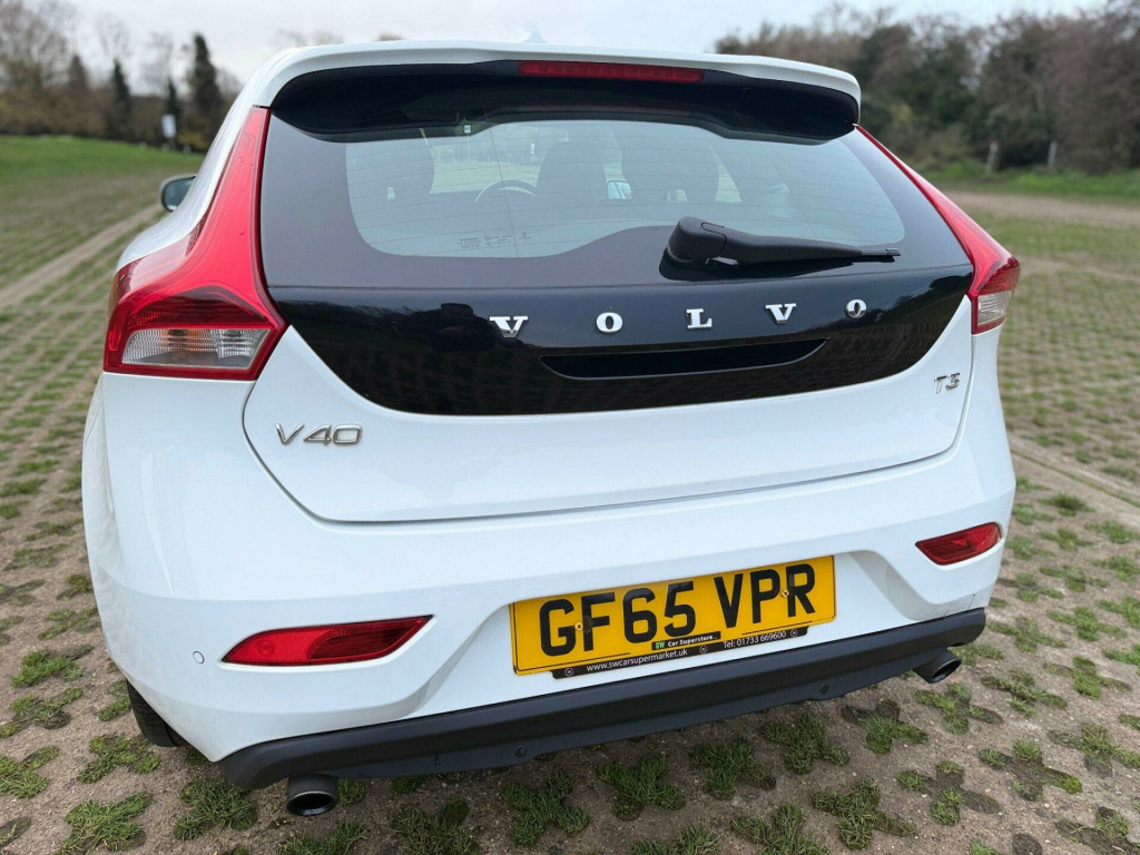 VOLVO V40 1.5 T3 SE LUX NAV HATCHBACK 5DR PETROL AUTO EURO 6 (S/S) PETROL AUTOMATIC WHITE ULEZ FREEKEY FEATURESSat NavHeated SeatsAir ConditioningAlloy WheelsLux Trim - High SpecHPI ClearHIGHLIGHTS3 MONTHS WARRANTY INCLUDED (EXTENDABLE UP TO 2 YEARS)Mechanically Perfect - Powerful & Smooth T3 EngineAutomatic Gearbox & Suspension Very SmoothVery Well-Maintained Car Inside & OutComfortable Seats - Premium CabinLooks & Drives SuperbLow Insurance & Very EconomicalJust Buy & DriveFirst To See Will BuyView By Appointment OnlyPart Exchange WelcomeFREE BREAKDOWN COVERNATIONWIDE DELIVERY AVAILABLE ar park assist, leather-faced - charcoal, 12v socket - front, 12v socket - rear, 17in alloy wheels - mannan, a-pillar parking ticket holder, abs - anti-lock brake system, access to a range of selected web apps and internet browser, adaptive brake lights, advanced stability control and torque vectoring, airbags - drivers dual stage, airbags - dual chamber sips, airbags - passenger dual stage, amplifier 45w x4, anti-theft alarm, armrest - front centre with storage, armrest - front/sliding, armrest - rear centre, bluetooth handsfree system, central locking - remote, chrome window trim, city safety, climate control - electronic, colour display screen - 7in, comfort pack, connected service booking, cruise control, cupholders - front, cupholders - rear, dab - digital audio broadcasting radio, dvd player, dashboard - charcoal, deadlock system, door mirrors - body coloured, door mirrors - power folding with ground lights, door sill tread plates - front, driver knee airbag, dynamic chassis, dynamic stability control, eba - emergency brake assistance, electric windows - front and rear, european mapping, exhaust pipes - twin, floor mats, forward folding front passenger seat, front reading - footwell and theatre lights, hard disk drive for music storage, headlight cleaning system, headlights - active bending, headlights - levelling system, headlights - tunnel sensor, headlights - xenon, headlining - blond, height and reach adjustable steering column, high level led brake light, hill start assist, home safe and approach lighting, ic - inflatable curtains, idis - intelligent driver information system, isofix child seat preparation - rear, immobiliser, information centre, interior trim - shimmer graphite aluminium, led day running lights, level sensor, lifetime annual map updates, locking wheel nuts, passenger airbag cut-off switch, pedestrian airbag technology, pollen filter, rds-tmc - traffic message channel, radio/cd, rain sensor, rear reading - theatre and front door side step illumination, roof spoiler, sips - side impact protection system, seats - drivers height adjustment with lumbar support, seats - drivers tiltable, seats - front height adjustment, seats - passenger height adjustment with lumbar support, sensus connect with high performance sound, sensus navigation, side marker illumination, speakers x8, speed limiter, speed sensitive steering, steering wheel - 3 spoke leather with chrome trim, steering wheel remote audio controls, traction control, tyre pressure monitoring system, tyre sealant kit and compressor, usb/ipod input, versatile split folding rear seats - 60-40, voice activated control, volume sensor, whips - whiplash protection system - front seats, warning triangle