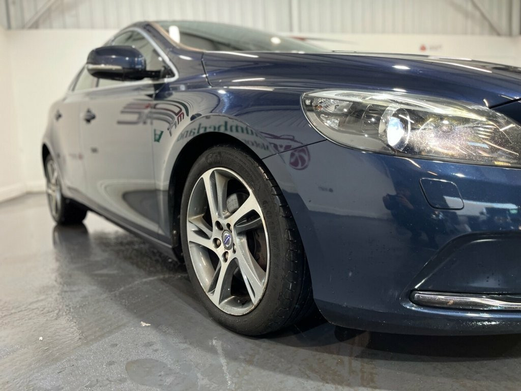 Volvo V40 1.6 D2 SE Lux Hatchback 5dr Diesel Powershift Euro 5 (s/s) (115 PS). This two-owner Volvo V40 is supplied with two keys and comes with a full service history recorded at 9k, 16k, 21k, 27k, 31k, 35k, 41k, 49k, 54k and 59k miles. It offers the refined comfort and strong efficiency expected from the D2 Powershift model. The specification includes alloy wheels, rear parking sensors, electric door mirrors, automatic headlights, full leather upholstery, heated front seats, DAB radio, Bluetooth connectivity and climate control. A well-cared-for SE Lux example offering premium comfort, excellent running costs and dependable Volvo build quality. 12V Socket - Front, 12V Socket - Rear, 17in Alloy Wheels - Mannan, A-Pillar Parking Ticket Holder, ABS - Anti-Lock Brake System, Adaptive Brake Lights, Advanced Stability Control and Torque Ve, Airbags - Drivers Dual Stage, Airbags - Dual Chamber SIPS, Airbags - Passenger Dual Stage, Amplifier 45W x4, Anti-Theft Alarm, Armrest - Front/Sliding, Armrest - Rear Centre, Bluetooth Handsfree System, Central Locking - Remote, Chassis - Comfort, Chrome Window Trim, City Safety, Climate Control - Electronic, Colour Display Screen - 5in, Comfort Pack, Cruise Control, Cupholders - Rear, DAB - Digital Audio Broadcasting Radio, Deadlock System, Door Mirrors - Body Coloured, Door Mirrors - Power Folding w