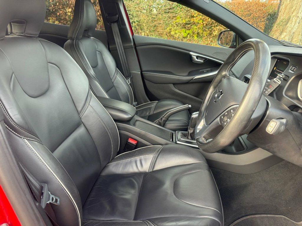 A HIGH SPEC V40 R-DESIGN WITH HEATED LEATHER SEATS, FRONT AND REAR PARK ASSIST, REAR PARKING CAMERA, BLUETOOTH AND SATELLITE NAVIGATION. ULEZ COMPLIANT. 12V Socket - Front and Rear Tunnel Conso, 18in Alloy Wheels - Ixion IV - Diamond C, A-Pillar Parking Ticket Holder, ABS - Anti-Lock Brake System and EBA - E, Active TFT Crystal Drivers Information D, Adaptive Brake Lights including High Lev, Adjustable Front Centre Armrest, Anti-Theft Alarm including Immobiliser -, Autofolding Power Door Mirrors with Grou, Automatic Headlight Levelling System, Automatic LED Headlights Incorporating D, Bluetooth Handsfree System, City Safety, Cruise Control, DAB - Digital Audio Broadcasting Radio, DSTC - Dynamic Stability and Traction Co, Dark Tinted Windows - Rear Side Doors an, Drivers Side Knee Airbag, Dual Stage Driver and Passenger Airbags, Dynamic Chass