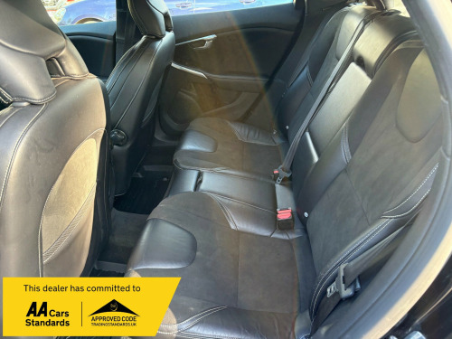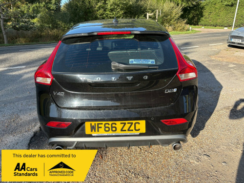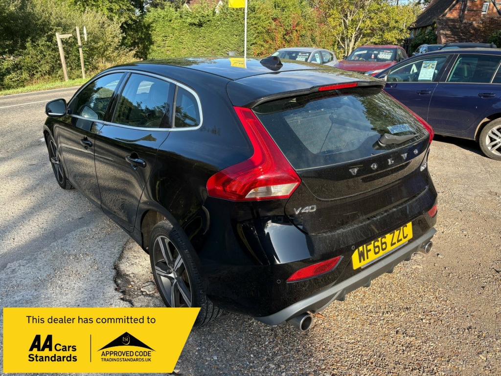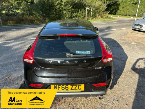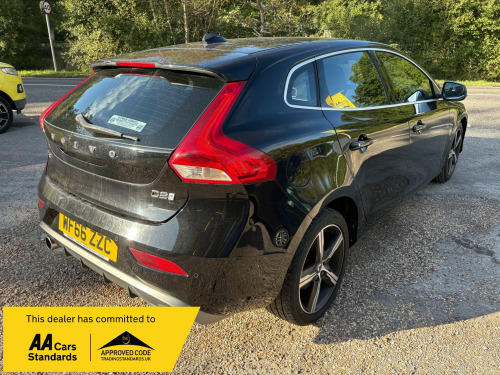 MUST BE SEEN AND WHAT A GREAT VALUE BEAUTIFUL 2016/66 VOLVO V40 2.0 D2 R-DESIGN WITH AN AVERAGE MILEAGE OF ONLY 102,000 MILES WITH A FABULOUS FULL SERVICE HISTORY RECORD , THIS MILEAGE IS NOTHING FOR A VOLVO WHATSOEVER!! PLUS ITS AVERAGE FOR ITS AGE BUT IN LOVELY WELL LOOKED AFTER CONDITION , FINISHED IN METALLIC BLACK WITH FULL UNMARKED LEATHER /SUEDE INTERIOR, 6 SPEED MANUAL AND BEING DIESEL THIS LOVELY LOOKING SPORTY 5 DOOR EXAMPLE THIS IS AN AMAZING 50-60 MILES PER GALLON , WE HIGHLY RECOMMEND THIS FINE EXAMPLE AND ALSO COMES WITH A NEW MOT AND 12 MONTHS WARRANTY EXTENDABLE UPTO 36 MONTHS .RAN CARS AND COMMERCIALS LIMITED v socket - front, 12v socket - rear, amplifier 45w x4, bluetooth handsfree system, colour display screen - 5in, dab - digital audio broadcasting radio, high performance audio system, speakers x8, usb/ipod input, 17in alloy wheels - ixion matt black, chrome window trim, door mirrors - body coloured, door mirrors - power folding with ground lights, door mirrors - silver matt (r-design), electric windows - front and rear, exhaust pipes - twin (r-design), locking wheel nuts, roof spoiler, side marker illumination, tyre sealant kit and compressor, 8in active tft crystal drivers instrument display, chassis - comfort, idis - intelligent driver information system, information centre, speed limiter, speed sensitive steering, tyre pressure monitoring system, a-pillar parking ticket holder, armrest - front centre with storage, armrest - front/sliding, armrest - rear centre, charcoal headlining, climate control - electronic, cupholders - front, cupholders - rear, dashboard - charcoal, floor mats - sports (r-design), front footwell lighting, front reading - footwell and theatre lights, front reading lights, height and reach adjustable steering column, illuminated gear knob, multicolour theatre lighting, pollen filter, r-design aluminium trim, seats - front height adjustment, sports pedals - aluminium (r-design), steering wheel - leather/sports (r-design) with logo, steering wheel remote audio controls, versatile split folding rear seats - 60-40, abs - anti-lock brake system, adaptive brake lights, advanced stability control and torque vectoring, airbags - drivers dual stage, airbags - dual chamber sips, airbags - passenger dual stage, anti-theft alarm, central locking - remote, city safety, deadlock system, driver knee airbag, dynamic stability control, eba - emergency brake assistance, hill start assist, ic - inflatable curtains, isofix child seat preparation - rear, immobiliser, level sensor, passenger airbag cut-off switch, pedestrian airbag technology, sips - side impact protection system, traction control, volume sensor, whips - whiplash protection system - front seats, warning triangle, headlights - levelling system, headlights - tunnel sensor, high level led brake light, home safe and approach lighting, led day running lights