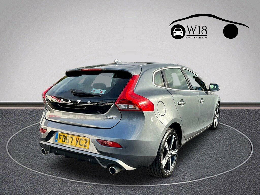 This 2018 Volvo V40 D2 R-Design Nav Plus presents an exceptional opportunity with its remarkably low mileage of just 54,512 miles for its age. This Euro 6 compliant 2.0L diesel model boasts a full service history (@11,614, @22,718, @30,646, @38,370, @44,704, @49,098, @51,588, @54,512) and a clear vehicle history check, ensuring peace of mind for its next owner. The R-Design Nav Plus trim level comes equipped with desirable features such as Electronic Climate Control with a pollen filter, automatic headlights that switch on when needed, and rear parking assist sensors to aid manoeuvring. You'll also benefit from LED headlights with integrated day running lights for enhanced visibility and a Bluetooth handsfree system for seamless connectivity on the go. This Volvo V40 stands out with its impressive fuel economy, achieving a remarkable 79 miles per gallon, which is significantly better than many other vehicles in its class. Its low CO2 emissions also contribute to its cost effectiveness and environmental consideration. Furthermore, the V40 sits in a low insurance group, making it an economical choice for everyday driving. The acceleration from 0 to 60 miles per hour is achieved in a respectable 9.8 seconds, offering a balanced performance. You'll also appreciate the generous boot space, providing ample room for luggage or shopping, and the vehicle comes with a 6 month warranty and a 12 month MOT for added reassurance. 12V Socket - Front and Rear Tunnel Conso, 17in Alloy Wheels - Ixion III - Diamond , A-Pillar Parking Ticket Holder, ABS - Anti-Lock Brake System and EBA - E, Active TFT Crystal Drivers Information D, Adaptive Brake Lights including High Lev, Adjustable Front Centre Armrest, Anti-Theft Alarm including Immobiliser -, Autofolding Power Door Mirrors with Grou, Automatic Headlight Levelling System, Bluetooth Handsfree System, City Safety, Cruise Control, DAB - Digital Audio Broadcasting Radio, DSTC - Dynamic Stability and Traction Co, Drivers Side Knee Airbag, Dual Stage Driver and Passenger Airbags, Dynamic Chassis, ECC - Electronic Climate Control includi, Floor Mats, Frameless Rear View Mirror