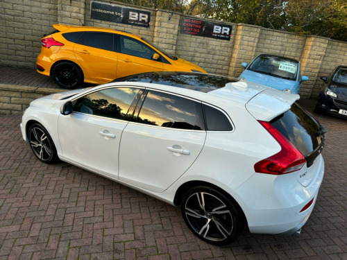 85,151 miles (7 Volvo main dealer + 1 Independent service stamps) 1 year MOT - 3 month warranty - service all included at point of sale, We are delighted to offer for sale this stunning looking and superb driving example of this much loved and sought after R-Design Edition D3 model, Excellent condition throughout, Volvo + 2 owners, this V40 drives perfect it pulls really well and it still feels nice and tight to drive, very safe and reliable vehicle, Economical to run as the 2.0 Litre 187 BHP engine returns over 67 miles per gallon combined, A must see stunning V40! Specification as follows: SAT/NAV, reverse camera, front+rear parking sensors, Leather, front+rear heated seats, Voice activation, Bluetooth connectivity, Cruise control/speed limiter, Panoramic glass roof with electric sliding blind, 4 electric windows, electric heated/folding door mirrors, dual automatic digital climate control, air conditioning (cooled glove box) NAV/CD/DAB RADIO/MEDIA player with steering controls + remote USB socket, on board trip computer, remote central locking, 2 keys, alarm/immobiliser, sports mode, tailgate release switch, automatic windscreen wipers/headlights, LED Daytime running lights, start/stop system, start/stop button, auto park, front+rear arm rests, X2 12 volt sockets, cup holders, illuminated vanity mirrors, digital clock+outside Temp, power steering, fully adjustable steering, fully adjustable front sports seats (height adjustable/lumbar support) 60/40 split/folding rear seats, Front/side/curtain/knee airbags, airbag deactivation, 5 headrests, 5 seatbelts, seatbelt pretensioners, WHIPS+SIPS safety, central locking/electric window over-ride switches, high brake light, ABS brakes, traction control, blind spot system, lane assist, distance alert and driver alert systems, rear wiper, fog lights, headlight washer jets, spoiler, twin exhaust outlets, XENONS, alloys, £200 deposit secures this lovely smooth driving V40 !!! OPEN 7 DAYS - OPEN LATE 8 PM - PART EX WELCOME - CREDIT/DEBIT CARDS ACCEPTED - FINANCE ARRANGED - NATIONWIDE DELIVERY POSSIBLE BY ARRANGEMENT v socket - front and rear tunnel console, 18in alloy wheels - ixion iv - diamond cut-matt black, a-pillar parking ticket holder, abs - anti-lock brake system and eba - emergency brake assist, active tft crystal drivers information display, adaptive brake lights including high level led brake light, adjustable front centre armrest, anti-theft alarm including immobiliser - volume sensor and level sensor, autofolding power door mirrors with ground lights, automatic headlight levelling system, automatic led headlights incorporating day running lights, bluetooth handsfree system, city safety, cruise control, dab - digital audio broadcasting radio, dstc - dynamic stability and traction control including advanced stability control and torque vectoring, dark tinted windows - rear side doors and cargo area, drivers side knee airbag, dual stage driver and passenger airbags, dynamic chassis, ecc - electronic climate control including pollen filter, forward folding-height adjustable front passenger seat with lumbar support, frameless auto dimming rear view mirror, front centre armrest with cupholders and storage, front reading and footwell lights, front and rear park assist, front and rear power windows, gear shift paddles, headlight cleaning system, headlights - active bending led, height adjustable tiltable driver seat with lumbar support, height and reach adjustable steering column, hill start assist, home safe and approach lighting, ic - inflatable curtains, idis - intelligent driver information system, isofix attachment - outer rear seats, illuminated gear knob, illuminated vanity mirrors, information centre, key integrated remote control central locking including fuel flap with deadlocking system and auto open-close power windows, leather steering wheel with chrome deco and r-design logo, load cover - cargo area, lockable glovebox, locking wheel nuts, manual child locks - rear doors, passenger airbag cut-off switch, pedestrian airbag technology, power driver seat, r-design front door tread plates, r-design front grille, r-design lower front nose and rear diffuser, r-design twin exhaust pipes, rain sensor - automatic windscreen wiper activation, rear park assist camera, rear reading - theatre and front door side step illumination, rear seat armrest and cupholders, rear tailgate emblem, roof spoiler, sips - side impact protection system and dual chamber sips airbags, sensus connect with high performance sound, sensus navigation, silk metal window trim surround, silver matt door mirrors, speed limiter, speed sensitive steering, sports pedals and floor mats, stealth aluminium trim, steering wheel remote audio controls, tyre pressure monitoring system, tyre sealant kit and compressor, versatile split folding rear seats - 60-40, visible vin plate, whips - whiplash protection system - front seats, warning triangle