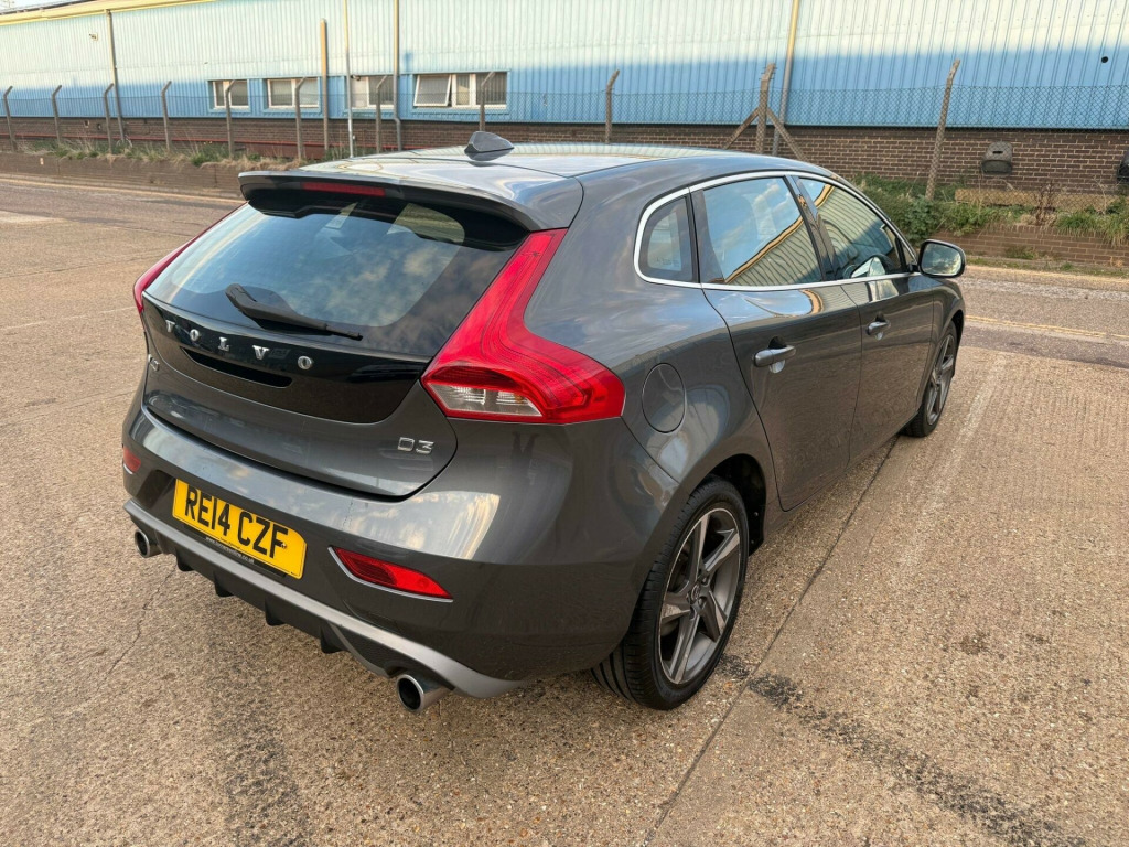 6 months warranty parts and labour nationwide and can be extended up to 24 months . Video call is available, Fresh Mot and serviced on sale. full valet to a high standard. driveway insurance optional, all major cards accepted, Delivery available all over the UK, viewing is by appointments only. HPI CLEAR .BUY WITH FULL CONFIDENCE AND FEEL FREE TO ASK ANY QUESTIONS ABOUT CARS. we take all sorts of cars and vans in part exchange including non runners. for more variety of stock please visit our websiteThis 2014 Volvo V40 D3 R-Design Nav offers a compelling blend of style and practicality. Powered by a 2.0L diesel engine, this R-Design Nav trim model comes equipped with a High Performance Multimedia Sound Audio System featuring CD and DVD playback, a Comfort Pack for enhanced driving pleasure, and power steering for effortless manoeuvrability. Inside, you'll find illuminated driver and passenger vanity mirrors, and the distinctive blue dials in the instrument cluster are a hallmark of the R-Design specification.The V40 D3 R-Design Nav boasts a generous boot space, making it ideal for everyday errands and longer journeys alike. Its performance is equally impressive, with an acceleration of 0-60mph achieved in just 9.1 seconds, demonstrating its responsive nature. These features collectively highlight how this Volvo V40 provides a superior driving experience compared to other vehicles in its class. uise control, comfort pack, 12v socket - front, 12v socket - rear, 17in alloy wheels - ixion matt black, 8in active tft crystal drivers instrument display, a-pillar parking ticket holder, abs - anti-lock brake system, adaptive brake lights, advanced stability control and torque vectoring, airbags - drivers dual stage, airbags - dual chamber sips, airbags - passenger dual stage, amplifier 45w x4, annual map updates x2, anti-theft alarm, armrest - front/sliding, armrest - rear centre, bluetooth handsfree system, central locking - remote, charcoal headlining, chrome window trim, city safety, climate control - electronic, colour display screen - 7in, cupholders - rear, dab - digital audio broadcasting radio, dvd player, deadlock system, door mirrors - power folding with ground lights, door mirrors - silver matt (r-design), driver knee airbag, dynamic chassis, dynamic stability control, eba - emergency brake assistance, electric windows - auto open and close, electric windows - front and rear, european mapping, exhaust pipes - twin (r-design), floor mats - sports (r-design), front reading - footwell and theatre lights, front storage box with cupholders, glovebox - cooled, headlights - levelling system, headlights - tunnel sensor, height and reach adjustable steering column, high level led brake light, high performance multimedia sound audio system - cd-dvd, home safe and approach lighting, ic - inflatable curtains, idis - intelligent driver information system, isofix child seat preparation - rear, illuminated driver and passenger vanity mirrors, illuminated gear knob, immobiliser, information centre, instrument cluster - blue dials (r-design), led day running lights, level sensor, locking wheel nuts, passenger airbag cut-off switch, pedestrian airbag technology, pollen filter, power steering system, r-design aluminium trim, rds-tmc - traffic message channel, radio/cd, roof spoiler, sips - side impact protection system, satellite navigation - inc rds/tmc and european mapping (dvd), seats - drivers height adjustment with lumbar support, seats - front lumbar support, side marker illumination, speakers x8, speed limiter, sports pedals - aluminium (r-design), steering wheel - leather/sports (r-design) with logo, steering wheel remote audio controls, traction control, tyre sealant kit and compressor, usb/ipod input, unique r-design lower front nose, versatile split folding rear seats - 60-40, visible vin plate, voice activated control, volume sensor, whips - whiplash protection system - front seats, warning triangle