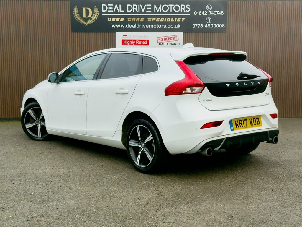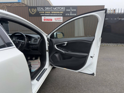 2017 Volvo V40 2.0 D3 R-Design Nav Plus Manual – 150 PS Available now at DealDrive Motors. The Volvo V40 R-Design Nav Plus combines sharp Scandinavian styling with strong efficiency and engaging performance. Powered by a 2.0-litre D3 diesel engine producing 150 PS, it delivers smooth, responsive acceleration while remaining highly economical. Fully Euro 6 / ULEZ compliant, it's ideal for both city driving and longer journeys. The R-Design Nav Plus specification adds a sportier edge, enhancing both the exterior presence and the driver-focused cabin. Features include rear parking sensors, dark tinted rear windows, electronic climate control, and Bluetooth handsfree connectivity, providing comfort and convenience for everyday use. LED headlights with daytime running lights improve visibility while adding a modern touch to the V40's clean design. Known for its excellent efficiency, this V40 achieves up to 74 mpg, helping to keep running costs low without compromising performance. Balanced handling, refined ride quality, and Volvo's renowned safety-focused engineering make it a compelling choice in the premium hatchback segment. Presented in excellent condition and HPI clear, this Volvo V40 R-Design offers style, economy, and practicality in equal measure. Ownership Highlights: Power: 150 PS Economy: up to 74 mpg Transmission: Manual | Diesel Drive: FWD Emissions: Euro 6 | ULEZ Compliant Spec: R-Design Nav Plus | Rear Sensors | LED Lights | Climate C 12V Socket - Front and Rear Tunnel Conso, 17in Alloy Wheels - Ixion III - Diamond , A-Pillar Parking Ticket Holder, ABS - Anti-Lock Brake System and EBA - E, Active TFT Crystal Drivers Information D, Adaptive Brake Lights including High Lev, Adjustable Front Centre Armrest, Anti-Theft Alarm including Immobiliser -, Autofolding Power Door Mirrors with Grou, Automatic Headlight Levelling System, Bluetooth Handsfree System, City Safety, Cruise Control, DAB - Digital Audio Broadcasting Radio, DSTC - Dynamic Stability and Traction Co, Drivers Side Knee Airbag, Dual Stage Driver and Passenger Airbags, ECC - Electronic Climate Control includi, Floor Mats, Frameless Rear View Mirror, Front Centre Ar