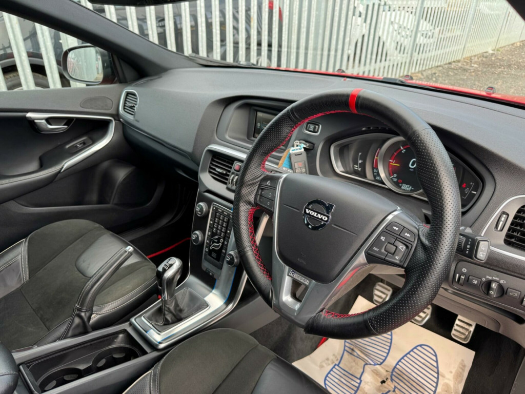 Hi welcome to Pricemark Motors here we have for sale is our Volvo V40 R-Design with only 4 previous owners 2 keys 6 months mot and service history ready to drive away more vehicles in stock with over 60 cars to choose from warranty and finance available all major debit cards accepted ring today to secure this car with a small deposit over the phone prices checked daily so you get the best value for your money all dealer facilities available open 7 days a week 3/36 months parts and labour warranty packages available NATIONWIDE DELIVERY SERVICE PLEASE CALL FOR A QUOTE 3 months warranty included design sports - charcoal, 12v socket - front, 12v socket - rear, 17in alloy wheels - ixion matt black, 8in active tft crystal drivers instrument display, a-pillar parking ticket holder, abs - anti-lock brake system, adaptive brake lights, advanced stability control and torque vectoring, airbags - drivers dual stage, airbags - dual chamber sips, airbags - passenger dual stage, amplifier 45w x4, anti-theft alarm, armrest - front/sliding, armrest - rear centre, bluetooth handsfree system, central locking - remote, charcoal headlining, chrome window trim, city safety, climate control - electronic, cupholders - rear, dab - digital audio broadcasting radio, deadlock system, door mirrors - body coloured, door mirrors - power folding with ground lights, door mirrors - silver matt (r-design), driver knee airbag, dynamic chassis, dynamic stability control, eba - emergency brake assistance, electric windows - auto open and close, electric windows - front and rear, exhaust pipes - twin (r-design), floor mats - sports (r-design), front reading - footwell and theatre lights, front storage box with cupholders, glovebox - cooled, headlights - levelling system, headlights - tunnel sensor, height and reach adjustable steering column, high level led brake light, home safe and approach lighting, ic - inflatable curtains, idis - intelligent driver information system, isofix child seat preparation - rear, illuminated gear knob, immobiliser, information centre, led day running lights, level sensor, locking wheel nuts, passenger airbag cut-off switch, pedestrian airbag technology, pollen filter, r-design aluminium trim, radio/cd, roof spoiler, sips - side impact protection system, seats - front height adjustment, side marker illumination, speakers x8, speed limiter, speed sensitive steering, sports pedals - aluminium (r-design), steering wheel - leather/sports (r-design) with logo, steering wheel remote audio controls, traction control, tyre pressure monitoring system, tyre sealant kit and compressor, usb/ipod input, unique r-design lower front nose, versatile split folding rear seats - 60-40, visible vin plate, volume sensor, whips - whiplash protection system - front seats, warning triangle
