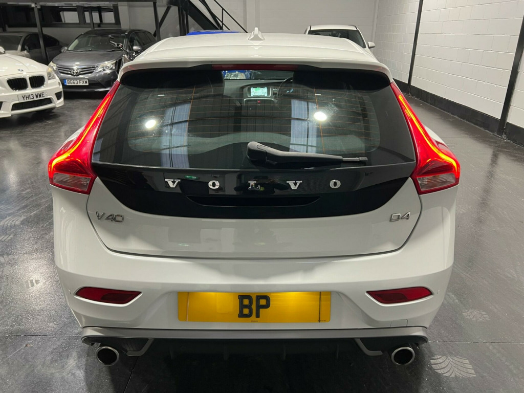 Here at BP Car Sales we have a stunning Volvo V40 2.0 D4 R-Design Lux Nav Hatchback 5dr Diesel Manual Euro 6 in a stunning WHITE comes with 3 KEYS , NAVIGATION SYSTEM , AIR CON , CRUISE CONTROL , FRONT AND REAR PARKING SENSORS , CLIMATE CONTROL , CLIMATE CONTROL , DAB RADIO , LEATHER INTERIOR , 17 INCH ALLOY WHEELS , FULL SERVICE HISTORY ,LONG MOT , FULLY VALETED , Zero Deposit Finance Available All Cars HPI Clear with Verified Mileage DELIVERY Service Available Back to base warranty, Reserve Any Car with a £100 Refundable Holding FEE Finance admin fee £300 , Free Complimentary Collection from Local Airport and Train Stations Available Card Payments Accepted Open 7 Days , LOCATED 1 MILE FROM THE M606 , APPOINTMENT BASED ONLY **PLEASE BOOK APPOINTMENT TO VIEW VEHICLE ** ont and rear park assist, 12v socket - front, 12v socket - rear, 17in alloy wheels - ixion matt black, 8in active tft crystal drivers instrument display, a-pillar parking ticket holder, abs - anti-lock brake system, access to a range of selected web apps and internet browser, adaptive brake lights, advanced stability control and torque vectoring, airbags - drivers dual stage, airbags - dual chamber sips, airbags - passenger dual stage, amplifier 45w x4, anti-theft alarm, armrest - front centre with storage, armrest - front/sliding, armrest - rear centre, bluetooth handsfree system, central locking - remote, charcoal headlining, chrome window trim, city safety, climate control - electronic, colour display screen - 7in, comfort pack, connected service booking, cruise control, cupholders - front, cupholders - rear, dab - digital audio broadcasting radio, dvd player, dashboard - charcoal, deadlock system, door mirrors - body coloured, door mirrors - power folding with ground lights, door mirrors - silver matt (r-design), door sill tread plates - front, driver knee airbag, dynamic chassis, dynamic stability control, eba - emergency brake assistance, electric windows - front and rear, european mapping, exhaust pipes - twin (r-design), floor mats - sports (r-design), forward folding front passenger seat, front footwell lighting, front reading - footwell and theatre lights, front reading lights, hard disk drive for music storage, headlight cleaning system, headlights - active bending, headlights - levelling system, headlights - tunnel sensor, headlights - xenon, height and reach adjustable steering column, high level led brake light, hill start assist, home safe and approach lighting, ic - inflatable curtains, idis - intelligent driver information system, isofix child seat preparation - rear, illuminated gear knob, immobiliser, information centre, led day running lights, level sensor, lifetime annual map updates, locking wheel nuts, multicolour theatre lighting, passenger airbag cut-off switch, pedestrian airbag technology, pollen filter, r-design aluminium trim, rds-tmc - traffic message channel, radio/cd, rain sensor, rear reading - theatre and front door side step illumination, roof spoiler, sips - side impact protection system, seats - drivers height adjustment with lumbar support, seats - drivers tiltable, seats - front height adjustment, seats - passenger height adjustment with lumbar support, sensus connect with high performance sound, sensus navigation, side marker illumination, speakers x8, speed limiter, speed sensitive steering, sports pedals - aluminium (r-design), steering wheel - leather/sports (r-design) with logo, steering wheel remote audio controls, traction control, tyre pressure monitoring system, tyre sealant kit and compressor, usb/ipod input, versatile split folding rear seats - 60-40, voice activated control, volume sensor, whips - whiplash protection system - front seats, warning triangle