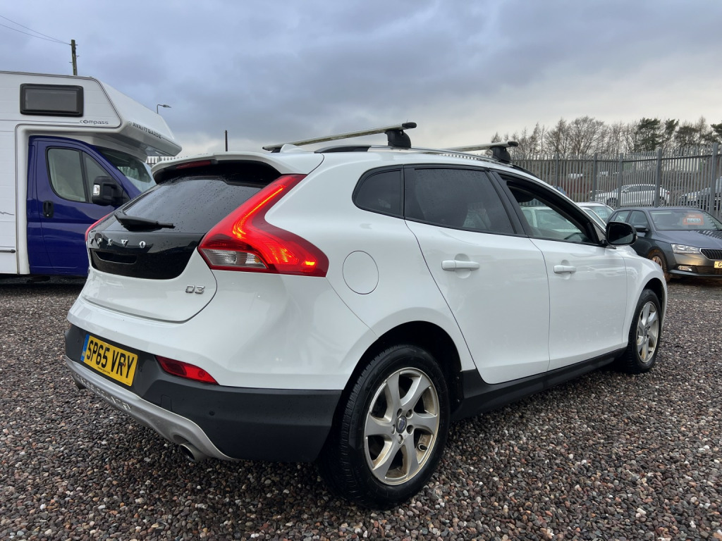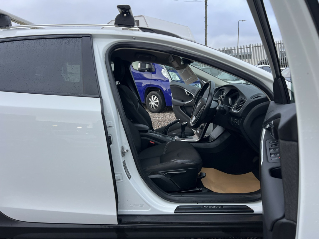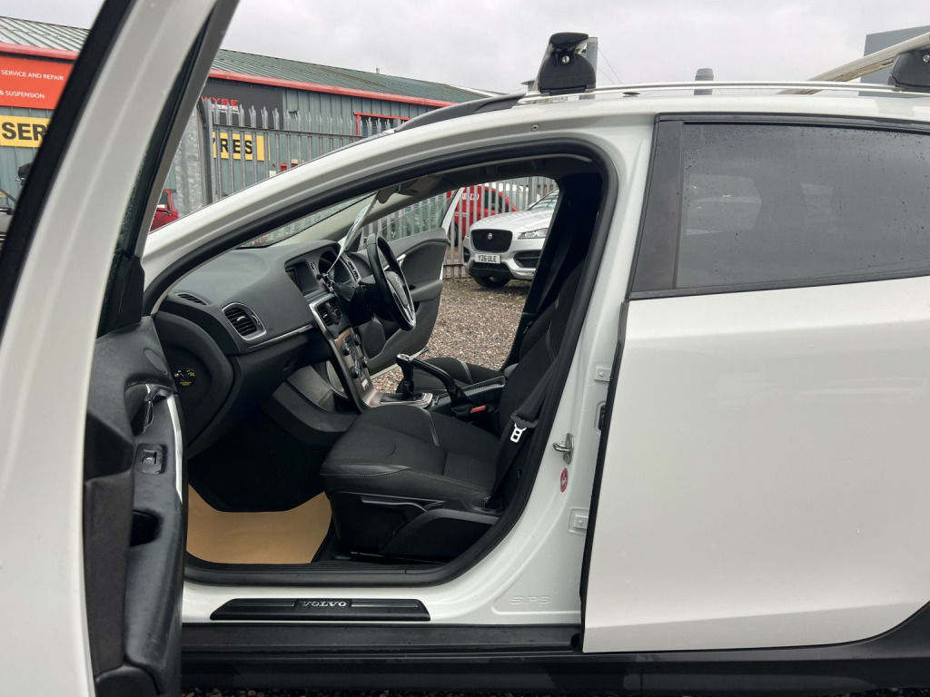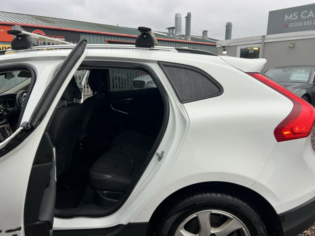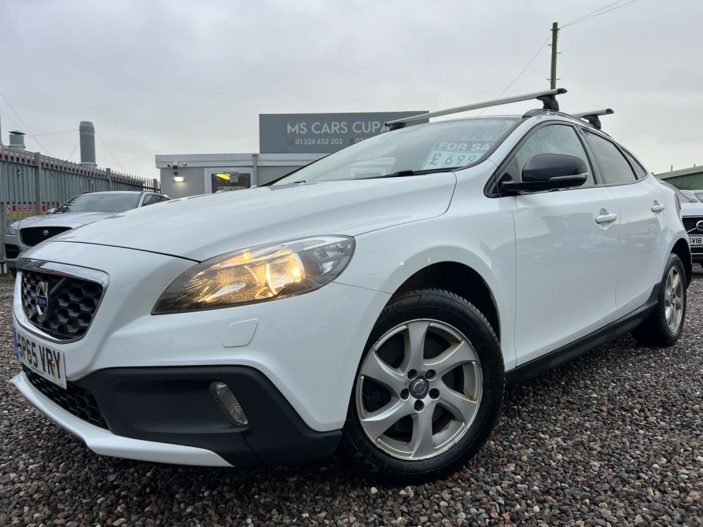????2015 65 VOLVO V40 2.0 DIESEL D3 [4 Cyl 150] Cross Country SE 5dr/GREAT EXAMPLE IN ALPINE WHITE WITH FULL SERVICE HISTORY AND 2 X KEYS/, 3rd brake light, Anti-lock Brake System (ABS), Electronic Stability Program (ESP), One touch indicator, Power assisted brakes, Tyre pressure monitor, Hands-free Bluetooth system, Telephone, Autopilot function,Check control system, Configurable dashboard display, Cruise control, Service interval indicator, Steering wheel audio controls, Steering wheel with cruise control operation, Tool kit, Travel data recorder, Trip computer, Power Assisted Steering, Rev counter, Start/Stop system, Traction control, Digital radio, Radio/CD, USB input, Body coloured bumpers, Rear boot, Daytime running lights, Door mirror indicators, Front fog lights, Air conditioning, Front head restraints, Front interior 12V power outlet, Rear headrests,heated seats/Steering wheel manually adjustable, Steering wheel rake adjustment, Steering wheel reach adjustment, Leather gear selector trim, Leather handbrake trim, Leather interior door trim, Leather steering wheel, Electric door mirrors, Metallic Paint, Rear parking sensor, 3x3 point rear seat belts, Active front head restraints, Drivers airbag, Isofix child seat anchor points, Manual child proof locks, Passenger airbag, Height adjustable drivers seat, Lumbar support, Alarm, Central locking, Immobiliser, Remote central locking, Cloth seat upholstery, Alloy wheels, Front electric windows, Rear wiper/only 80,000 miles f/s/h/comes with 12 month mot and full engine service/6 months warranty/finance available,delivery can be arranged/buy with confidence,read our 5 star reviews,ms car sales Cupar ky154rd/£6,850