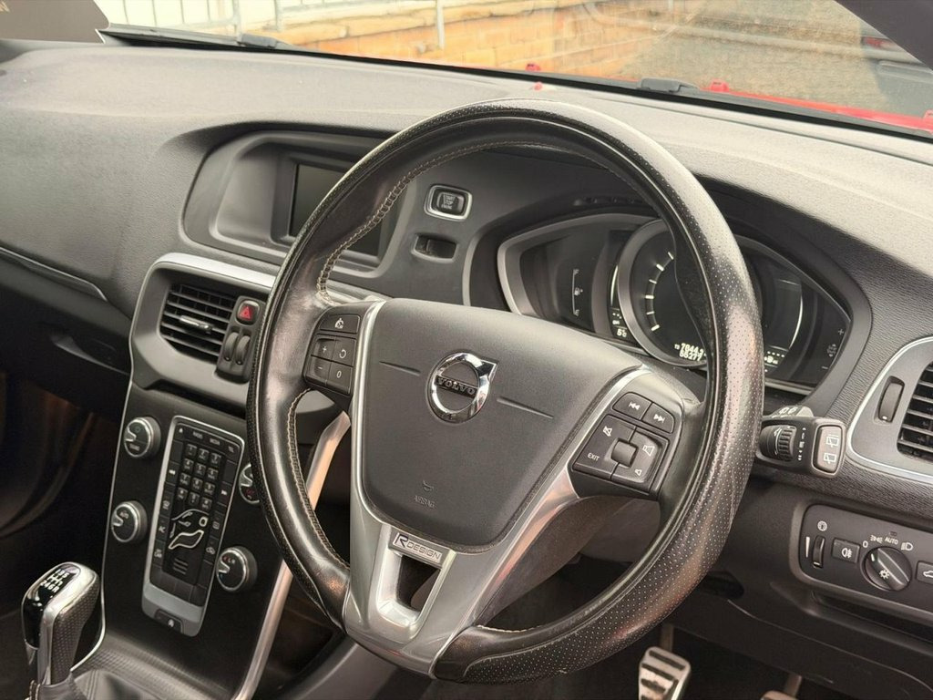 The Motor Store is extremely proud to present to the market this absolutely stunning, showroom condition Volvo V40 T2 R-Design + 1 Owner + FULL Volvo main dealer history. Last done only 3k miles ago. + 2 Keys + Showroom Condition + HPI clear + 7 stamped and documented Volvo main dealer services + Drives like a new car + 1 Lady owner + All original documents and owner's manuals present + Flawless example + Any inspection or test drive is welcome. First to see will buy! + Folding Mirrors + 17' diamond cut alloys + Adaptive Brake Lights including High Level LED Brake Light + LED Headlights incorporating Day Running Lights + DAB + Dynamic Chassis Talk to us about your various payment options and part exchange. 12V Socket - Front and Rear Tunnel Conso, 17in Alloy Wheels - Ixion III - Diamond , A-Pillar Parking Ticket Holder, ABS - Anti-Lock Brake System and EBA - E, Active TFT Crystal Drivers Information D, Adaptive Brake Lights including High Lev, Adjustable Front Centre Armrest, Anti-Theft Alarm including Immobiliser -, Autofolding Power Door Mirrors with Grou, Automatic Headlight Levelling System, Bluetooth Handsfree System, City Safety, DAB - Digital Audio Broadcasting Radio, DSTC - Dynamic Stability and Traction Co, Drivers Side Knee Airbag, Dual Stage Driver and Passenger Airbags, Dynamic Chassis, ECC - Electronic Climate Control includi, Floor Mats, Frameless Rear View Mirror, Front Centre A
