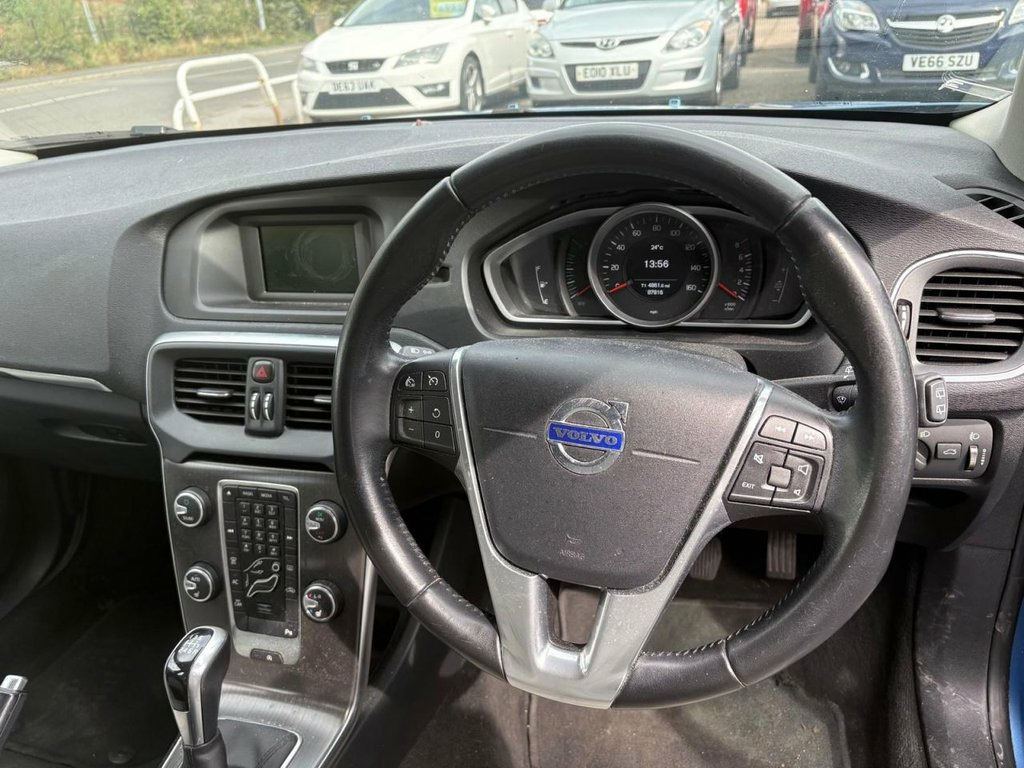 Volvo V40 T2 SE in metallic blue with service history. Comes with 16" alloy wheels, air conditioning, electric windows in the front and rear, electric mirrors, cruise control, full leather trim with heated seats, auto lights, rear privacy glass, heated front screen, stop/start engine, its a 6 speed, has bluetooth, a dab radio cd, usb port and a multifunction steering wheel. THE CAR WILL HAVE A SERVICE AND 12 MONTHS MOT / PART EXCHANGE IS ALWAYS WELCOME / FREE 12 MONTH AA ROADSIDE RECOVERY INCLUDED / FINANCE IS AVAILABLE VIA OUR WEBSITE LINK / THE CAR HAS BEEN HPI AND MILEAGE CHECKED, ALL OK / WE ARE A FAMILY RUN BUSINESS AND HAVE BEEN TRADING FOR OVER 30 YEARS, WE OFFER DELIVERY IN MAINLAND UK (Please ask for details), WE ARE HERE TO HELP YOU! PLEASE CONTACT US WITH ANY QUESTIONS 12V Socket - Front, 12V Socket - Rear, 16in Alloy Wheels - Matres, A-Pillar Parking Ticket Holder, ABS - Anti-Lock Brake System, Adaptive Brake Lights, Advanced Stability Control and Torque Ve, Airbags - Drivers Dual Stage, Airbags - Dual Chamber SIPS, Airbags - Passenger Dual Stage, Amplifier 45W x4, Anti-Theft Alarm, Armrest - Front Centre with Storage, Armrest - Rear Centre, Bluetooth Handsfree System, Central Locking - Remote, Chassis - Comfort, Chrome Window Trim, City Safety, Climate Control - Electronic, Colour Display Screen - 5in, Comfort Pack, Cruise Control, Cupholders - Front, Cupholders - Rear, DAB - Digital Audio Broadcasting Radio, Dashboard - Charcoal, Daytime Running Lights,