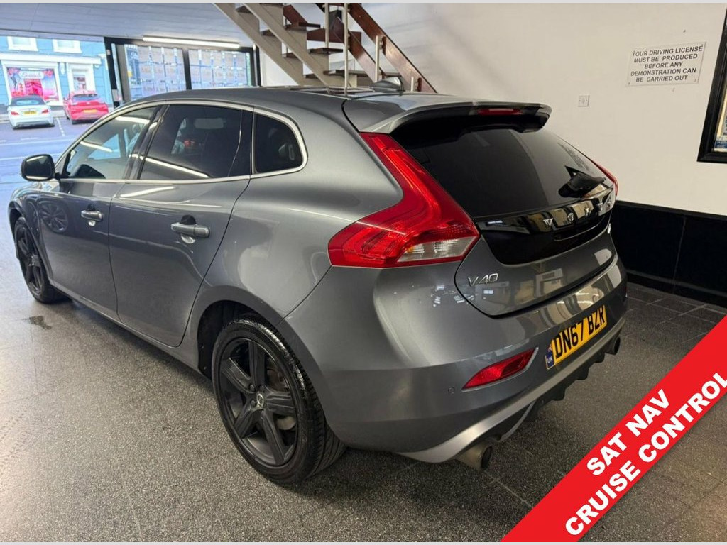 Two Private Owners. ULEZ Petrol powered, Serviced by Volvo and independents with 9 stamps in the book. Fitted with DAB/Bluetooth NAV & rear park assist, this 2017 V40 R-Design NAV + T3 5 Door is finished in Metallic Osmium Grey with Black part leather and suede seats. Its specification includes heated seats, Sun protection glass, power steering, remote locking, electric windows and folding electric mirrors, climate control, cruise control, speed limiter, heated windscreen, auto lights, LED daylights and headlights, headlamp wash, rear park assist, 17" alloy wheels, DAB/NAV/Bluetooth USB, CD, Aux port and more. It comes with a full service history consisting of stamps done at 2986/6097/11401/15113/17874/21183/24446 and 30226 miles. It has a July MOT. We will supply the car with 12 months Mot if necessary, a service if necessary and 6 months Insured RAC warranty along with roadside assist. Finance is available from 9.9% APR subject to status and extended warranties are available. This big specification V40 has sporty looks & is in exceptional condition throughout. It is ULEZ friendly. 12V Socket - Front and Rear Tunnel Conso, 17in Alloy Wheels - Ixion III - Diamond , A-Pillar Parking Ticket Holder, ABS - Anti-Lock Brake System and EBA - E, Active TFT Crystal Drivers Information D, Adaptive Brake Lights including High Lev, Adjustable Front Centre Armrest, Anti-Theft Alarm including Immobiliser -, Autofolding Power Door Mirrors with Grou, Automatic Headlight Levelling System, Bluetooth Handsfree System, City Safety, Cruise Control, DAB - Digital Audio Broadcasting Radio, Dark Tinted Windows - Rear Side Doors an, Drivers Side Knee Airbag, DSTC - Dynamic Stability and Traction Co, Dual Stage Driver and Passenger Airbags, ECC - Electronic Climate Control includi, Floor Mats, F
