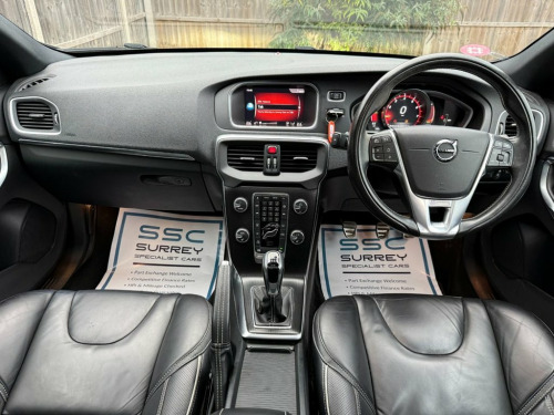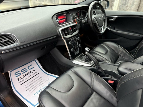 Surrey Specialist Cars are proud to present our lovely Volvo V40 R-Design Pro T3. This amazing car comes with Full Service History, finished in stunning metallic blue with full leather seats. The car has a MOT until February 2026 so it is ready to go. The 2L Petrol engine offers superb economy at over 49 MPG on combined cycle. Features Include Multifunction Steering Wheel, Satellite Navigation, Heated Seats, Panoramic Roof, Parking Camera, Trip Computer, Cruise Control, Speed Limiter, Stereo/Phone Control, FM/DAB Radio, CD Player, Bluetooth Audio, AUX Input, USB Input, Climate Control, Heated Rear Screen, 12V Charging Socket, two Cup Holders, 6 Speed Manual Gearbox, Electric Windows, 18 Inch Alloy Wheels and two Remote Control Keys to name a few. 12V Socket - Front and Rear Tunnel Conso, 18in Alloy Wheels - Ixion IV - Diamond C, A-Pillar Parking Ticket Holder, ABS - Anti-Lock Brake System and EBA - E, Active TFT Crystal Drivers Information D, Adaptive Brake Lights including High Lev, Adjustable Front Centre Armrest, Anti-Theft Alarm including Immobiliser -, Autofolding Power Door Mirrors with Grou, Automatic Headlight Levelling System, Bluetooth Handsfree System, City Safety, Cruise Control, DAB - Digital Audio Broadcasting Radio, DSTC - Dynamic Stability and Traction Co, Dark Tinted Windows - Rear Side Doors an, Drivers Side Knee Airbag, Dual Stage Driver and Passenger Airbags, ECC - Electronic Climate Control includi, Floor Mats, F