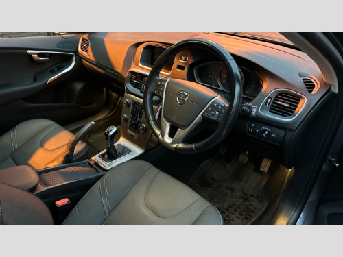 Volvo V40 D2 [120] Cross Country Nav Plus 5dr Intelligent driver information system (IDIS), Sensus navigation system, Service interval indicator, Speed limiter, Speed sensitive steering, Comfort chassis, Diesel particulate filter, DAB Digital radio, Steering wheel audio controls, Adaptive brake lights, Automatic folding door mirrors with ground lights, Body colour bumpers, Body colour door handles, Body styling kit, Dual exhaust pipes, Electrically adjustable and heated door mirrors, Front and rear electric windows, Front skid plate, Gloss black door mirrors, Headlamp levelling, Home safe and approach lighting, LED daytime running lights, LED Headlights, Rear diffuser, Rear wiper, Roof spoiler, Side Scuff Plates, Silver roof rails, 12V socket in front + rear tunnel console, 5 headrests, 60/40 split folding rear seat, Blond headlining, Door sill tread plates, Electronic climate control (ECC), Floor mats, Footwell lights, Front centre armrest, Front cupholders, Front reading lights, Front storage box, Height adjustable drivers seat with lumbar support, Height/reach adjustable steering column, Illuminated driver/passenger vanity mirrors, Isofix attachments on outer rear seats, Leather steering wheel with chrome inserts, Load cover, Lockable glovebox, Pollen filter, Rear armrest with cupholder, Theatre dimming interior lights, Ticket holder, WHIPS - Whiplash Protection System, 5 x 3 point seatbelts, ABS+EBA, City safety braking system, Drivers knee airbag, DSTC-Dynamic Stability and Traction Control, Dual stage driver's airbag, Dual stage passenger airbag, Front/rear seatbelt pre-tensioners, Hill start assist, Passenger airbag cut-off device, Side airbags, Side curtain airbags, Tyre pressure monitor, Warning triangle, Anti-theft alarm including immobiliser/volume sensor + level sensor, Deadlocking system, Key integrated remote control central locking, Locking wheel nuts