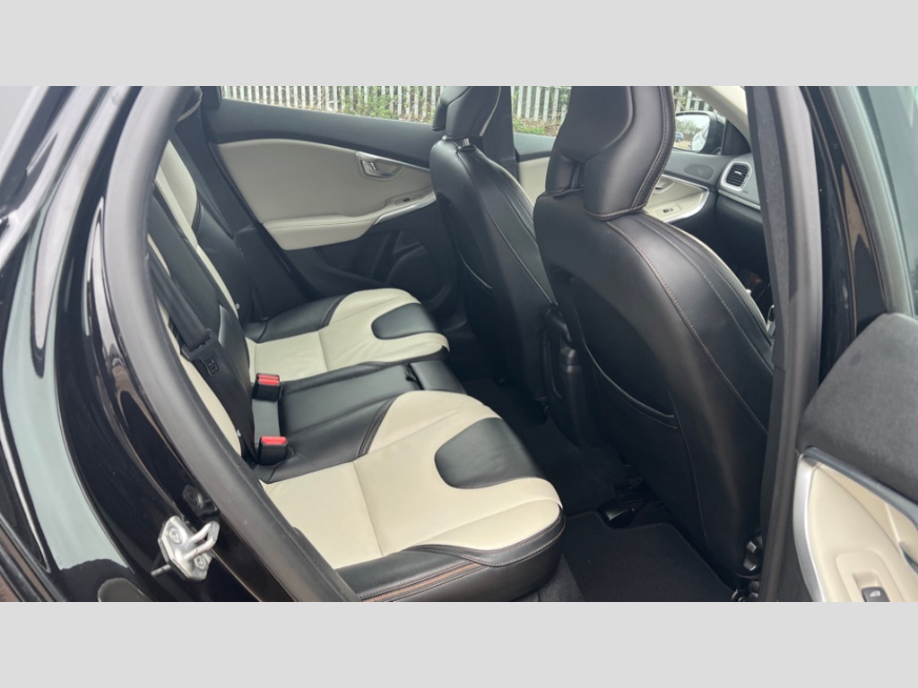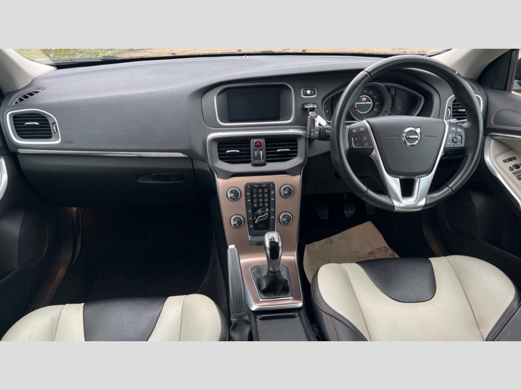 Volvo V40 D4 [190] Cross Country Nav Plus 5dr Bluetooth hands free telephone kit, Intelligent driver information system (IDIS), Sensus navigation system, Service interval indicator, Speed limiter, Speed sensitive steering, Diesel particulate filter, Dynamic chassis, DAB Digital radio, Steering wheel audio controls, Adaptive brake lights, Automatic folding door mirrors with ground lights, Body colour bumpers, Body colour door handles, Body styling kit, Dual exhaust pipes, Electrically adjustable and heated door mirrors, Front and rear electric windows, Front skid plate, Gloss black door mirrors, Headlamp levelling, Home safe and approach lighting, LED daytime running lights, LED Headlights, Rear diffuser, Rear wiper, Roof spoiler, Side Scuff Plates, Silver roof rails, 12V socket in front + rear tunnel console, 5 headrests, 60/40 split folding rear seat, Blond headlining, Electronic climate control (ECC), Floor mats, Footwell lights, Front centre armrest, Front cupholders, Front reading lights, Front storage box, Height adjustable drivers seat with lumbar support, Height/reach adjustable steering column, Illuminated driver/passenger vanity mirrors, Isofix attachments on outer rear seats, Leather steering wheel with chrome inserts, Load cover, Lockable glovebox, Pollen filter, Rear armrest with cupholder, Theatre dimming interior lights, Ticket holder, WHIPS - Whiplash Protection System, 5 x 3 point seatbelts, ABS+EBA, City safety braking system, Drivers knee airbag, DSTC-Dynamic Stability and Traction Control, Dual stage driver's airbag, Dual stage passenger airbag, Front/rear seatbelt pre-tensioners, Hill start assist, Passenger airbag cut-off device, Side airbags, Side curtain airbags, Tyre pressure monitor, Warning triangle, Anti-theft alarm including immobiliser/volume sensor + level sensor, Deadlocking system, Key integrated remote control central locking, Locking wheel nuts