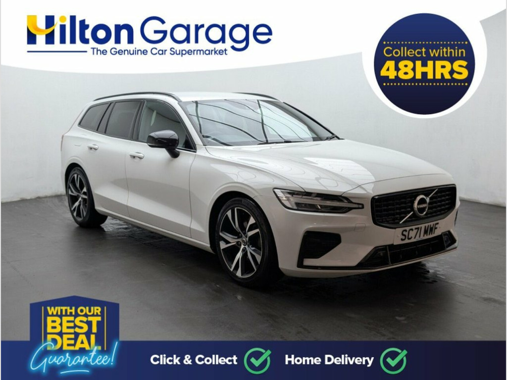 18" alloys, Bluetooth, Cruise control, Rear park assist camera and Hill start assist. 4 services - last service done at 40599 miles on 24/10/2025. This 2021 Volvo V60 B3 R Design is a superb example, having been owned by just one person from new. This estate car boasts a 2.0 litre petrol hybrid engine, meeting Euro 6 emissions standards, and comes in the desirable R Design trim. It offers a smooth and responsive drive, reaching 0-60mph in 8.7 seconds. The V60 R Design is equipped with a host of features designed for comfort and convenience. The Climate Pack ensures warmth with heated seats and a heated steering wheel, complemented by 2 zone electronic climate control and a CleanZone air quality system. Parking is made easier with a rear park assist camera and front and rear park assist sensors. Keyless drive allows for effortless entry and starting, and you will appreciate the generous boot space for all your needs. 12.3in Active TFT Crystal Drivers Inform, 12V Socket - Cargo Area, 12V Socket - Front Tunnel Console, 18in Alloy Wheels - 5 Double Spoke Diamo, 2-Zone Electronic Climate Control with C, 9in Centre Console Touch Screen, A-Pillar Parking Ticket Holder, Adaptive Brake Lights including High Lev, Adjustable Steering Force, Anti-Theft Alarm including Immobiliser -, Auto Dimming Interior Mirror, Automatic Headlight Levelling System, Automatic LED Headlights with Active Hig, B-Pillar Ventilation, Bluetooth Handsfree System, Bright Metal Luggage Compartment Thresho, Care Key, Cargo Load Hooks, Centre Console Cupholders, Charcoal Headlining, City Safety with Steering Support, Climate Pack, Colour Co-O