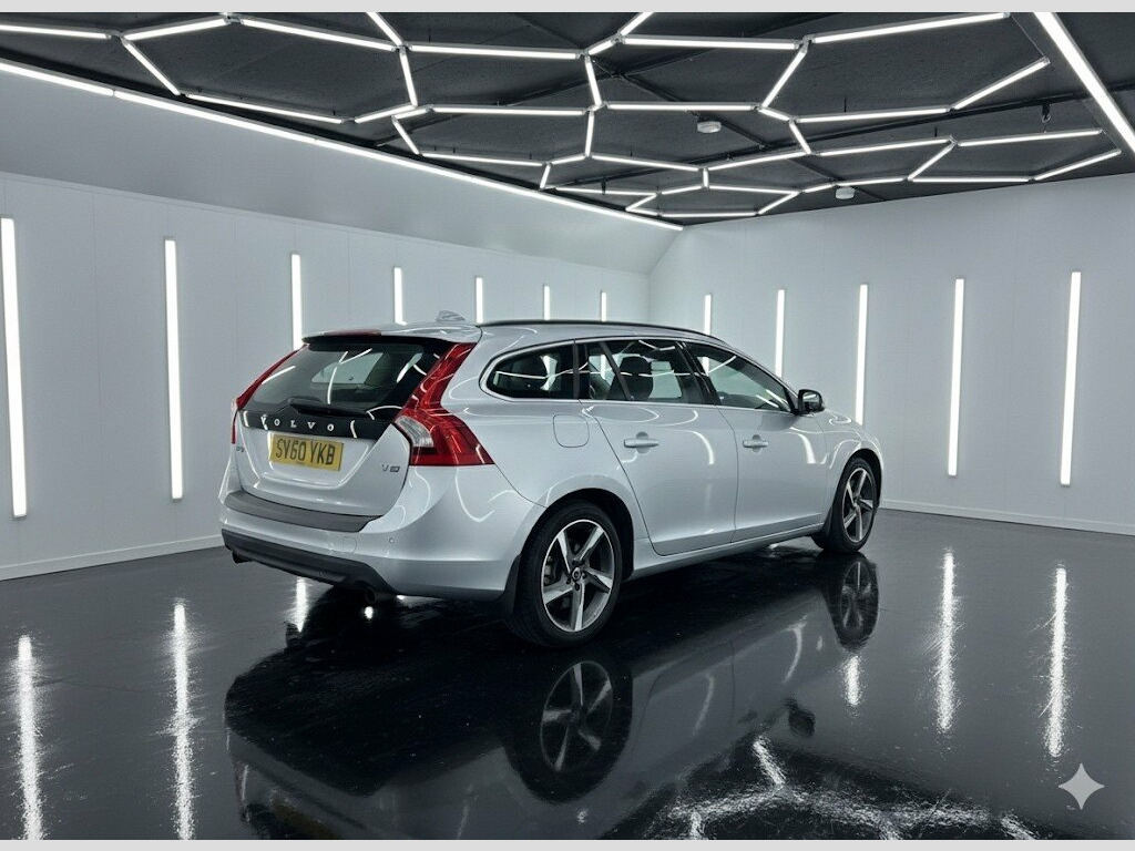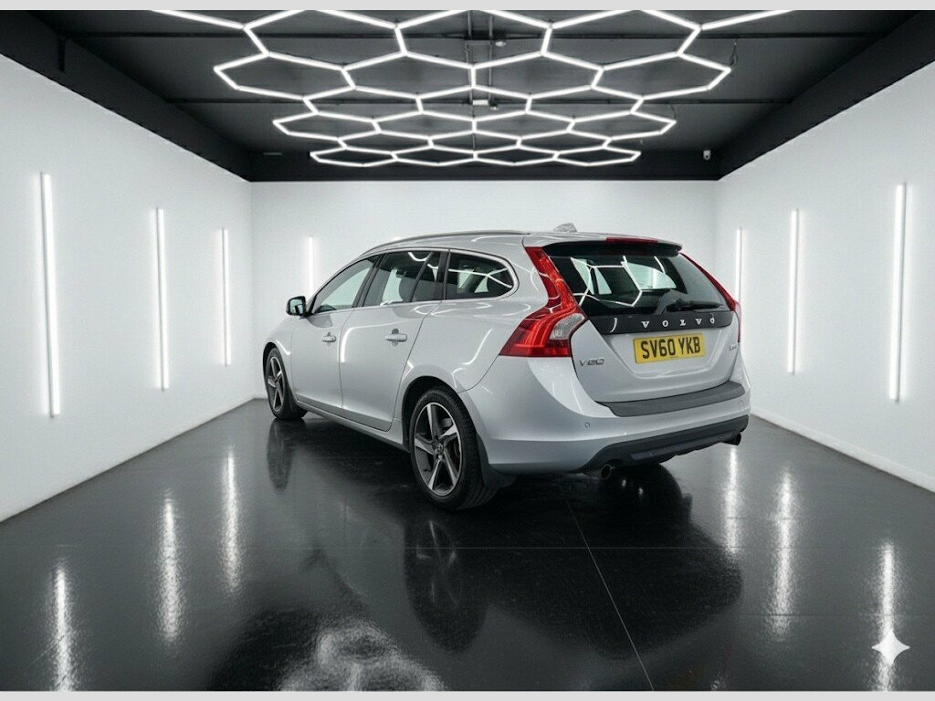 October 2010 Volvo V60 2.0 D3 SE Estate Manual finished in gleaming metallic silver with dark cloth trim. This example has covered just 135k miles from new with 8 services 6 of which being Volvo main dealers. The car has had 2 owners from new. Road tax costs just £215 for 12 months and the car returns a steady and economically pleasing 50mpg urban, 54mpg extra-urban and 52mpg combined. The car is insurance group 30E. The Volvo is a fantastic all rounder estate car that offers performance and reliability, This generation V60 is also very aesthetically pleasing. The car has a fantastic specification which includes power steering, remote central locking, alloy wheels, heated front seats, air conditioning, on board trip computer, parking sensors, climate control, cruise control, multi function steering wheel, rear wiper, parcel shelf, MyVolvo interface, 4 electric windows, electric door mirrors with power fold, ISOFIX. fully loaded family estate car Silver, Savile Grey, Family Pack, Heated Front Seats, Driver Support Pack, CZIP - Clean Zone Interior Package, 17in Alloy Wheels - Njord Silver Bright, 12v Socket - Front and Rear Tunnel Conso, 17in Alloy Wheels - Balder Silver Stone, 5 Three Point Seat Belts, A-Pillar Parking Ticket Holder, ABS - Anti-Lock Brake System, Adaptive Brake Lights, Air Quality System, Airbags - Drivers Dual Stage, Airbags - Dual Chamber SIPS, Airbags - Passenger Dual Stage, Anti-Theft Alarm including Immobiliser -, Armrest - Front and Rear Centre with Cup, Auto Dimming Rear View Mirror, Autofolding Power Door Mirrors with Grou, B-Pillar Ventilation, Bluetooth Handsfree System, Chrome Mannequin on Centre Console,