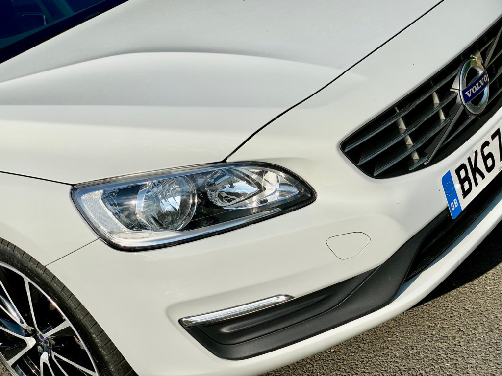 **SOLD to James: Thank you** Euro6 ULEZ LEZ. 1 OWNER with FULL VOLVO MAIN AGENT SERVICE HISTORY [x4] with most recent main dealer service @ 68k with NEW MOT on collection plus x3mths [extendable] CrystalClear nationwide parts/labour/recovery cover inc. Stunning throughout in Ice White featuring VERY RARE 19in Portia [Polestar style] factory option alloys [costing c2k extra & transforming the cars look!]. Interior features: Black Leather seats, Adjustable Multi-Function Steering Wheel & Fitted carpet Mats. NEVER towed or carried animals. Non smoking owner. Volvos VEA 4cyl 190BHP turbo-diesel offers remarkable performance/economy: EURO 6 ULEZ & LEZ compliant. All handbooks, Service Book/ & x2keys. Rare factory option spare wheel jack & tools! Spec inc: Sensus Multimedia Pack with Sat Nav, Bluetooth, Music Streaming, DAB/CD/RDS/USB/AUX, Cruise Control/Speed Limiter, Climate Control/Air Con, Auto wipers & h/lamps, x4 electric windows, Child locks, Isofix, Electric/heated power folding door mirrors, Remote locking with VOLVO security. LED DRLs, City Safety, Start/Stop. FOR FURTHER INFORMATION CALL ANTHONY ON: 07968 409091. Viewing by appointment only. ** P/X, Finance & Warranties available