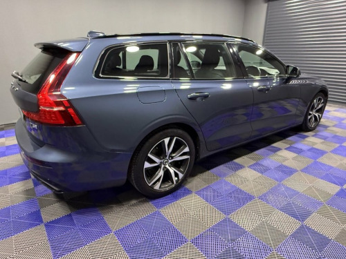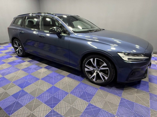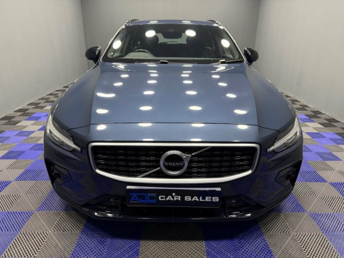 AJC Car sales presents the VOLVO V60 2.0 T5 R-Design Plus Estate 5dr Petrol Auto Euro 6 (s/s) (250 ps) finished off in the rare Denim Blue with 18" Diamond Cut Alloy Wheels, Two Keys and a Great Service Record. The 2019 Volvo V60 T5 R-Design Plus combines Scandinavian craftsmanship with dynamic performance, delivering a premium estate car that excels in both style and substance. Powered by a refined 2.0-litre turbocharged petrol engine producing 250 PS, this Euro 6-compliant model offers smooth, responsive acceleration paired with Volvo's renowned 8-speed automatic transmission. Finished with the sporty R-Design Plus specification, this V60 features an enhanced exterior with distinctive gloss-black accents, sculpted bodywork, and signature LED headlights. Inside, the cabin showcases Volvo's minimalist luxury, offering supportive R-Design sports seats, high-quality materials, and an intuitive Sensus infotainment system with navigation and smartphone integration. Practicality remains at the heart of the V60, with a spacious and versatile estate boot, advanced safety systems, and a comfortable ride suitable for both long journeys and everyday driving. Additional R-Design Plus upgrades, such as premium audio, adaptive features, and comfort enhancements, further elevate the driving experience. Impeccably engineered, stylish, and practical, this 2019 Volvo V60 T5 R-Design Plus is an ideal choice for those seeking a refined and sporty premium estate with excellent per 12V Socket - Cargo Area, 12V Socket - Front and Rear Tunnel Conso, 9in Centre Console Touch Screen, Bluetooth Handsfree System, DAB - Digital Audio Broadcasting Radio, P-SIM Card - Access to 1 Year - 100GB of, Roof Antenna, Sensus Connect with High Performance Sou, Sensus Navigation, Volvo On Call with App, 18in Alloy Wheels - 5 Double Spoke Diamo, Colour Co-Ordinated Autofolding Heated P, Dark Tinted Windows - Rear Side Doors an, Dual Integrated Exhaust Pipes with High , Front and Rear Power Windows, High Gloss Black Door Mirrors and Window, High Gloss Black Mesh Front Grille with , Locking Wheel Nuts, Roof Rails - Integrated High Gloss Black, Roof Spoiler, Tyre Sealant Kit and Compressor,