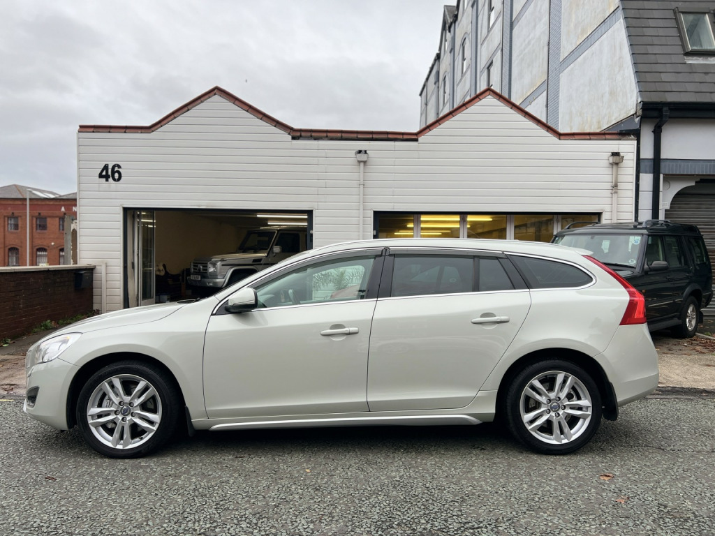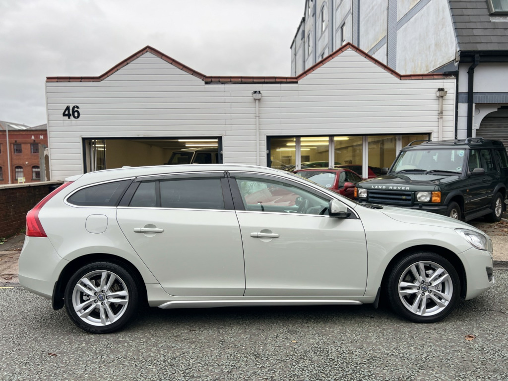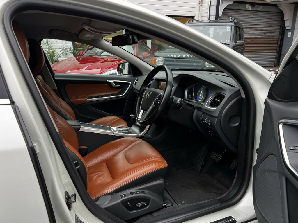 This gorgeous Volvo V60 T6 is a real head turner with its Cosmic white metallic paintwork and tan leather upholstery. The silky smooth 3.0 6 cylinder turbo engine has over 300 BHP coupled with all wheel drive making this a fast, safe, understated family car. It has a great spec with keyless entry and start, xenon headlights, electric memory drivers seat, reversing camera, privacy glass, heated front seats, multi function leather steering wheel, LED running lights, 17 inch alloy wheels, rear parking sensors and climate control. , The car is complete with two keys, all books and manuals and puncture repair kit (there is space for a spare wheel if required). There is a full service history with records from Japan at 7k, 12k, 19k, 28k, 37k, 52k, 55k, 60k, 67k, 71k and then in the UK at 77k, 81k and 84k. Since 2023 it has had 4 new tyres, new discs and pads all around, Haldex service, gearbox service, diff service and all filters and fluids changed. An exceptional example that is a credit to its previous owner.