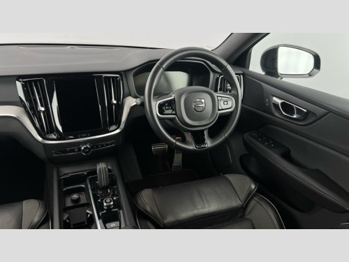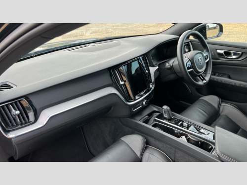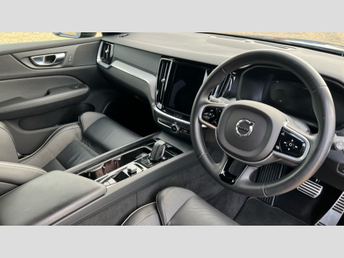 Volvo V60 2.0 B3P R DESIGN 5dr Auto 12.3" Active TFT crystal driver's instrument display, 9" centre console touch screen, Adjustable steering wheel force, Bluetooth handsfree system, Drive mode settings, Driver alert control with lane keeping aid, E-call, Front and rear park assist, Information centre, Oncoming Lane Mitigation, Sensus navigation with European mapping and traffic information, Service interval indicator, Speed limiter, Speed sensitive steering, Trip computer, Voice activated control for key functions, Volvo on call app, 8 speed automatic transmission with start/stop + manual change functions, Lowered sports chassis, DAB Digital radio, Adaptive brake lights with high level LED brake lights, Auto dimming interior mirror, Automatic headlight levelling system, Automatic LED Headlights + Active high beam incorporating daytime running lights, Body colour bumpers, Colour coordinated auto folding and heated power door mirrors, Dark tinted windows for rear side windows and cargo area, Dual integrated exhaust pipes with high gloss black surround, High gloss black door mirrors and window surround, High gloss black mesh front grille with high gloss black surround, Home safe and approach lighting, Integrated roof rails in high gloss black, Power front and rear windows, Rain sensor with automatic windscreen wiper activation, Rear side wing doors, Rear wiper, Roof antenna, Roof spoiler, Visible VIN plate, 12V socket in front + tunnel console and cargo area, 3 seat bench in 2nd row, A-pillar parking ticket holder, B Pillar ventilation, Bright metal luggage compartment threshold, Cargo load hooks, Centre console cupholders, Charcoal headlining, Contour sports seats with nappa leather/textile upholstery, Extended front seat cushions, Floor mats, Front footwell illumination, Front head restraints, Front reading lights + Theatre lighting and centre armrest storage illumination, Front/rear door pockets and front cupholder illumination, Glovebox compartment with illumination, Heated front seats, Height/reach adjustable steering column, High gloss black steering wheel remote infotainment controls, Illuminated vanity mirrors + ticket holder, ISOFIX attachment on outer rear seats, Load cover, Load protection net, Luggage compartment illumination, Multi directional lumbar support, Multicolour theatre lighting and puddle lights, Rear armrest with storage + cupholders, Rear footwell and side step illumination, Single front passenger seat, Sport leather gear knob, Sports pedals, Tailgate illumination and ambient door lighting, Tailored sports steering wheel, Underfloor cargo storage, Versatile split folding rear seat - 60/40, WHIPS - Whiplash Protection System, 5 x 3 point seatbelts, City safety with steering support with Pedestrian + cyclist + large animal detection + front collision warning with full auto brake, Dual stage driver/passenger airbags, First aid kit, Hill start assist, IC (Inflatable Curtains) - Full Length, Passenger airbag cut-off switch, Power parking brake with auto hold function, Road sign information display, Run off Road Mitigation, Run off Road Protection, Seatbelt reminder and pretensioners for all seats, SIPS (Side Impact Protection System), SIPS airbags, Slippery road and hazard light alert, Stability and Traction Control with Spin control, Engine Drag Control and Corner Traction Control, Tyre pressure monitoring system, Vehicle deceleration control with Anti-lock Brake System, Electronic Brake Distribution and Emergency Brake Assist, Warning triangle, Anti-theft alarm including immobiliser/volume sensor + level sensor, Care key with user defined top speed, Key integrated remote control central locking + fuel flap with deadlocking system and auto open/close power windows, Keyless drive (incudes keyless entry and start) with remote tag and handsfree tailgate open/close, Locking wheel nuts, Private locking for tailgate, Metal mesh inlays