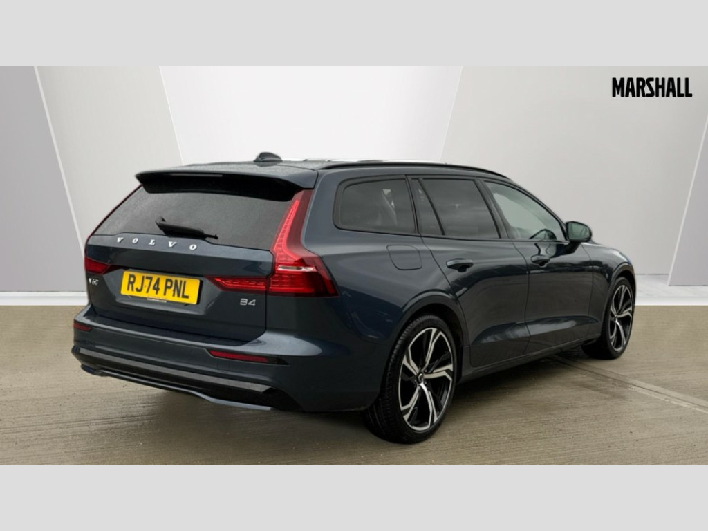 Volvo V60 2.0 B4P Plus Dark 5dr Auto [7 speed] 12.3" Progressive Driver Display, 9" centre console touch screen, Adjustable steering wheel force, Android Auto, Apple CarPlay, Bluetooth handsfree system, Cruise control, Driver alert control with lane keeping aid, Driver awareness - Blind spot information system with steer assist, cross traffic alert with autobrake and rear collision warning and mitigation, E-call, Front and rear park assist, Google automotive services - Enabled entertainment apps, navigation with google maps, voice recognition with google assistant, Information centre, Intelligent speed assistance, Oncoming Lane Mitigation, Power operated tailgate with handsfree opening and closing, Service interval indicator, Speed sensitive steering, Trip computer, Volvo cars services with app, Volvo on call app, Wireless/Inductive Mobile Phone Charging, Automatic transmission with start/stop and manual change functions, Dynamic chassis, DAB Digital radio, High performance sound, 2 x front and rear Type C USB,10 speakers/220W output, Steering wheel remote infotainment controls, Adaptive brake lights with high level LED brake lights, Auto dimming interior + exterior mirrors, Automatic headlight levelling system, Automatic LED Headlights + Active high beam incorporating daytime running lights, Front aluminium tread plates, Front and rear power windows, Heated front windscreen, High gloss black autofolding heated power door mirrors, High gloss black front and rear bumper deco, High gloss black mesh front grille with high gloss black surround, High gloss black window surround, Home safe and approach lighting, Integrated roof rails in high gloss black, LED front fog lights, Puddle lights, Rain sensor with automatic windscreen wiper activation, Rear side wing doors, Rear wiper, Roof antenna, Roof spoiler, Variable front intermittent wipers, Visible VIN plate, 12V socket in front tunnel console and luggage compartment, 3 Spoke tailored steering wheel with chrome trim, 4 zone electronic climate control with Clean zone air quality system + pollen filter, 60/40 versatile split folding 3 bench rear seats in 2nd row, A-pillar parking ticket holder, Air purifier PM2.5, B Pillar ventilation, Bright metal luggage scuff plate, Centre console storage, Charcoal carpets and floor mats, Extended front seat cushions, Front and rear courtesy and front reading lights, Front cupholders, Front footwell illumination, Front head restraints, Front/rear door pockets and front cupholder illumination, Glovebox compartment with illumination, Heated front seats, Heated rear seats outer positions, Heated steering wheel, Height/reach adjustable steering column, Illuminated vanity mirrors + ticket holder, ISOFIX attachment on outer rear seats, Load cover, Load protection net, Luggage compartment divider with grocery bag holder, Luggage compartment illumination, Luggage compartment load hooks, Multi directional lumbar support, Power driver seat with memory + exterior mirrors memory, Power folding rear headrests, Power height adjustable passenger seat, Rear armrest with cupholder, Rear footwell and front and rear side step illumination, Rear reading lights, Single front passenger seat, Tailgate illumination, Underfloor cargo storage, 5 x 3 point seatbelts, City safety with steering support with Pedestrian + cyclist + front collision warning with full auto brake and rear auto brake, Driver and passenger airbags, First aid kit, Front seats SIPS airbags, Hill start assist, IC (Inflatable Curtains) - Full Length, Passenger airbag cut-off switch, Power child locks on rear doors, Power parking brake with auto hold function, Road sign information display, Run off Road Mitigation, Run off Road Protection, Seatbelt reminder and pretensioners for all seats, SIPS (Side Impact Protection System), Slippery road and hazard light alert, Stability and Traction Control with Spin control, Engine Drag Control and Corner Traction Control, Tyre pressure monitoring system, Vehicle deceleration control with Anti-lock Brake System, Electronic Brake Distribution and Emergency Brake Assist, Warning triangle, WHIPS whiplash protection system - front, 2X Key integrated remote control central locking with deadlocking system and auto open/close power windows, Anti-theft alarm including immobiliser/volume sensor + level sensor, Care key with user defined top speed, Keyless drive includes keyless entry and keyless start, Locking wheel nuts, Private locking luggage compartment, 19" 5 Triple spoke diamond cut/black alloy wheels