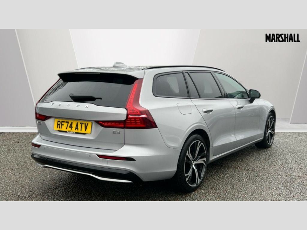Volvo V60 2.0 B4P Plus Dark 5dr Auto [7 speed] 12.3" Progressive Driver Display, 9" centre console touch screen, Adjustable steering wheel force, Android Auto, Apple CarPlay, Bluetooth handsfree system, Cruise control, Driver alert control with lane keeping aid, Driver awareness - Blind spot information system with steer assist, cross traffic alert with autobrake and rear collision warning and mitigation, E-call, Front and rear park assist, Google automotive services - Enabled entertainment apps, navigation with google maps, voice recognition with google assistant, Information centre, Intelligent speed assistance, Oncoming Lane Mitigation, Power operated tailgate with handsfree opening and closing, Service interval indicator, Speed sensitive steering, Trip computer, Volvo cars services with app, Volvo on call app, Wireless/Inductive Mobile Phone Charging, Automatic transmission with start/stop and manual change functions, Dynamic chassis, DAB Digital radio, High performance sound, 2 x front and rear Type C USB,10 speakers/220W output, Steering wheel remote infotainment controls, Adaptive brake lights with high level LED brake lights, Auto dimming interior + exterior mirrors, Automatic headlight levelling system, Automatic LED Headlights + Active high beam incorporating daytime running lights, Front aluminium tread plates, Front and rear power windows, Heated front windscreen, High gloss black autofolding heated power door mirrors, High gloss black front and rear bumper deco, High gloss black mesh front grille with high gloss black surround, High gloss black window surround, Home safe and approach lighting, Integrated roof rails in high gloss black, LED front fog lights, Puddle lights, Rain sensor with automatic windscreen wiper activation, Rear side wing doors, Rear wiper, Roof antenna, Roof spoiler, Variable front intermittent wipers, Visible VIN plate, 12V socket in front tunnel console and luggage compartment, 3 Spoke tailored steering wheel with chrome trim, 4 zone electronic climate control with Clean zone air quality system + pollen filter, 60/40 versatile split folding 3 bench rear seats in 2nd row, A-pillar parking ticket holder, Air purifier PM2.5, B Pillar ventilation, Bright metal luggage scuff plate, Centre console storage, Charcoal carpets and floor mats, Extended front seat cushions, Front and rear courtesy and front reading lights, Front cupholders, Front footwell illumination, Front head restraints, Front/rear door pockets and front cupholder illumination, Glovebox compartment with illumination, Heated front seats, Heated rear seats outer positions, Heated steering wheel, Height/reach adjustable steering column, Illuminated vanity mirrors + ticket holder, ISOFIX attachment on outer rear seats, Load cover, Load protection net, Luggage compartment divider with grocery bag holder, Luggage compartment illumination, Luggage compartment load hooks, Multi directional lumbar support, Power driver seat with memory + exterior mirrors memory, Power folding rear headrests, Power height adjustable passenger seat, Rear armrest with cupholder, Rear footwell and front and rear side step illumination, Rear reading lights, Single front passenger seat, Tailgate illumination, Underfloor cargo storage, 5 x 3 point seatbelts, City safety with steering support with Pedestrian + cyclist + front collision warning with full auto brake and rear auto brake, Driver and passenger airbags, First aid kit, Front seats SIPS airbags, Hill start assist, IC (Inflatable Curtains) - Full Length, Passenger airbag cut-off switch, Power child locks on rear doors, Power parking brake with auto hold function, Road sign information display, Run off Road Mitigation, Run off Road Protection, Seatbelt reminder and pretensioners for all seats, SIPS (Side Impact Protection System), Slippery road and hazard light alert, Stability and Traction Control with Spin control, Engine Drag Control and Corner Traction Control, Tyre pressure monitoring system, Vehicle deceleration control with Anti-lock Brake System, Electronic Brake Distribution and Emergency Brake Assist, Warning triangle, WHIPS whiplash protection system - front, 2X Key integrated remote control central locking with deadlocking system and auto open/close power windows, Anti-theft alarm including immobiliser/volume sensor + level sensor, Care key with user defined top speed, Keyless drive includes keyless entry and keyless start, Locking wheel nuts, Private locking luggage compartment, 19" 5 Triple spoke diamond cut/black alloy wheels