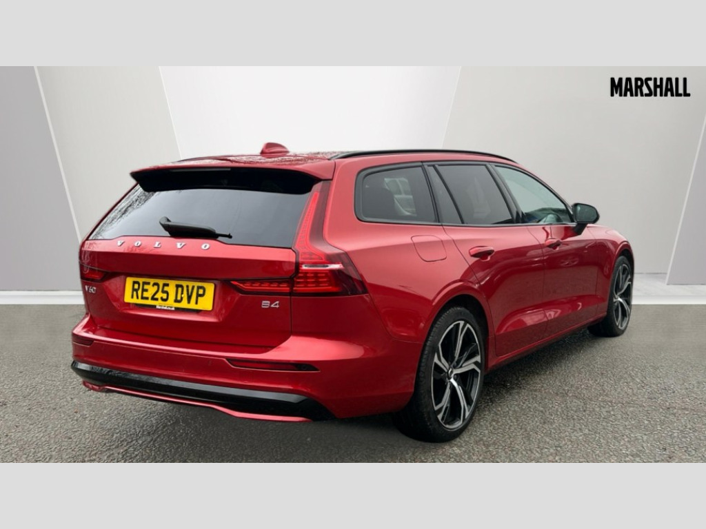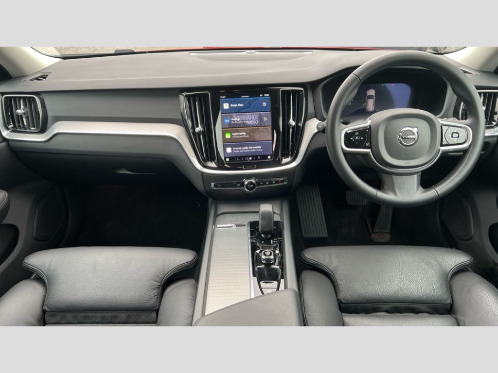 Volvo V60 2.0 B4P Plus Dark 5dr Auto [7 speed] 12.3" Progressive Driver Display, 9" centre console touch screen, Adaptive cruise control, Adjustable steering wheel force, Android Auto, Apple CarPlay, Bluetooth handsfree system, Driver alert control with lane keeping aid, Driver awareness - Blind spot information system with steer assist, cross traffic alert with autobrake and rear collision warning and mitigation, E-call, Front and rear park assist, Google automotive services - Enabled entertainment apps, navigation with google maps, voice recognition with google assistant, Information centre, Intelligent speed assistance, Oncoming Lane Mitigation, Power operated tailgate with handsfree opening and closing, Service interval indicator, Speed sensitive steering, Trip computer, Volvo cars services with app, Volvo on call app, Wireless/Inductive Mobile Phone Charging, Automatic transmission with start/stop and manual change functions, Dynamic chassis, DAB Digital radio, High performance sound, 2 x front and rear Type C USB,10 speakers/220W output, Steering wheel remote infotainment controls, Adaptive brake lights with high level LED brake lights, Auto dimming interior + exterior mirrors, Automatic headlight levelling system, Automatic LED Headlights + Active high beam incorporating daytime running lights, Front aluminium tread plates, Front and rear power windows, Heated front windscreen, High gloss black autofolding heated power door mirrors, High gloss black front and rear bumper deco, High gloss black mesh front grille with high gloss black surround, High gloss black window surround, Home safe and approach lighting, Integrated roof rails in high gloss black, LED front fog lights, Puddle lights, Rain sensor with automatic windscreen wiper activation, Rear side wing doors, Rear wiper, Roof antenna, Roof spoiler, Variable front intermittent wipers, Visible VIN plate, 12V socket in front tunnel console and luggage compartment, 3 Spoke tailored steering wheel with chrome trim, 4 zone electronic climate control with Clean zone air quality system + pollen filter, 60/40 versatile split folding 3 bench rear seats in 2nd row, A-pillar parking ticket holder, Air purifier PM2.5, B Pillar ventilation, Bright metal luggage scuff plate, Centre console storage, Charcoal carpets and floor mats, Extended front seat cushions, Front and rear courtesy and front reading lights, Front cupholders, Front footwell illumination, Front head restraints, Front/rear door pockets and front cupholder illumination, Glovebox compartment with illumination, Heated front seats, Heated rear seats outer positions, Heated steering wheel, Height/reach adjustable steering column, Illuminated vanity mirrors + ticket holder, ISOFIX attachment on outer rear seats, Load cover, Load protection net, Luggage compartment divider with grocery bag holder, Luggage compartment illumination, Luggage compartment load hooks, Multi directional lumbar support, Power driver seat with memory + exterior mirrors memory, Power folding rear headrests, Power height adjustable passenger seat, Rear armrest with cupholder, Rear footwell and front and rear side step illumination, Rear reading lights, Single front passenger seat, Tailgate illumination, Underfloor cargo storage, 5 x 3 point seatbelts, City safety with steering support with Pedestrian + cyclist + front collision warning with full auto brake and rear auto brake, Driver and passenger airbags, First aid kit, Front seats SIPS airbags, Hill start assist, IC (Inflatable Curtains) - Full Length, Passenger airbag cut-off switch, Power child locks on rear doors, Power parking brake with auto hold function, Road sign information display, Run off Road Mitigation, Run off Road Protection, Seatbelt reminder and pretensioners for all seats, SIPS (Side Impact Protection System), Slippery road and hazard light alert, Stability and Traction Control with Spin control, Engine Drag Control and Corner Traction Control, Tyre pressure monitoring system, Vehicle deceleration control with Anti-lock Brake System, Electronic Brake Distribution and Emergency Brake Assist, Warning triangle, WHIPS whiplash protection system - front, 2X Key integrated remote control central locking with deadlocking system and auto open/close power windows, Anti-theft alarm including immobiliser/volume sensor + level sensor, Care key with user defined top speed, Keyless drive includes keyless entry and keyless start, Locking wheel nuts, Private locking luggage compartment, 19" 5 Triple spoke diamond cut/black alloy wheels