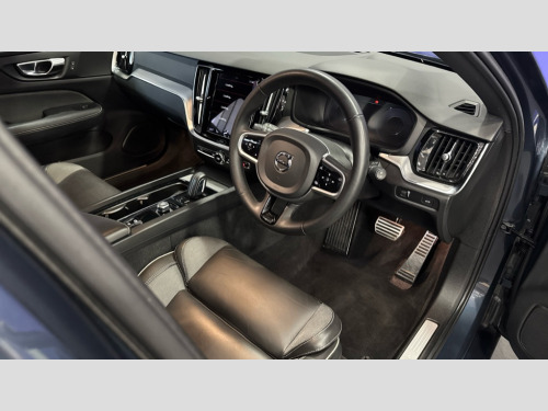 Volvo V60 2.0 B4P R DESIGN 5dr Auto [7 speed] 12.3" Active TFT crystal driver's instrument display, 9" centre console touch screen, Adjustable steering wheel force, Bluetooth handsfree system, Drive mode settings, Driver alert control with lane keeping aid, E-call, Front and rear park assist, Information centre, Oncoming Lane Mitigation, Sensus navigation with European mapping and traffic information, Service interval indicator, Speed limiter, Speed sensitive steering, Trip computer, Voice activated control for key functions, Volvo on call app, Lowered sports chassis, DAB Digital radio, Adaptive brake lights with high level LED brake lights, Auto dimming interior mirror, Automatic headlight levelling system, Automatic LED Headlights + Active high beam incorporating daytime running lights, Body colour bumpers, Colour coordinated auto folding and heated power door mirrors, Dark tinted windows for rear side windows and cargo area, Dual integrated exhaust pipes with high gloss black surround, High gloss black door mirrors and window surround, High gloss black mesh front grille with high gloss black surround, Home safe and approach lighting, Integrated roof rails in high gloss black, Power front and rear windows, Rain sensor with automatic windscreen wiper activation, Rear side wing doors, Rear wiper, Roof antenna, Roof spoiler, Visible VIN plate, 12V socket in front + tunnel console and cargo area, 3 seat bench in 2nd row, A-pillar parking ticket holder, B Pillar ventilation, Bright metal luggage compartment threshold, Cargo load hooks, Centre console cupholders, Charcoal headlining, Contour sports seats with nappa leather/textile upholstery, Extended front seat cushions, Floor mats, Front footwell illumination, Front head restraints, Front reading lights + Theatre lighting and centre armrest storage illumination, Front/rear door pockets and front cupholder illumination, Glovebox compartment with illumination, Heated front seats, Height/reach adjustable steering column, High gloss black steering wheel remote infotainment controls, Illuminated vanity mirrors + ticket holder, ISOFIX attachment on outer rear seats, Load cover, Load protection net, Luggage compartment illumination, Multi directional lumbar support, Multicolour theatre lighting and puddle lights, Rear armrest with storage + cupholders, Rear footwell and side step illumination, Single front passenger seat, Sport leather gear knob, Sports pedals, Tailgate illumination and ambient door lighting, Tailored sports steering wheel, Underfloor cargo storage, Versatile split folding rear seat - 60/40, WHIPS - Whiplash Protection System, 5 x 3 point seatbelts, City safety with steering support with Pedestrian + cyclist + large animal detection + front collision warning with full auto brake, Dual stage driver/passenger airbags, First aid kit, Hill start assist, IC (Inflatable Curtains) - Full Length, Passenger airbag cut-off switch, Power parking brake with auto hold function, Road sign information display, Run off Road Mitigation, Run off Road Protection, Seatbelt reminder and pretensioners for all seats, SIPS (Side Impact Protection System), SIPS airbags, Slippery road and hazard light alert, Stability and Traction Control with Spin control, Engine Drag Control and Corner Traction Control, Tyre pressure monitoring system, Vehicle deceleration control with Anti-lock Brake System, Electronic Brake Distribution and Emergency Brake Assist, Warning triangle, Anti-theft alarm including immobiliser/volume sensor + level sensor, Care key with user defined top speed, Key integrated remote control central locking + fuel flap with deadlocking system and auto open/close power windows, Keyless drive (incudes keyless entry and start) with remote tag and handsfree tailgate open/close, Locking wheel nuts, Private locking for tailgate, Metal mesh inlays