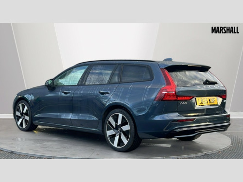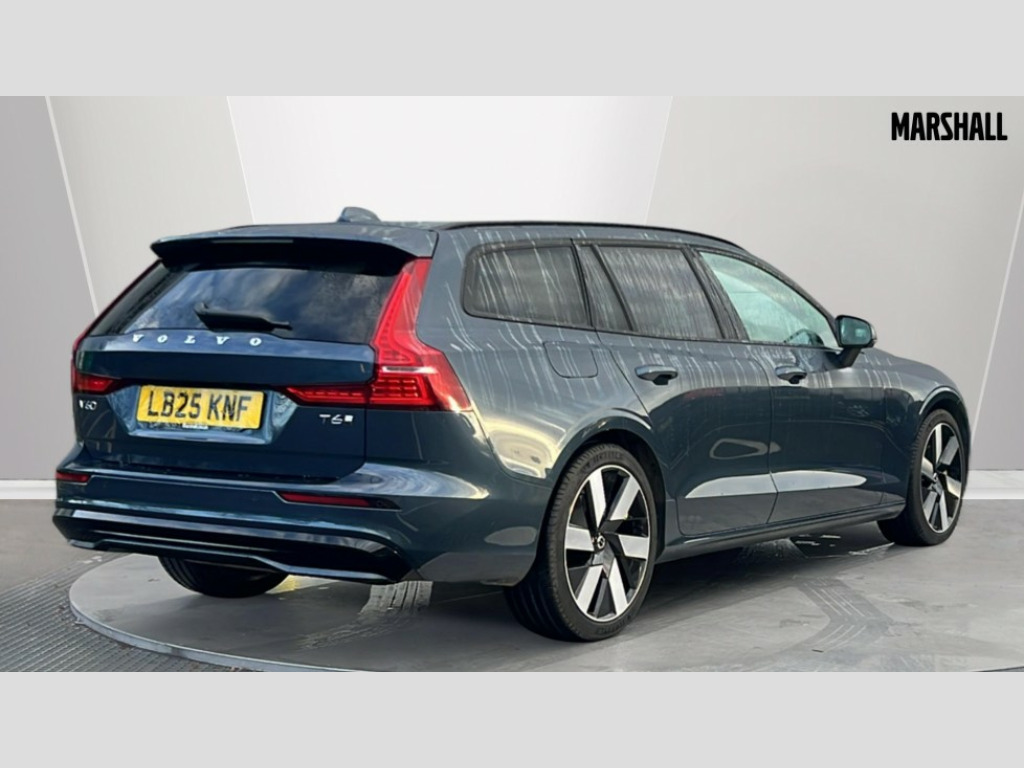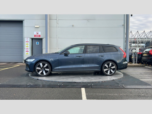 Volvo V60 2.0 T6 [350] PHEV Plus Dark 5dr AWD Auto 12.3" Progressive Driver Display, 9" centre console touch screen, Adaptive cruise control, Adjustable steering wheel force, Android Auto, Apple CarPlay, Bluetooth handsfree system, Drive mode settings, Driver alert control with lane keeping aid, Driver awareness - Blind spot information system with steer assist, cross traffic alert with autobrake and rear collision warning and mitigation, E-call, Front and rear park assist, Google automotive services - Enabled entertainment apps, navigation with google maps, voice recognition with google assistant, Information centre, Intelligent speed assistance, Oncoming Lane Mitigation, Power operated tailgate with handsfree opening and closing, Service interval indicator, Speed sensitive steering, Trip computer, Volvo cars services with app, Volvo on call app, 6m 3 phase 16amp Type 2 / mode 3 charge cable, Automatic transmission with start/stop and manual change functions, Dynamic chassis, Electric rear axle drive, Lithium-ion battery, On board charger - 6.4 kW 2 phase/3.7kW single phase, Recharging port located in nearside front wing, DAB Digital radio, Fresh air subwoofer, High performance sound, 2 x front and rear Type C USB,10 speakers/220W output, Low speed exterior sound speaker, Steering wheel remote infotainment controls, Adaptive brake lights with high level LED brake lights, Auto dimming interior + exterior mirrors, Automatic headlight levelling system, Automatic LED Headlights + Active high beam incorporating daytime running lights, Front and rear power windows, Heated front windscreen, High gloss black autofolding heated power door mirrors, High gloss black front and rear bumper deco, High gloss black mesh front grille with high gloss black surround, High gloss black window surround, Home safe and approach lighting, Integrated roof rails in high gloss black, Puddle lights, Rain sensor with automatic windscreen wiper activation, Rear side wing doors, Rear wiper, Roof antenna, Roof spoiler, Variable front intermittent wipers, Visible VIN plate, 12V socket in front tunnel console and luggage compartment, 2 zone electronic climate control with Clean zone air quality system + pollen filter, 3 Spoke tailored steering wheel with chrome trim, 60/40 versatile split folding 3 bench rear seats in 2nd row, A-pillar parking ticket holder, Air purifier PM2.5, B Pillar ventilation, Bright metal luggage scuff plate, Centre console storage, Charcoal carpets and floor mats, Extended front seat cushions, Front and rear courtesy and front reading lights, Front cupholders, Front footwell illumination, Front head restraints, Front/rear door pockets and front cupholder illumination, Glovebox compartment with illumination, Heated front seats, Heated rear seats outer positions, Heated steering wheel, Height/reach adjustable steering column, Illuminated vanity mirrors + ticket holder, ISOFIX attachment on outer rear seats, Load cover, Load protection net, Luggage compartment divider with grocery bag holder, Luggage compartment illumination, Luggage compartment load hooks, Multi directional lumbar support, Power driver seat with memory + exterior mirrors memory, Power folding rear headrests, Power height adjustable passenger seat, Rear armrest with cupholder, Rear footwell and front and rear side step illumination, Rear reading lights, Recharge aluminium tread plates, Single front passenger seat, Tailgate illumination, Underfloor cargo storage, 5 x 3 point seatbelts, City safety with steering support with Pedestrian + cyclist + front collision warning with full auto brake and rear auto brake, Driver and passenger airbags, First aid kit, Front seats SIPS airbags, Hill start assist, IC (Inflatable Curtains) - Full Length, Passenger airbag cut-off switch, Power child locks on rear doors, Power parking brake with auto hold function, Road sign information display, Run off Road Mitigation, Run off Road Protection, Seatbelt reminder and pretensioners for all seats, SIPS (Side Impact Protection System), Slippery road and hazard light alert, Stability and Traction Control with Spin control, Engine Drag Control and Corner Traction Control, Tyre pressure monitoring system, Vehicle deceleration control with Anti-lock Brake System, Electronic Brake Distribution and Emergency Brake Assist, Warning triangle, WHIPS whiplash protection system - front, 2X Key integrated remote control central locking with deadlocking system and auto open/close power windows, Anti-theft alarm including immobiliser/volume sensor + level sensor, Care key with user defined top speed, Keyless drive includes keyless entry and keyless start, Locking wheel nuts, Private locking luggage compartment, Tyre sealant kit and compressor