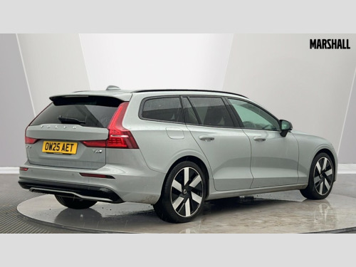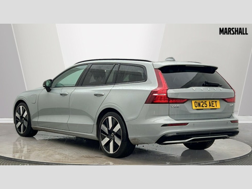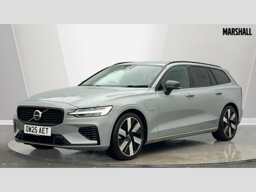 Volvo V60 2.0 T6 [350] PHEV Plus Dark 5dr AWD Auto 12.3" Progressive Driver Display, 9" centre console touch screen, Adaptive cruise control, Adjustable steering wheel force, Android Auto, Apple CarPlay, Bluetooth handsfree system, Drive mode settings, Driver alert control with lane keeping aid, Driver awareness - Blind spot information system with steer assist, cross traffic alert with autobrake and rear collision warning and mitigation, E-call, Front and rear park assist, Google automotive services - Enabled entertainment apps, navigation with google maps, voice recognition with google assistant, Information centre, Intelligent speed assistance, Oncoming Lane Mitigation, Power operated tailgate with handsfree opening and closing, Service interval indicator, Speed sensitive steering, Trip computer, Volvo cars services with app, Volvo on call app, 6m 3 phase 16amp Type 2 / mode 3 charge cable, Automatic transmission with start/stop and manual change functions, Dynamic chassis, Electric rear axle drive, Lithium-ion battery, On board charger - 6.4 kW 2 phase/3.7kW single phase, Recharging port located in nearside front wing, DAB Digital radio, Fresh air subwoofer, High performance sound, 2 x front and rear Type C USB,10 speakers/220W output, Low speed exterior sound speaker, Steering wheel remote infotainment controls, Adaptive brake lights with high level LED brake lights, Auto dimming interior + exterior mirrors, Automatic headlight levelling system, Automatic LED Headlights + Active high beam incorporating daytime running lights, Front and rear power windows, Heated front windscreen, High gloss black autofolding heated power door mirrors, High gloss black front and rear bumper deco, High gloss black mesh front grille with high gloss black surround, High gloss black window surround, Home safe and approach lighting, Integrated roof rails in high gloss black, Puddle lights, Rain sensor with automatic windscreen wiper activation, Rear side wing doors, Rear wiper, Roof antenna, Roof spoiler, Variable front intermittent wipers, Visible VIN plate, 12V socket in front tunnel console and luggage compartment, 2 zone electronic climate control with Clean zone air quality system + pollen filter, 3 Spoke tailored steering wheel with chrome trim, 60/40 versatile split folding 3 bench rear seats in 2nd row, A-pillar parking ticket holder, Air purifier PM2.5, B Pillar ventilation, Bright metal luggage scuff plate, Centre console storage, Charcoal carpets and floor mats, Extended front seat cushions, Front and rear courtesy and front reading lights, Front cupholders, Front footwell illumination, Front head restraints, Front/rear door pockets and front cupholder illumination, Glovebox compartment with illumination, Heated front seats, Heated rear seats outer positions, Heated steering wheel, Height/reach adjustable steering column, Illuminated vanity mirrors + ticket holder, ISOFIX attachment on outer rear seats, Load cover, Load protection net, Luggage compartment divider with grocery bag holder, Luggage compartment illumination, Luggage compartment load hooks, Multi directional lumbar support, Power driver seat with memory + exterior mirrors memory, Power folding rear headrests, Power height adjustable passenger seat, Rear armrest with cupholder, Rear footwell and front and rear side step illumination, Rear reading lights, Recharge aluminium tread plates, Single front passenger seat, Tailgate illumination, Underfloor cargo storage, 5 x 3 point seatbelts, City safety with steering support with Pedestrian + cyclist + front collision warning with full auto brake and rear auto brake, Driver and passenger airbags, First aid kit, Front seats SIPS airbags, Hill start assist, IC (Inflatable Curtains) - Full Length, Passenger airbag cut-off switch, Power child locks on rear doors, Power parking brake with auto hold function, Road sign information display, Run off Road Mitigation, Run off Road Protection, Seatbelt reminder and pretensioners for all seats, SIPS (Side Impact Protection System), Slippery road and hazard light alert, Stability and Traction Control with Spin control, Engine Drag Control and Corner Traction Control, Tyre pressure monitoring system, Vehicle deceleration control with Anti-lock Brake System, Electronic Brake Distribution and Emergency Brake Assist, Warning triangle, WHIPS whiplash protection system - front, 2X Key integrated remote control central locking with deadlocking system and auto open/close power windows, Anti-theft alarm including immobiliser/volume sensor + level sensor, Care key with user defined top speed, Keyless drive includes keyless entry and keyless start, Locking wheel nuts, Private locking luggage compartment, Tyre sealant kit and compressor