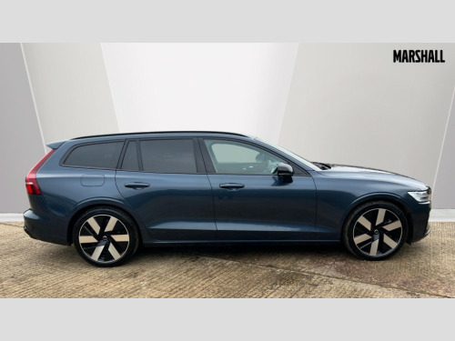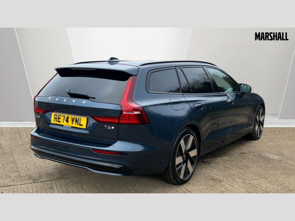 Volvo V60 2.0 T6 [350] PHEV Plus Dark 5dr AWD Auto 12.3" Progressive Driver Display, 9" centre console touch screen, Adjustable steering wheel force, Android Auto, Apple CarPlay, Bluetooth handsfree system, Cruise control, Drive mode settings, Driver alert control with lane keeping aid, Driver awareness - Blind spot information system with steer assist, cross traffic alert with autobrake and rear collision warning and mitigation, E-call, Front and rear park assist, Google automotive services - Enabled entertainment apps, navigation with google maps, voice recognition with google assistant, Information centre, Intelligent speed assistance, Oncoming Lane Mitigation, Power operated tailgate with handsfree opening and closing, Service interval indicator, Speed sensitive steering, Trip computer, Volvo cars services with app, Volvo on call app, 6m 3 phase 16amp Type 2 / mode 3 charge cable, 7m 10amp charge cable with 3 pin plug, Automatic transmission with start/stop and manual change functions, Dynamic chassis, Electric rear axle drive, Lithium-ion battery, On board charger - 6.4 kW 2 phase/3.7kW single phase, Recharging port located in nearside front wing, DAB Digital radio, Fresh air subwoofer, High performance sound, 2 x front and rear Type C USB,10 speakers/220W output, Low speed exterior sound speaker, Steering wheel remote infotainment controls, Adaptive brake lights with high level LED brake lights, Auto dimming interior + exterior mirrors, Automatic headlight levelling system, Automatic LED Headlights + Active high beam incorporating daytime running lights, Front and rear power windows, Heated front windscreen, High gloss black autofolding heated power door mirrors, High gloss black front and rear bumper deco, High gloss black mesh front grille with high gloss black surround, High gloss black window surround, Home safe and approach lighting, Integrated roof rails in high gloss black, Puddle lights, Rain sensor with automatic windscreen wiper activation, Rear side wing doors, Rear wiper, Roof antenna, Roof spoiler, Variable front intermittent wipers, Visible VIN plate, 12V socket in front tunnel console and luggage compartment, 2 zone electronic climate control with Clean zone air quality system + pollen filter, 3 Spoke tailored steering wheel with chrome trim, 60/40 versatile split folding 3 bench rear seats in 2nd row, A-pillar parking ticket holder, Air purifier PM2.5, B Pillar ventilation, Bright metal luggage scuff plate, Centre console storage, Charcoal carpets and floor mats, Extended front seat cushions, Front and rear courtesy and front reading lights, Front cupholders, Front footwell illumination, Front head restraints, Front/rear door pockets and front cupholder illumination, Glovebox compartment with illumination, Heated front seats, Heated rear seats outer positions, Heated steering wheel, Height/reach adjustable steering column, Illuminated vanity mirrors + ticket holder, ISOFIX attachment on outer rear seats, Load cover, Load protection net, Luggage compartment divider with grocery bag holder, Luggage compartment illumination, Luggage compartment load hooks, Multi directional lumbar support, Power driver seat with memory + exterior mirrors memory, Power folding rear headrests, Power height adjustable passenger seat, Rear armrest with cupholder, Rear footwell and front and rear side step illumination, Rear reading lights, Recharge aluminium tread plates, Single front passenger seat, Tailgate illumination, Underfloor cargo storage, 5 x 3 point seatbelts, City safety with steering support with Pedestrian + cyclist + front collision warning with full auto brake and rear auto brake, Driver and passenger airbags, First aid kit, Front seats SIPS airbags, Hill start assist, IC (Inflatable Curtains) - Full Length, Passenger airbag cut-off switch, Power child locks on rear doors, Power parking brake with auto hold function, Road sign information display, Run off Road Mitigation, Run off Road Protection, Seatbelt reminder and pretensioners for all seats, SIPS (Side Impact Protection System), Slippery road and hazard light alert, Stability and Traction Control with Spin control, Engine Drag Control and Corner Traction Control, Tyre pressure monitoring system, Vehicle deceleration control with Anti-lock Brake System, Electronic Brake Distribution and Emergency Brake Assist, Warning triangle, WHIPS whiplash protection system - front, 2X Key integrated remote control central locking with deadlocking system and auto open/close power windows, Anti-theft alarm including immobiliser/volume sensor + level sensor, Care key with user defined top speed, Keyless drive includes keyless entry and keyless start, Locking wheel nuts, Private locking luggage compartment, Tyre sealant kit and compressor