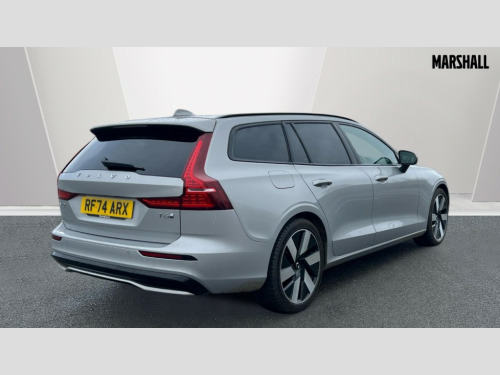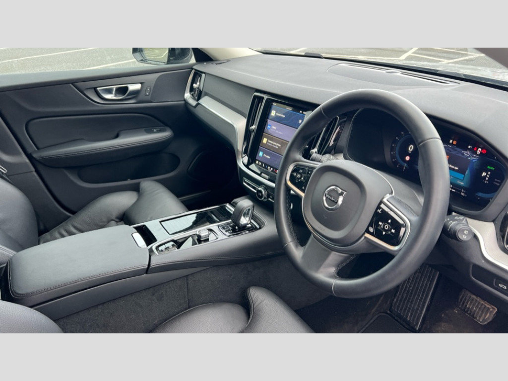 Volvo V60 2.0 T6 [350] PHEV Plus Dark 5dr AWD Auto 12.3" Progressive Driver Display, 9" centre console touch screen, Adjustable steering wheel force, Android Auto, Apple CarPlay, Bluetooth handsfree system, Cruise control, Drive mode settings, Driver alert control with lane keeping aid, Driver awareness - Blind spot information system with steer assist, cross traffic alert with autobrake and rear collision warning and mitigation, E-call, Front and rear park assist, Google automotive services - Enabled entertainment apps, navigation with google maps, voice recognition with google assistant, Information centre, Intelligent speed assistance, Oncoming Lane Mitigation, Power operated tailgate with handsfree opening and closing, Service interval indicator, Speed sensitive steering, Trip computer, Volvo cars services with app, Volvo on call app, 6m 3 phase 16amp Type 2 / mode 3 charge cable, 7m 10amp charge cable with 3 pin plug, Automatic transmission with start/stop and manual change functions, Dynamic chassis, Electric rear axle drive, Lithium-ion battery, On board charger - 6.4 kW 2 phase/3.7kW single phase, Recharging port located in nearside front wing, DAB Digital radio, Fresh air subwoofer, High performance sound, 2 x front and rear Type C USB,10 speakers/220W output, Low speed exterior sound speaker, Steering wheel remote infotainment controls, Adaptive brake lights with high level LED brake lights, Auto dimming interior + exterior mirrors, Automatic headlight levelling system, Automatic LED Headlights + Active high beam incorporating daytime running lights, Front and rear power windows, Heated front windscreen, High gloss black autofolding heated power door mirrors, High gloss black front and rear bumper deco, High gloss black mesh front grille with high gloss black surround, High gloss black window surround, Home safe and approach lighting, Integrated roof rails in high gloss black, Puddle lights, Rain sensor with automatic windscreen wiper activation, Rear side wing doors, Rear wiper, Roof antenna, Roof spoiler, Variable front intermittent wipers, Visible VIN plate, 12V socket in front tunnel console and luggage compartment, 2 zone electronic climate control with Clean zone air quality system + pollen filter, 3 Spoke tailored steering wheel with chrome trim, 60/40 versatile split folding 3 bench rear seats in 2nd row, A-pillar parking ticket holder, Air purifier PM2.5, B Pillar ventilation, Bright metal luggage scuff plate, Centre console storage, Charcoal carpets and floor mats, Extended front seat cushions, Front and rear courtesy and front reading lights, Front cupholders, Front footwell illumination, Front head restraints, Front/rear door pockets and front cupholder illumination, Glovebox compartment with illumination, Heated front seats, Heated rear seats outer positions, Heated steering wheel, Height/reach adjustable steering column, Illuminated vanity mirrors + ticket holder, ISOFIX attachment on outer rear seats, Load cover, Load protection net, Luggage compartment divider with grocery bag holder, Luggage compartment illumination, Luggage compartment load hooks, Multi directional lumbar support, Power driver seat with memory + exterior mirrors memory, Power folding rear headrests, Power height adjustable passenger seat, Rear armrest with cupholder, Rear footwell and front and rear side step illumination, Rear reading lights, Recharge aluminium tread plates, Single front passenger seat, Tailgate illumination, Underfloor cargo storage, 5 x 3 point seatbelts, City safety with steering support with Pedestrian + cyclist + front collision warning with full auto brake and rear auto brake, Driver and passenger airbags, First aid kit, Front seats SIPS airbags, Hill start assist, IC (Inflatable Curtains) - Full Length, Passenger airbag cut-off switch, Power child locks on rear doors, Power parking brake with auto hold function, Road sign information display, Run off Road Mitigation, Run off Road Protection, Seatbelt reminder and pretensioners for all seats, SIPS (Side Impact Protection System), Slippery road and hazard light alert, Stability and Traction Control with Spin control, Engine Drag Control and Corner Traction Control, Tyre pressure monitoring system, Vehicle deceleration control with Anti-lock Brake System, Electronic Brake Distribution and Emergency Brake Assist, Warning triangle, WHIPS whiplash protection system - front, 2X Key integrated remote control central locking with deadlocking system and auto open/close power windows, Anti-theft alarm including immobiliser/volume sensor + level sensor, Care key with user defined top speed, Keyless drive includes keyless entry and keyless start, Locking wheel nuts, Private locking luggage compartment, Tyre sealant kit and compressor