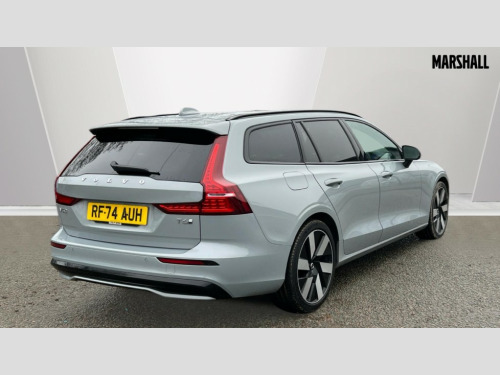 Volvo V60 2.0 T6 [350] PHEV Plus Dark 5dr AWD Auto 12.3" Progressive Driver Display, 9" centre console touch screen, Adjustable steering wheel force, Android Auto, Apple CarPlay, Bluetooth handsfree system, Cruise control, Drive mode settings, Driver alert control with lane keeping aid, Driver awareness - Blind spot information system with steer assist, cross traffic alert with autobrake and rear collision warning and mitigation, E-call, Front and rear park assist, Google automotive services - Enabled entertainment apps, navigation with google maps, voice recognition with google assistant, Information centre, Intelligent speed assistance, Oncoming Lane Mitigation, Power operated tailgate with handsfree opening and closing, Service interval indicator, Speed sensitive steering, Trip computer, Volvo cars services with app, Volvo on call app, 6m 3 phase 16amp Type 2 / mode 3 charge cable, 7m 10amp charge cable with 3 pin plug, Automatic transmission with start/stop and manual change functions, Dynamic chassis, Electric rear axle drive, Lithium-ion battery, On board charger - 6.4 kW 2 phase/3.7kW single phase, Recharging port located in nearside front wing, DAB Digital radio, Fresh air subwoofer, High performance sound, 2 x front and rear Type C USB,10 speakers/220W output, Low speed exterior sound speaker, Steering wheel remote infotainment controls, Adaptive brake lights with high level LED brake lights, Auto dimming interior + exterior mirrors, Automatic headlight levelling system, Automatic LED Headlights + Active high beam incorporating daytime running lights, Front and rear power windows, Heated front windscreen, High gloss black autofolding heated power door mirrors, High gloss black front and rear bumper deco, High gloss black mesh front grille with high gloss black surround, High gloss black window surround, Home safe and approach lighting, Integrated roof rails in high gloss black, Puddle lights, Rain sensor with automatic windscreen wiper activation, Rear side wing doors, Rear wiper, Roof antenna, Roof spoiler, Variable front intermittent wipers, Visible VIN plate, 12V socket in front tunnel console and luggage compartment, 2 zone electronic climate control with Clean zone air quality system + pollen filter, 3 Spoke tailored steering wheel with chrome trim, 60/40 versatile split folding 3 bench rear seats in 2nd row, A-pillar parking ticket holder, Air purifier PM2.5, B Pillar ventilation, Bright metal luggage scuff plate, Centre console storage, Charcoal carpets and floor mats, Extended front seat cushions, Front and rear courtesy and front reading lights, Front cupholders, Front footwell illumination, Front head restraints, Front/rear door pockets and front cupholder illumination, Glovebox compartment with illumination, Heated front seats, Heated rear seats outer positions, Heated steering wheel, Height/reach adjustable steering column, Illuminated vanity mirrors + ticket holder, ISOFIX attachment on outer rear seats, Load cover, Load protection net, Luggage compartment divider with grocery bag holder, Luggage compartment illumination, Luggage compartment load hooks, Multi directional lumbar support, Power driver seat with memory + exterior mirrors memory, Power folding rear headrests, Power height adjustable passenger seat, Rear armrest with cupholder, Rear footwell and front and rear side step illumination, Rear reading lights, Recharge aluminium tread plates, Single front passenger seat, Tailgate illumination, Underfloor cargo storage, 5 x 3 point seatbelts, City safety with steering support with Pedestrian + cyclist + front collision warning with full auto brake and rear auto brake, Driver and passenger airbags, First aid kit, Front seats SIPS airbags, Hill start assist, IC (Inflatable Curtains) - Full Length, Passenger airbag cut-off switch, Power child locks on rear doors, Power parking brake with auto hold function, Road sign information display, Run off Road Mitigation, Run off Road Protection, Seatbelt reminder and pretensioners for all seats, SIPS (Side Impact Protection System), Slippery road and hazard light alert, Stability and Traction Control with Spin control, Engine Drag Control and Corner Traction Control, Tyre pressure monitoring system, Vehicle deceleration control with Anti-lock Brake System, Electronic Brake Distribution and Emergency Brake Assist, Warning triangle, WHIPS whiplash protection system - front, 2X Key integrated remote control central locking with deadlocking system and auto open/close power windows, Anti-theft alarm including immobiliser/volume sensor + level sensor, Care key with user defined top speed, Keyless drive includes keyless entry and keyless start, Locking wheel nuts, Private locking luggage compartment, Tyre sealant kit and compressor