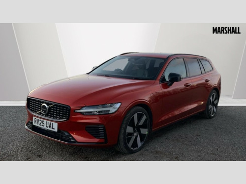 Volvo V60 2.0 T8 [455] PHEV Ultra Dark 5dr AWD Auto 12.3" Progressive Driver Display, 360 degree surround view parking camera with side proximity sensors, 9" centre console touch screen, Adjustable steering wheel force, Android Auto, Apple CarPlay, Bluetooth handsfree system, Drive mode settings, Driver alert control with lane keeping aid, Driver assistance (pilot assist and adaptive cruise control), Driver awareness - Blind spot information system with steer assist, cross traffic alert with autobrake and rear collision warning and mitigation, E-call, Front and rear park assist, Google automotive services - Enabled entertainment apps, navigation with google maps, voice recognition with google assistant, Information centre, Intelligent speed assistance, Oncoming Lane Mitigation, Pilot assist, Power operated tailgate with handsfree opening and closing, Service interval indicator, Speed sensitive steering, Trip computer, Volvo cars services with app, Volvo on call app, 6m 3 phase 16amp Type 2 / mode 3 charge cable, Automatic transmission with start/stop and manual change functions, Dynamic chassis, Electric rear axle drive, Lithium-ion battery, On board charger - 6.4 kW 2 phase/3.7kW single phase, Recharging port located in nearside front wing, DAB Digital radio, Low speed exterior sound speaker, Premium sound by Harman Kardon, Dolby Pro Logic II surround sound, Dirac Unison, 13 speakers/600W and fresh air subwoofer, Steering wheel remote infotainment controls, Active bending headlights with adaptive shadow technology, Adaptive brake lights with high level LED brake lights, Auto dimming interior + exterior mirrors, Automatic headlight levelling system, Automatic LED Headlights + Active high beam incorporating daytime running lights, Dark tinted windows - rear side windows and rear screen, Front and rear power windows, Headlight cleaning system, Heated front windscreen, High gloss black autofolding heated power door mirrors, High gloss black front and rear bumper deco, High gloss black mesh front grille with high gloss black surround, High gloss black window surround, Home safe and approach lighting, Integrated roof rails in high gloss black, Power glass tilt and slide panoramic sunroof with sun curtain, Puddle lights, Rain sensor with automatic windscreen wiper activation, Rear side wing doors, Rear wiper, Roof antenna, Roof spoiler, Variable front intermittent wipers, Visible VIN plate, 12V socket in front tunnel console and luggage compartment, 2 zone electronic climate control with Clean zone air quality system + pollen filter, 3 Spoke tailored steering wheel with chrome trim, 60/40 versatile split folding 3 bench rear seats in 2nd row, A-pillar parking ticket holder, Air purifier PM2.5, B Pillar ventilation, Bright metal luggage scuff plate, Centre console storage, Charcoal carpets and floor mats, Extended front seat cushions, Front and rear courtesy and front reading lights, Front cupholders, Front footwell illumination, Front head restraints, Front/rear door pockets and front cupholder illumination, Glovebox compartment with illumination, Heated front seats, Heated rear seats outer positions, Heated steering wheel, Height/reach adjustable steering column, Illuminated vanity mirrors + ticket holder, ISOFIX attachment on outer rear seats, Load cover, Load protection net, Luggage compartment divider with grocery bag holder, Luggage compartment illumination, Luggage compartment load hooks, Multi directional lumbar support, Power driver seat with memory + exterior mirrors memory, Power folding rear headrests, Power height adjustable passenger seat, Power passenger seat with memory, Rear armrest with cupholder, Rear footwell and front and rear side step illumination, Rear reading lights, Recharge aluminium tread plates, Single front passenger seat, Tailgate illumination, Underfloor cargo storage, 5 x 3 point seatbelts, City safety with steering support with Pedestrian + cyclist + front collision warning with full auto brake and rear auto brake, Driver and passenger airbags, First aid kit, Front seats SIPS airbags, Hill start assist, IC (Inflatable Curtains) - Full Length, Passenger airbag cut-off switch, Power child locks on rear doors, Power parking brake with auto hold function, Road sign information display, Run off Road Mitigation, Run off Road Protection, Seatbelt reminder and pretensioners for all seats, SIPS (Side Impact Protection System), Slippery road and hazard light alert, Stability and Traction Control with Spin control, Engine Drag Control and Corner Traction Control, Tyre pressure monitoring system, Vehicle deceleration control with Anti-lock Brake System, Electronic Brake Distribution and Emergency Brake Assist, Warning triangle, WHIPS whiplash protection system - front, 2X Key integrated remote control central locking with deadlocking system and auto open/close power windows, Anti-theft alarm including immobiliser/volume sensor + level sensor, Care key with user defined top speed, Keyless drive includes keyless entry and keyless start, Locking wheel nuts, Private locking luggage compartment, Tyre sealant kit and compressor