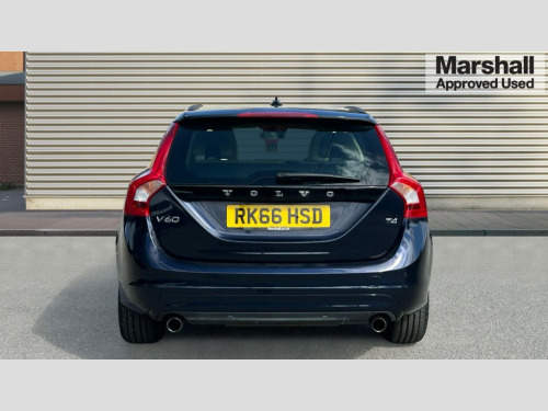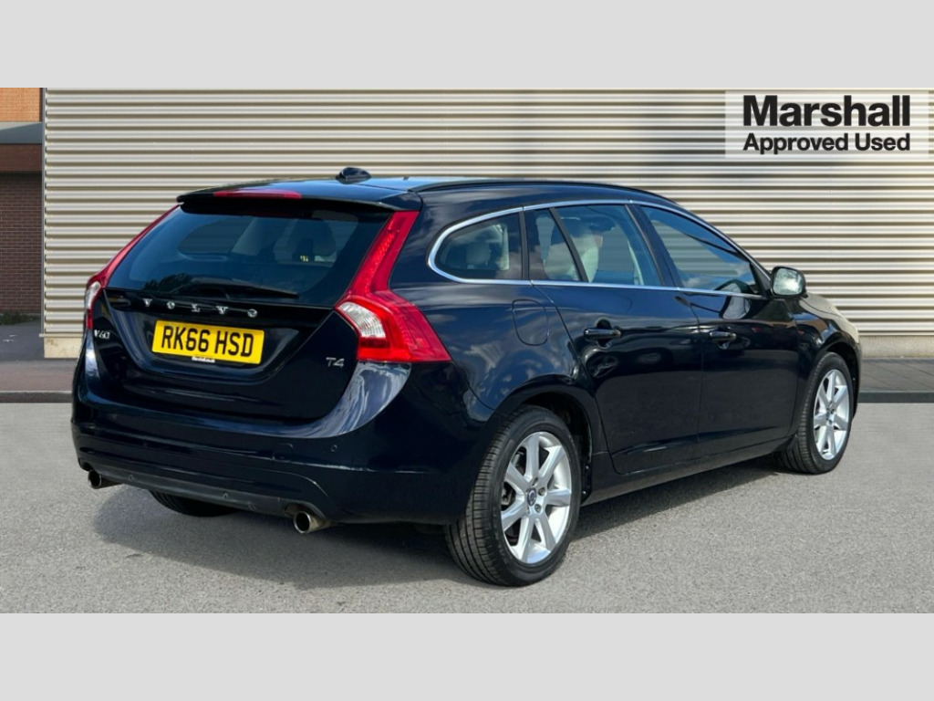Volvo V60 T4 [190] SE Nav 5dr [Leather] 7" colour screen, Bluetooth system, Information centre, Intelligent driver information system (IDIS), Rear park assist, Sensus navigation system, Service interval indicator, Speed limiter, Speed sensitive steering, Trip computer, Auxiliary input socket, DAB Digital radio, Remote audio controls on steering wheel, Adaptive brake lights, Automatic folding door mirrors with ground lights, Black roof rails, Body colour bumpers, Body colour door mirrors, Chrome side window trim, Electric front+rear windows, Electric heated + adjustable door mirrors, Headlamp levelling, Home safe and approach lighting, LED daytime running lights, Rain sensor windscreen wipers, Rear spoiler, Rear wiper, Side marker illumination, Tinted windscreen, 12V socket in front + rear tunnel console, B Pillar ventilation, Door sill tread plates, Driver/front passenger seat height/lumbar adjust, ECC electronic climate control with AQS, Floor mats, Footwell lights, Forward folding front passenger seat, Front head restraints, Front/rear reading lights, Height/reach adjustable steering column, Illuminated driver/passenger vanity mirrors, Isofix attachments on outer rear seats, Leather gear knob, Leather steering wheel with chrome inserts, Leather upholstery, Load cover, Load protection net, Lockable load floor, Rear head restraints, Ticket holder, Versatile split folding rear seat - 40/20/40, WHIPS - Whiplash Protection System, 5 x 3 point seatbelts, ABS+EBA, City safety braking system, DSTC-Dynamic Stability and Traction Control, Dual stage driver/passenger airbags, Electronic parking brake, Hill start assist, Inflatable curtain, Passenger airbag deactivate switch, Rear seatbelt warning indicator, Seatbelt pretensioners, SIPS airbags, Tyre pressure monitoring system, Warning triangle, Anti theft alarm, Deadlocking system, Immobiliser, Inclination sensor, Key integrated remote control central locking, Locking wheel nuts, Remote locking fuel filler flap