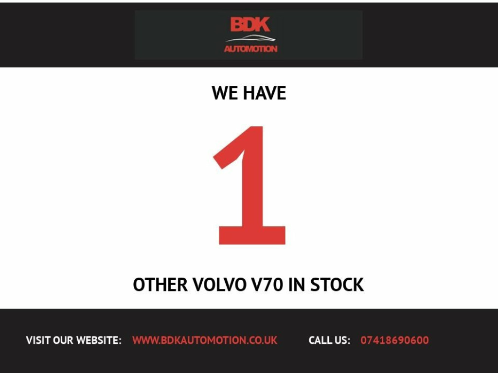 Volvo V70 2.0 D3 SE Geartronic – RV11 UNJ 150,000 Miles | Recent Timing Kit | Cosmetic Bodywork Damage | Drives Superb | Diesel Estate Bargain Discover Swedish comfort, practicality, and reliability at a fantastic price. This Volvo V70 2.0 D3 SE (LD11 JWK) has covered 150,000 miles and is offered at a bargain price due to cosmetic paint/bodywork blemishes. Drives really well, with recent timing kit completed at 103,000 miles—meaning peace of mind for years to come. Key Vehicle Specs Engine: 2.0-litre D3 Diesel (163PS/161bhp) Efficient, robust, and ideal for motorway or daily use. Transmission: Manual Smooth and effortless driving—Volvo's trusted gearbox. Real-world Economy: Up to 42 mpg (combined) Low running costs for a roomy diesel estate. Boot: 575-litre with seats up, huge space with seats down Perfect for families, professionals, or adventure seekers. SE Features: Full leather interior Heated front seats Dual-zone climate control Cruise control Rear parking sensors Electric windows/mirrors Premium sound & media Multiple airbags, ABS, DSTC stability control, child ISOFIX Added Value Recent timing belt & kit @ 103k (recommended interval) Drives superb—smooth engine, gearbox and suspension Good MOT & service history—records show regular care Bargain price—reflects paint/bodywork marks only, not mechanical issues Why Buy This Volvo V70? Legendary Volvo comfort, safety, and reliability D3 engine built f Black Sapphire, Volvo On Call, Premium Sound Audio System, Power Child Locks - Rear Doors, Family Pack, Winter Pack, Modern Wood Trim, 18 in Alloy Wheels - Balius Silver Brigh, Dark Tinted Windows - Rear Side Doors an, 12v Socket - Front and Rear Tunnel Conso, 17in Alloy Wheels - Balder Silver Stone, 3D Cargo Load System, 5 Three Point Seat Belts, ABS - Anti-Lock Brake System, Adaptive Brake Lights including High Lev, Airbags - Dual Chamber SIPS, Anti-Theft Alarm including Immobiliser -, Auto Dimming Rear View Mirror, Autofolding Power Door Mirrors with Grou, B-Pillar Ventilation, Bluetooth Handsfree System, Chrome Rotary Knobs, Chrome Trim on Air Vents and Side Defros, Chrome Window Trim, C