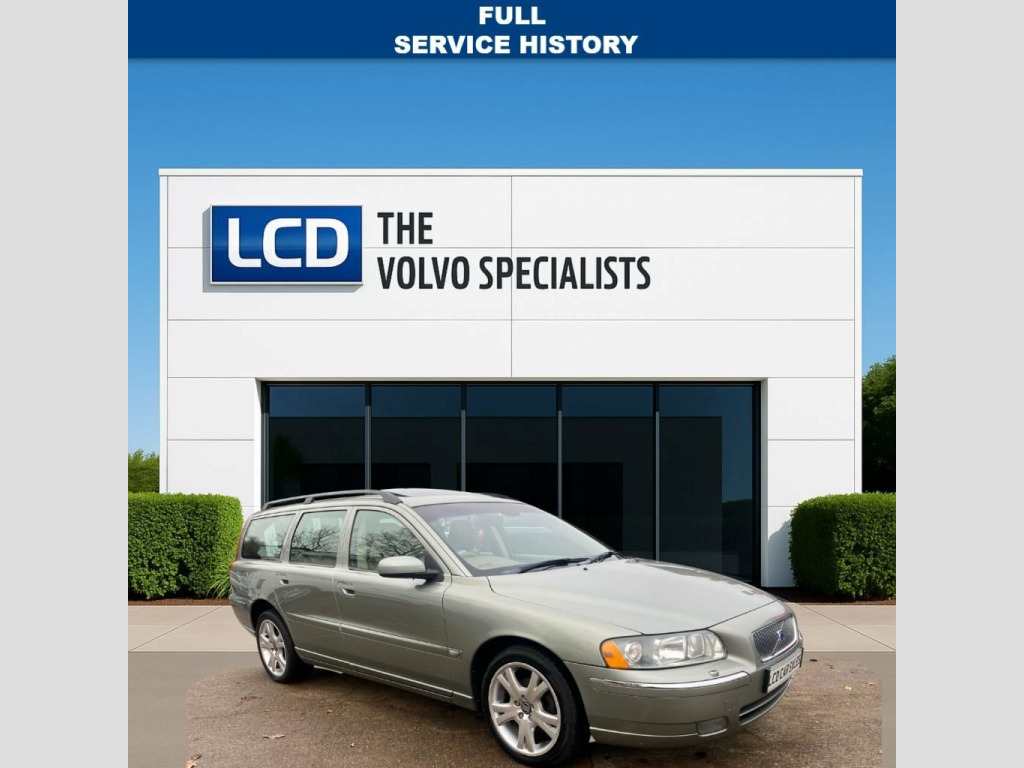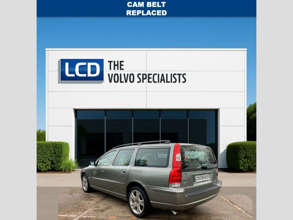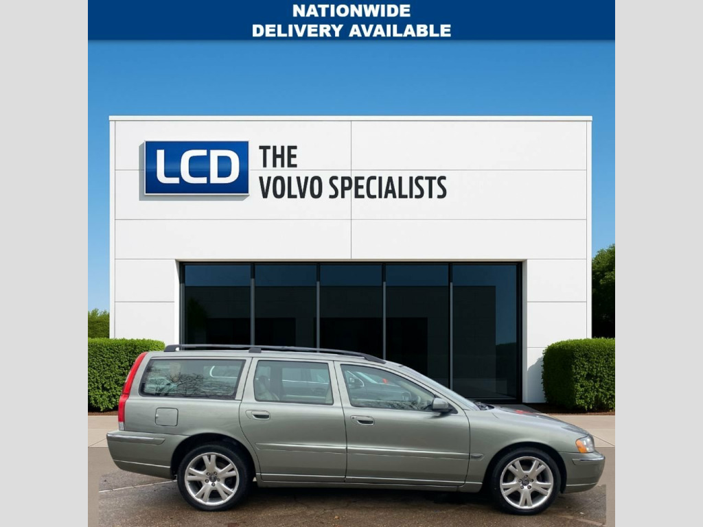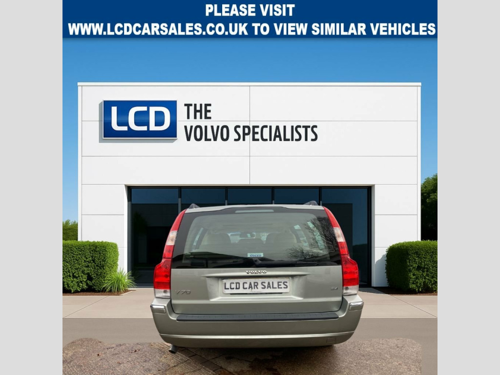'ULEZ COMPLIANT' VOLVO V70 2.4 PETROL SE AUTOMATIC, WILLOW GREEN METALLIC PAINTWORK, BEIGE LEATHER INTERIOR, ELECTRIC SUNROOF, ELECTRIC MEMORY DRIVER SEAT, HEATED SEATS, POWER FOLDING MIRRORS, CD PLAYER , ROOF RAILS, AIR CONDITIONING, ALLOY WHEELS, CARPET MATS, 2 KEYS **FULL SERVICE HISTORY - 16 DEALER STAMPS & A NEW CAM BELT AT 59,272 MILES**SERVICED AT - 13,295 MILES, 20,876 MILES, 27,573 MILES, 32,573 MILES, 39,369 MILES, 44,988 MILES, 49,058 MILES, 54,093 MILES, 58,658 MILES, 63,003 MILES, 65,802 MILES, 69,885 MILES, 73,474 MILES, 74,600 MILES, 76,239 MILES, 78,320 MILES** **12 MONTH NATIONWIDE WARRANTY** Elec Driver/Passenger Seat with Mem/Mirr, Metallic Paint, Electric Glass Tilt/Slide Sunroof, Headlamp Cleaning System, Leather Faced Upholstery, Heated Front Seats, 4 x 50w Amplifier, Adjustable Steering Column/Wheel, Air Bag Driver, Air Bag Side, Alloy Wheels - 17in Orestes Design, Anti-Lock Brakes, Autodimming Rear View Mirror, Body Coloured Bumpers, Central Door Locking, Centre Rear Seat Belt, Climate Control, Computer (Driver Information System), Cruise Control, Deadlocks, Elec Drivers Seat (with Mem)/Mirror Mem, Electric Folding Door Mirrors with Light, Electric Windows (Front/Rear), Front Fog Lights, Grocery Bag Holder/Luggage Area, Head Air Bags, Head Restraints, High Performance Soun